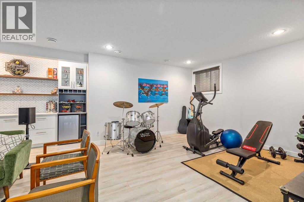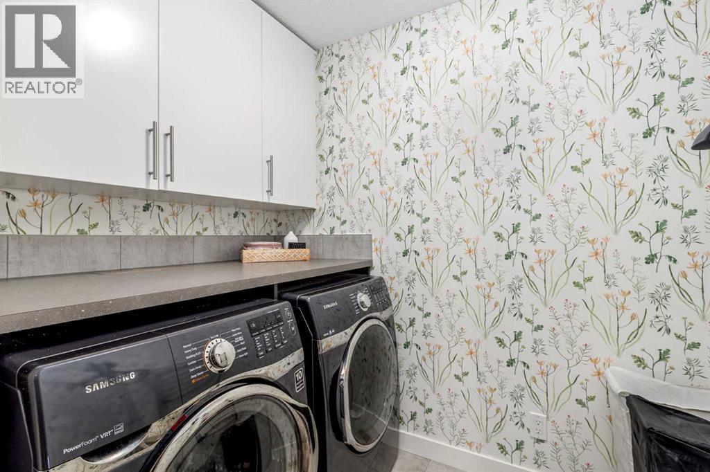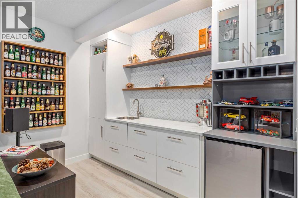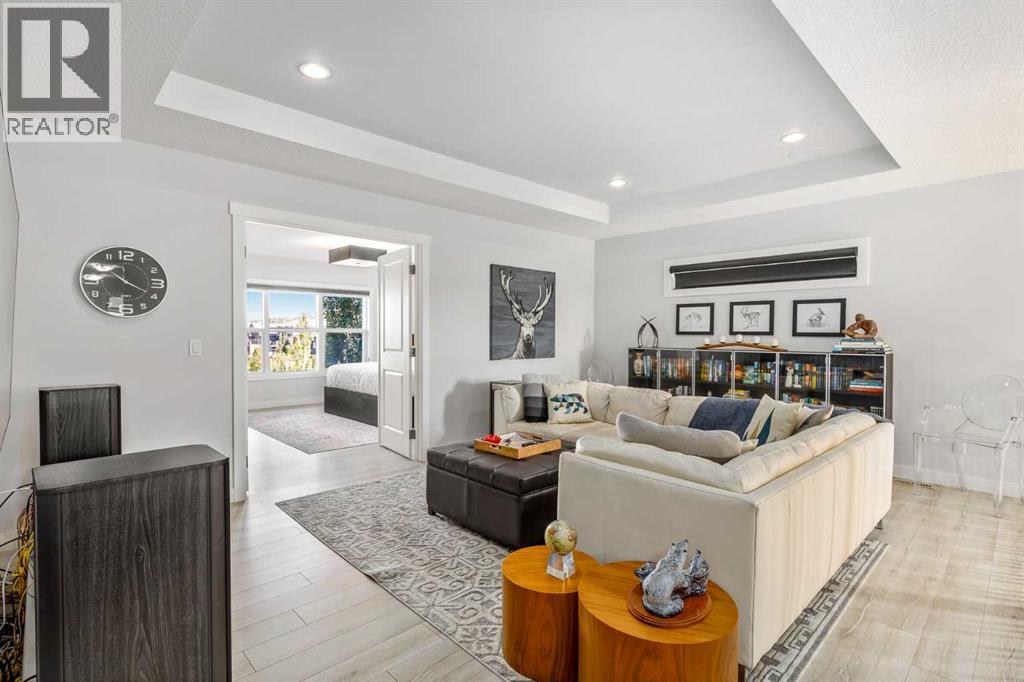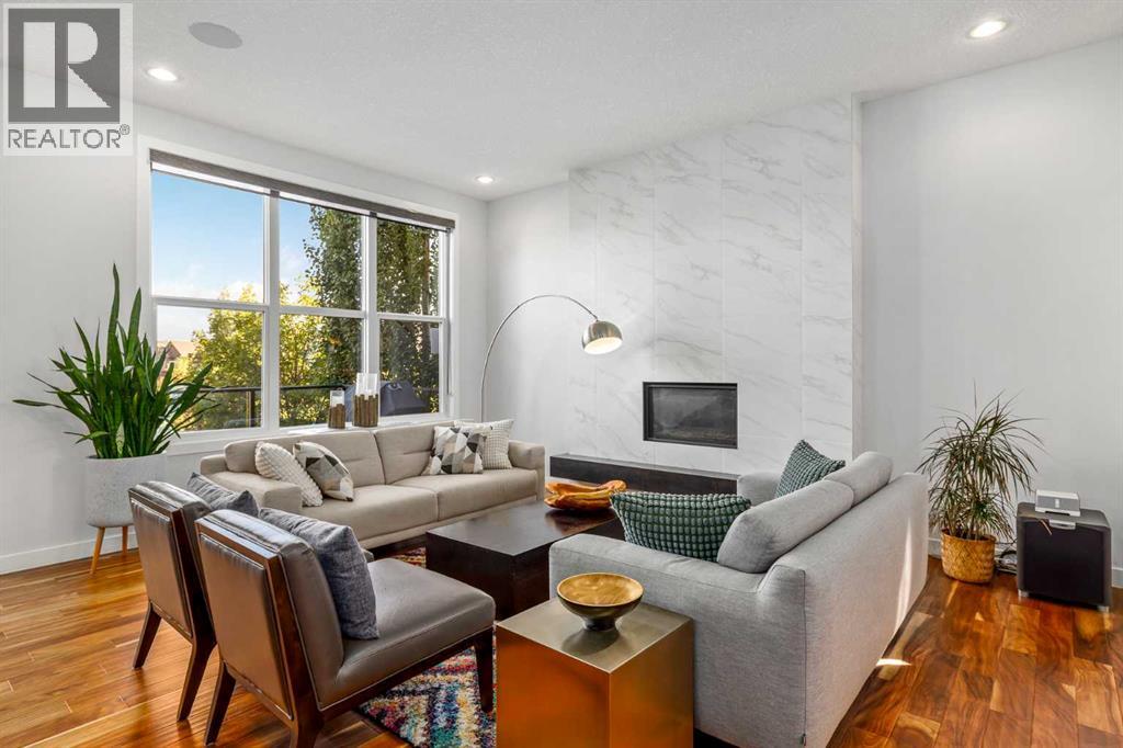 **Open House Saturday February 7th 1-4PM** From the moment you step inside, this stunning home feels like something out of a Pinterest board or a high-end interior design magazine. Every detail has been thoughtfully selected & expertly executed, making it a true showstopper that shows 10 out of 10. Located in the prestigious community of Riverstone in Cranston, this 2,500 sq ft two-storey home offers an unbeatable lifestyle—BACKING DIRECTLY onto a tranquil NATURAL RESERVE & fronting onto a kid-friendly playground. It’s the ideal combination of luxury, functionality, & location. Inside, you’re greeted by 10' ceilings, acacia hardwood floors, & a layout that flows effortlessly. The front dining room features a double tray ceiling & a striking designer light fixture, while the expansive rear living room is anchored by a gas fireplace wrapped in marble-style tile with a lower hearth. Large windows along the back wall frame serene views of the green space beyond, bringing the outdoors in. The chef’s kitchen is a showpiece—featuring full-height dark-stained cabinetry with bar pulls, white quartz counters, upgraded appliances, & a stunning herringbone tile backsplash that extends to the ceiling around the hood fan. A cabinet-style pantry wraps into a coffee bar nook for added function & flair. The back mudroom connects seamlessly to the oversized garage & includes locker-style built-ins. A beautifully wallpapered 2-piece powder room adds a touch of charm. Upstairs, the large bonus room is wrapped in modern railing & showcases a birch forest wallpaper feature wall, built-in ceiling speakers, & laminate floors that continue throughout the upper level (carpet only on the stairs). A convenient built-in desk area outside the kids’ bedrooms creates a perfect zone for homework or study sessions, while a built-in bench at the top of the stairs offers a cozy reading nook. All three bedrooms include custom California Closet-style built-ins for thoughtful storage. The primary suite o verlooks the peaceful reserve & features a spa-like ensuite with a large soaker tub framed by a picture window, a massive glass shower, dual sinks with a dedicated vanity space, & a barn-style door leading to the generous walk-in closet. The professionally finished basement, completed by the builder, extends the living space with durable laminate floors, a spacious rec room, a bright fourth bedroom with a wallpaper feature wall, a 4-piece bathroom, & a sleek wet bar complete with sink & mini fridge—ideal for entertaining or relaxing movie nights. Step outside to discover your private oasis. The beautifully landscaped backyard is designed for both comfort & calm, with mature trees providing privacy & a two-tiered deck perfect for hosting or unwinding. A cozy hot tub area invites you to relax year-round, while thoughtful details like under-deck storage and low-maintenance landscaping enhance the functionality. (31506559)