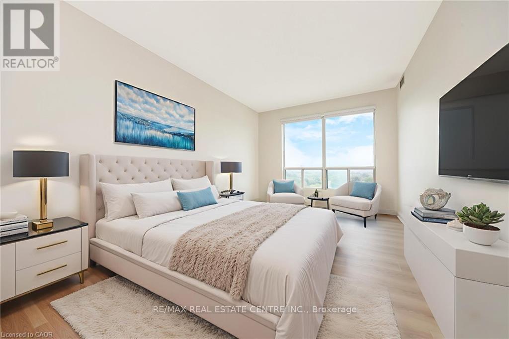 RARE "SKY SUITE" SOUTH FACING CONDO ... it's HIGHER than the PENTHOUSE! Breathtaking unobstructed Escarpment views - see the CN Tower on a clear day! We never see these units offered for sale. This highly sought-after condo has it all: 2 BEDROOMS + DEN, 3 BATHROOMS (Jack n Jill updated to large walk-in shower), HIGH 9' CEILINGS, 2 UNDERGROUND PARKING SPOTS (1 owned, 1 exclusive use), 2 OWNED LOCKERS, UTILITY ROOM in suite and it boasts a whopping 1625 SF ... one of the LARGEST condos in the building. Enjoy the spacious and bright living area w/ massive windows all around to highlight the most spectacular views. The kitchen offers a breakfast area, some updated Samsung and Bosch appliances and a convenient pantry. The combined open concept living and dining room is large enough for extended family celebrations and has loads of massive windows to highlight the stunning views. There are 2 generous bedrooms, one of which is the primary bedroom with walk-in closet and convenient 5-pc ensuite. The den is large enough to be used as a THIRD BEDROOM. Additional features include: $30,000+ in recent upgrades (2025): entire unit has been professionally painted throughout in a neutral tone (Benjamin Moore paint), upgraded lighting, new blinds in bedrooms and new flooring with higher-end sound insulation than required. The unit is also CARPET-FREE, there is in-suite laundry with in-suite walk-in utility room. The building includes a renovated lobby, indoor pool, sauna, fitness area, party room, car wash, community BBQ area and plenty of visitor parking. This is an exceptionally well-run complex in an excellent school district and is centrally located. It is a short walk to restaurants, shops, summer Farmers Market, schools, parks, beautiful Mill Pond and Milton's vibrant downtown. Condo Fees Include Heat, Hydro, Water, Bell Bulk TV & Internet, Parking, Building Insurance and Maintenance of Common Areas. MOVE IN and ENJOY ... Simplify Your Life! *Some photos virtually staged (41905265)