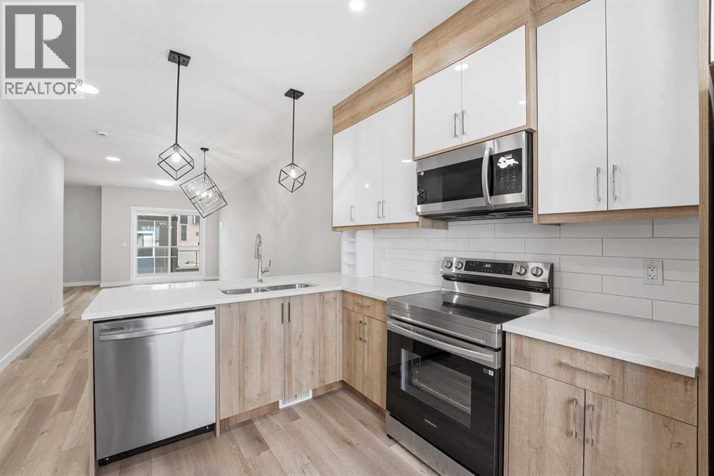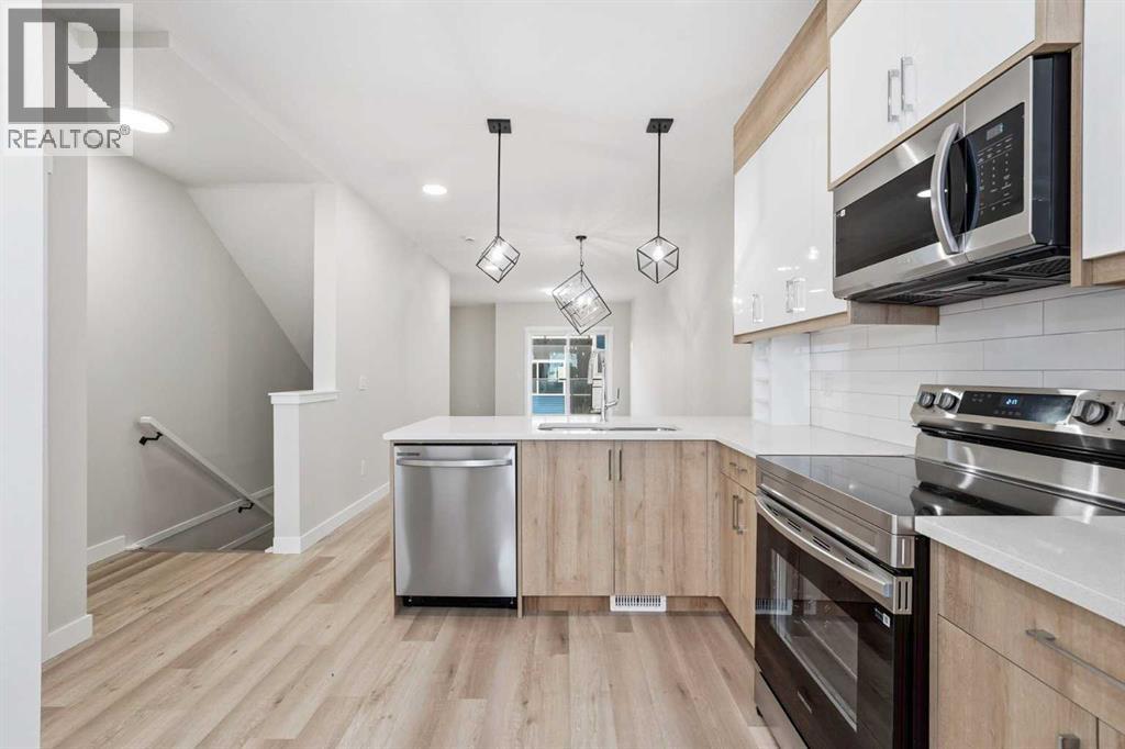 A rare combination of privacy, natural light, and functional design defines this contemporary 3-storey townhouse offering 3 spacious bedrooms, each with its own private ensuite—ideal for families, professionals, or multi-generational living.The entry level welcomes you with a practical foyer and a flexible bedroom that works perfectly as a guest suite, home office, or private retreat. The main floor is bright and inviting, featuring large windows, an open-concept layout, and a modern kitchen equipped with stainless steel appliances, sleek lighting, and a functional breakfast bar—perfect for entertaining or everyday living. A convenient powder room and a cozy balcony complete this level.Upstairs, you’ll find two generous primary bedrooms, both with private ensuites. One suite offers a walk-in closet and dual vanity for added comfort. A stacked laundry closet completes the top floor.Additional highlights include a single attached garage, low condo fees, ample visitor parking, and future nearby green space. With quick access to Stoney Trail, commuting and daily errands are seamless.Modern comfort, flexible living, and a convenient location—this move-in-ready home checks all the boxes. (31506590)