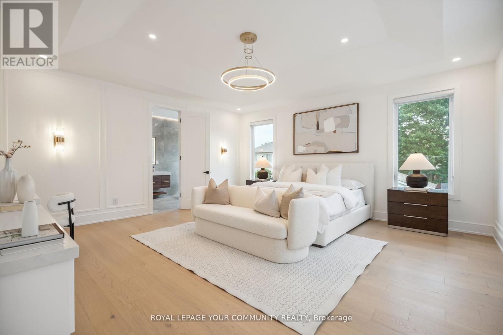 Step into a realm of unparalleled luxury at 14 Ranwood Drive, an architectural masterpiece that redefines modern living in the west part of Toronto. This distinctive residence harmoniously blends sophistication, comfort, and functionality, offering a lifestyle that is both grand and inviting. As you enter, be captivated by the soaring 9 ft ceilings that create an airy atmosphere, adorned with exquisite hardwood flooring that flows seamlessly throughout. Oversized solid-core wood doors and contemporary baseboards add an elegant touch, while energy-efficient LED lighting and stylish pot lights illuminate every corner of this beautifully designed home. The highlight is a custom gourmet kitchen, featuring state-of-the-art smart appliances, sleek quartz countertops, and a concealed walk-in butler's pantry, perfect for both daily meals and lavish entertaining. The open-concept layout is anchored by a stunning floating staircase, leading you to a serene main-floor office-an invaluable space for productivity. Ascend to find five generously proportioned bedrooms, each designed with convenience in mind, with bath ensuites, ensuring both comfort and privacy for family living. The fully finished in-law suite, complete with its own kitchen and separate entrance, opens the door to endless possibilities-ideal for extended family stays or potential rental income. Outside, indulge in the meticulously landscaped lot featuring a sophisticated irrigation system and beautiful interlocked pathways, enhancing your outdoor oasis. This extraordinary home offers a unique lifestyle where elegance meets practicality. Embrace a living experience that must be seen to be fully appreciated-a truly rare offering in today's competitive market. (41906243)