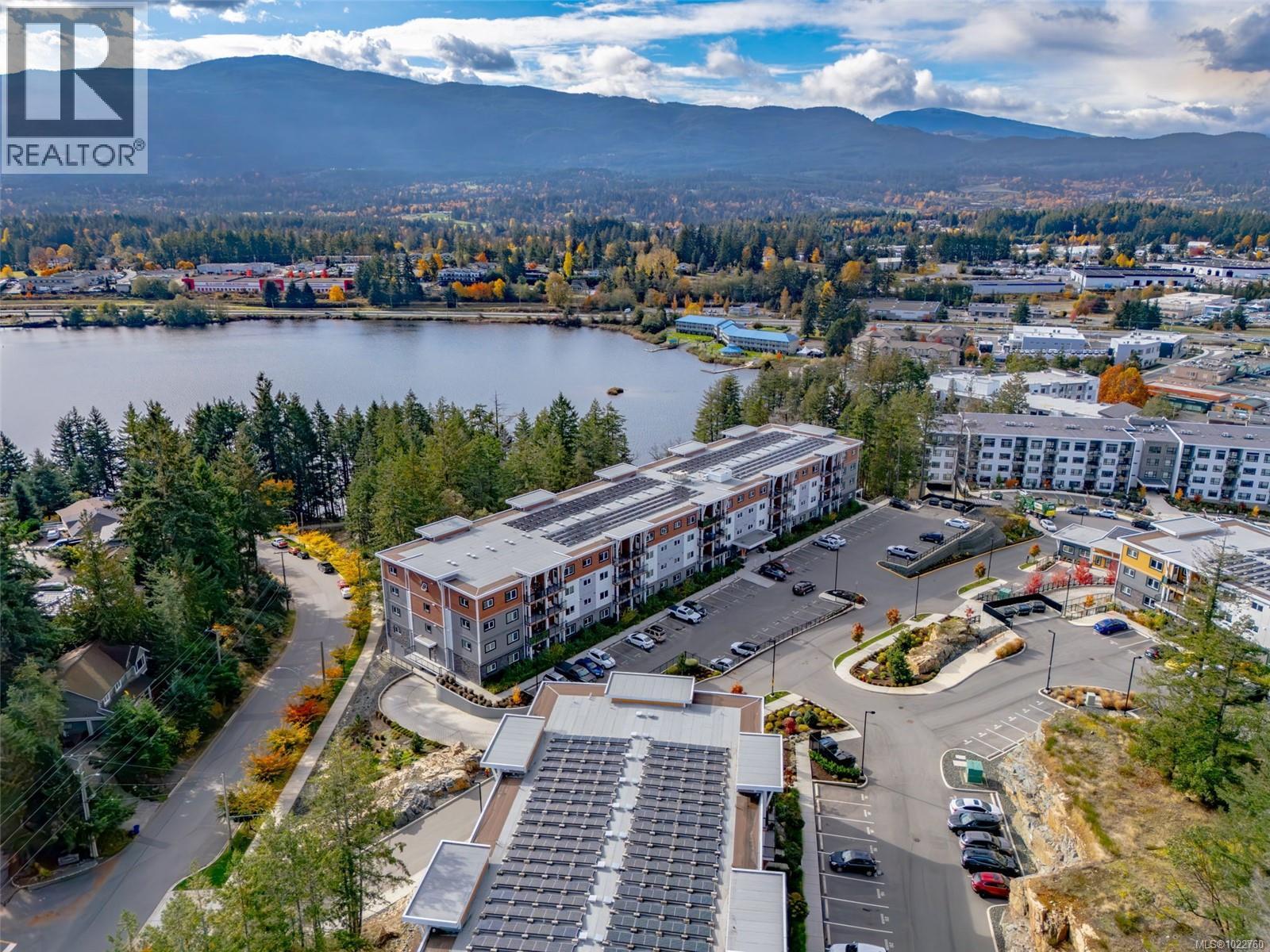 Welcome to this stunning home in Lakeview Terrace! This Built Green Platinum certified 2-bedroom, 2-bathroom residence offers a fantastic vantage point with sweeping mountain views over North Nanaimo. Completed in 2022, this modern home prioritizes sustainability with roof-installed solar panels, and a heat recovery ventilation system. The bright interior boasts a contemporary design featuring up-to-ceiling cabinetry, quartz countertops, and modern fixtures. Maximizing privacy, the two spacious bedrooms are thoughtfully situated on opposite sides of the unit. You'll have the convenience of one underground parking stall with secure bike storage. Walkability to Long Lake and North Town Centre for all your shopping and dining needs. Residents benefit from premium complex amenities, including a stylish clubhouse lounge, a fully equipped gym, and a yoga studio. Perfect for both families and investors. (Measurements and data approximate; verify if important.) (30252464)