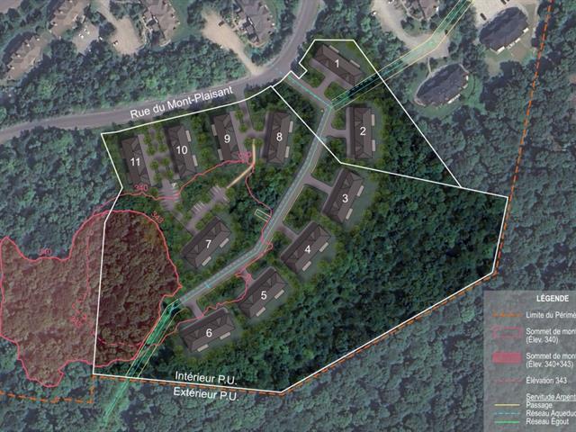 ** Development Land ** Phases 1 and 2 * Excellent site suitable for the construction of 55 townhomes or three-storey multi-residential units. Municipal water and sewer infrastructure has already been extended into the wooded area and is ready to service new buildings. Located on elevated ground, this privileged site offers panoramic views of the Laurentians and Mont-Tremblant, while being in the heart of Mont-Tremblant's charming Old Village. Future residents will also enjoy access to aquatic facilities and tennis courts. GST/QST must be added to the asking price (44650772)