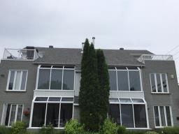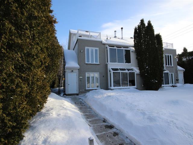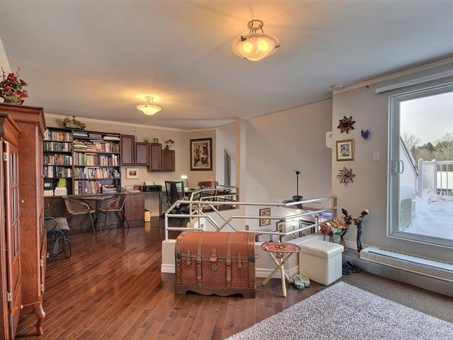 Superbe condo deux étages de 1100 pieds carrés, cuisine avec salle à manger, grande luminosité avec une verrière au salon ainsi qu'un foyer au bois pour votre confort. Une salle de bain avec bain portant et douche en verre, grande chambre des maîtres, possibilité d'ajouter une chambre. Au 2ième étage un bureau et un boudoir avec lit mural et une terrasse intime extérieure. Un accès au terrain avec gazébo et 2 remises. (57322006)