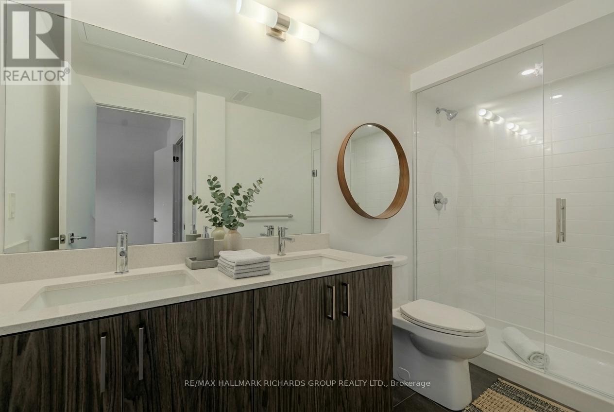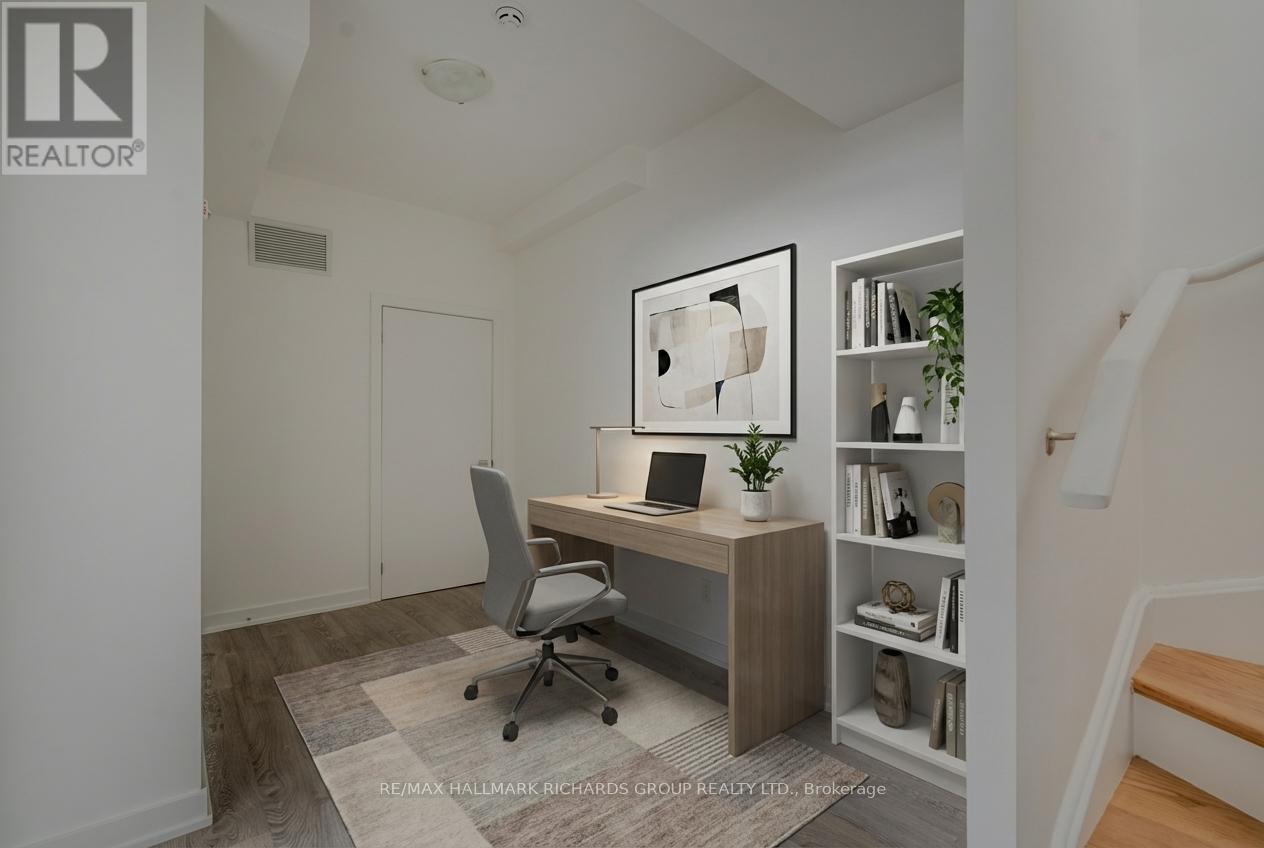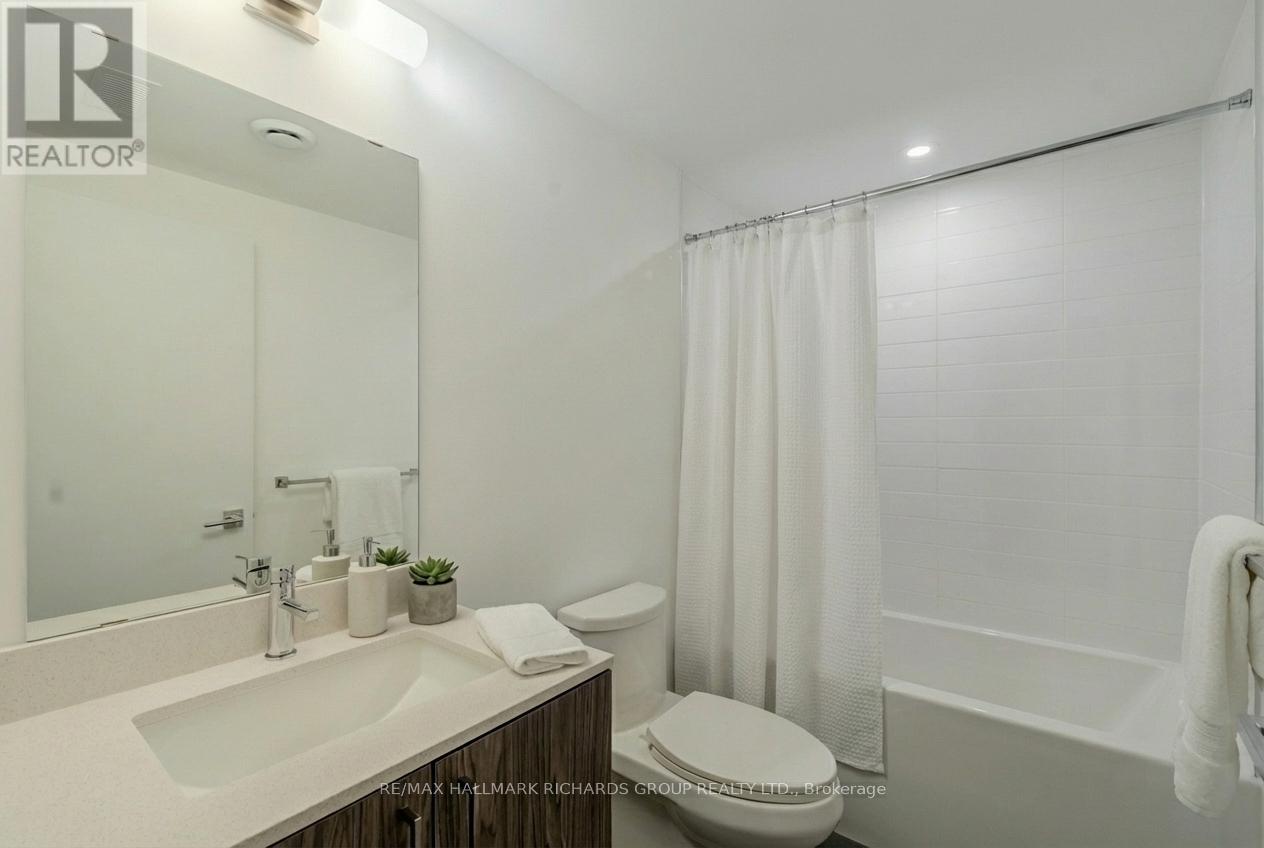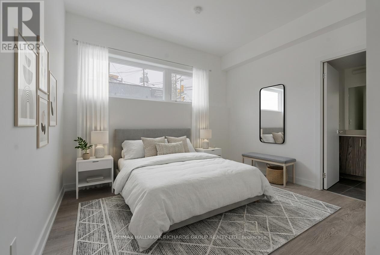 Brand new, never lived in! This light-filled 2 bedroom+den townhome captures the essence of modern living with a lakeside calm. The open concept main level is defined by clean lines and a natural flow between living spaces, with a terrace walkout. A quartz kitchen island anchors the room, framed by sleek integrated stainless steel appliances. Downstairs, the two bedrooms are bright and quiet, plus enjoy a den that's perfect for an office or a second living space. The primary bedroom features a large walk-in closet as well as a 4pc ensuite with a double vanity and a luxurious walk-in shower. Every finish speaks to balance and simplicity, making this space feel timeless. The building includes a private rooftop terrace for sunset unwinding, where this outdoor perch offers an unobstructed view of the neighbourhood canopy and the calm beyond. Set within Birch Cliff's newest modern townhome enclave and surrounded by Kingston Road Village, lakefront trails, and the beauty of the Bluffs. This special suite offers a rare opportunity to lease something truly fresh in one of the east end's most quietly-coveted communities! Please note the photos have been virtually staged. (41906914)