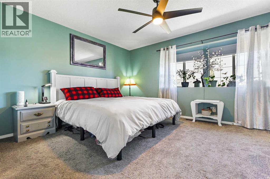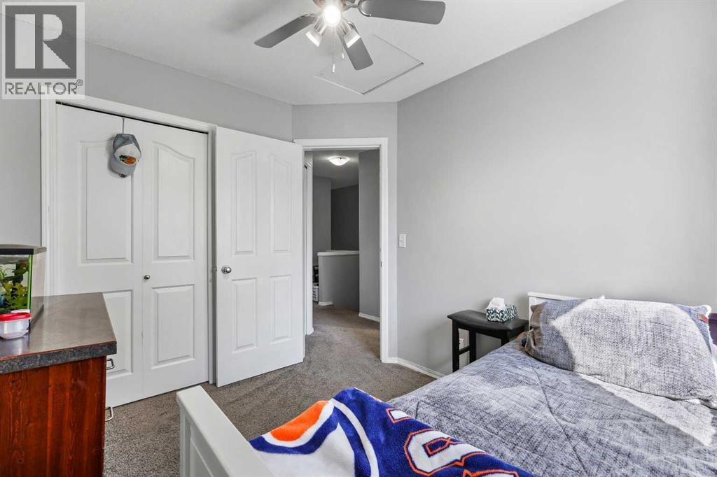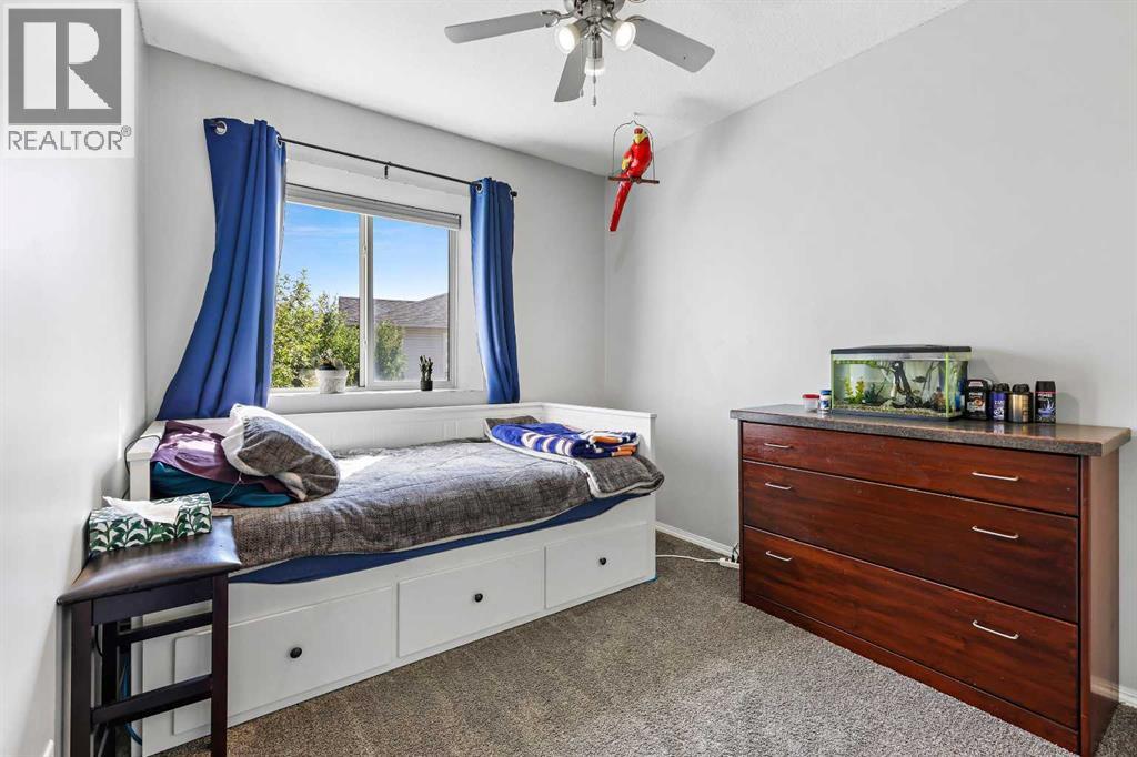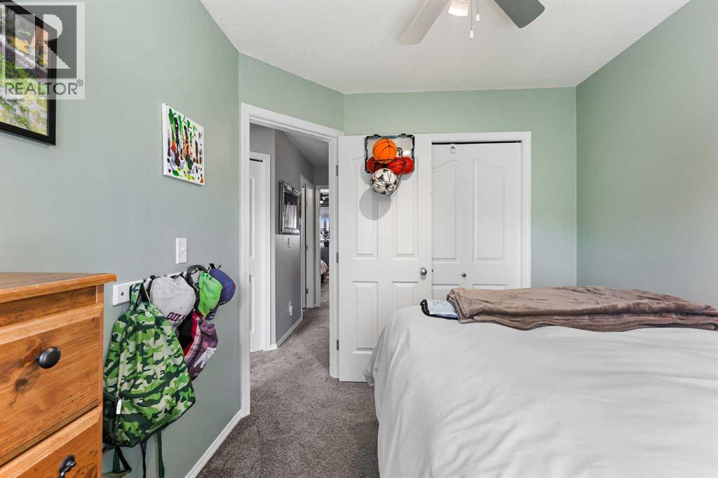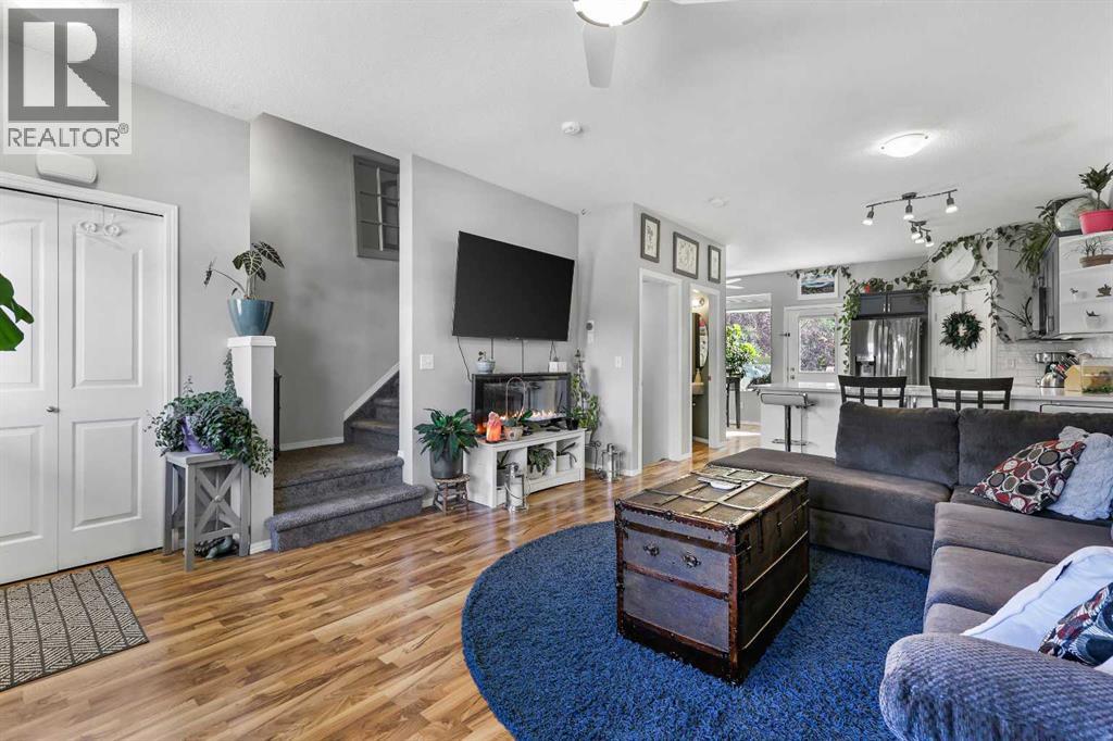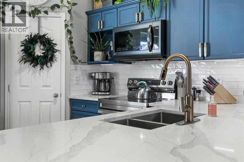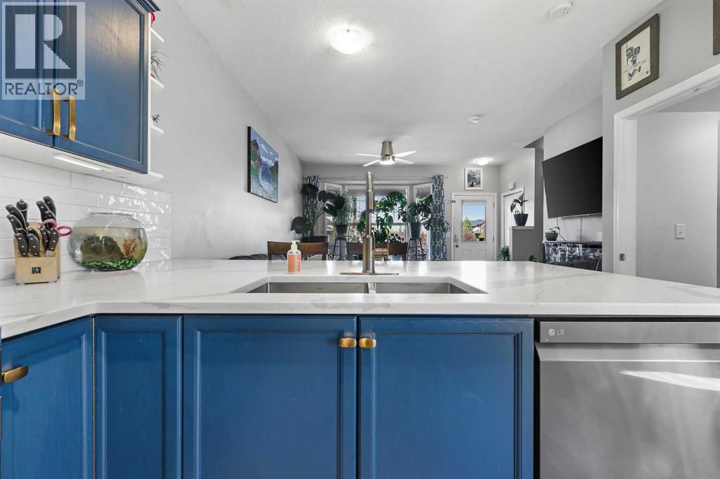 Step into stylish comfort in this beautifully maintained 3-bedroom, 2.5-bath 2-storey townhome located in the heart of family-friendly Luxstone. Boasting over 1,700 sqft of total thoughtfully designed living space with a fully finished basement, this home is the perfect fit for first-time buyers, growing families, downsizers, or savvy investors.The bright and inviting main floor features soaring 9’ ceilings, a large bay window that fills the living room with natural light, modern ceiling fans in both the living and dining areas, and rich laminate floors. The dining space opens to a sun-filled south-facing backyard with your very own private deck backing onto green space and pergola—perfect for summer barbecues or peaceful morning coffees.The refreshed kitchen is a true showstopper with striking navy blue cabinets accented by gold hardware, a sleek white tile backsplash, under-cabinet lighting, and designer granite countertops. A corner pantry, stainless steel appliances, USB-integrated outlets, and a flush eat-up island with added storage make this a modern kitchen ready for everyday function or entertaining.Upstairs, discover three generously sized bedrooms (each equipped with their own ceiling fan), the serene primary suite offers a large walk-in closet and a convenient cheater 4-pc ensuite. The finished basement provides a massive rec room, a full bathroom, separate storage room, and laundry tucked out of the way—ideal for play space, movie nights, or a home gym.Enjoy the two assigned parking stalls, with bonus street parking right in front of the townhome, and a fantastic location just steps from schools, parks, playgrounds, pathways, and everyday amenities. Peace of mind with a BRAND NEW WATER HEATER December 2025!This is your chance to own a move-in ready Airdrie townhome with charm, updates, and unbeatable value! (31508043)