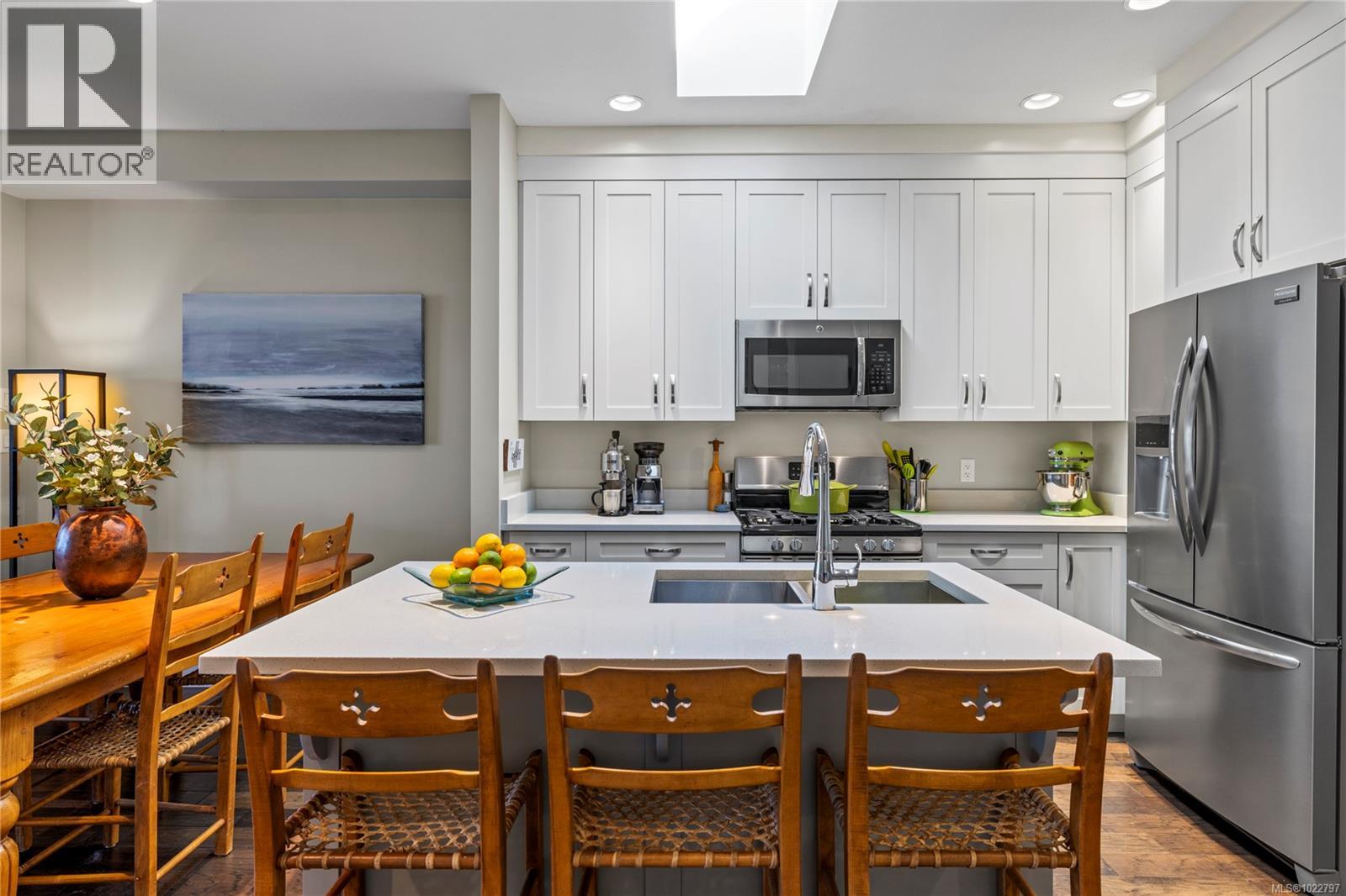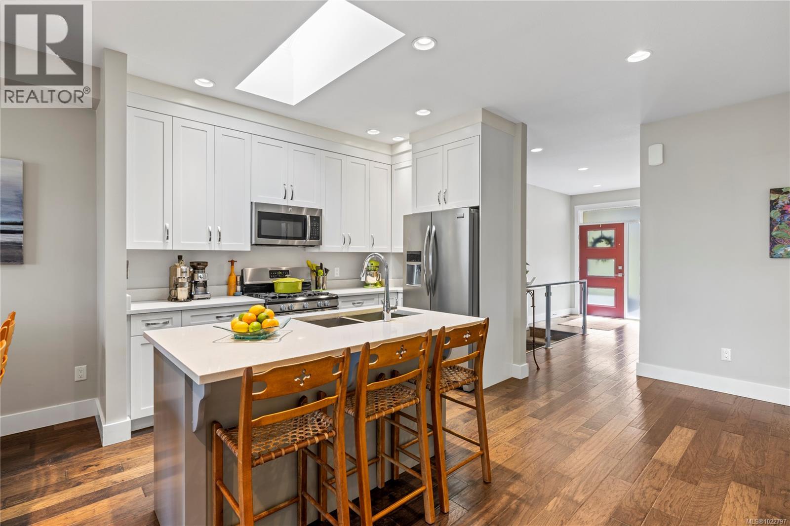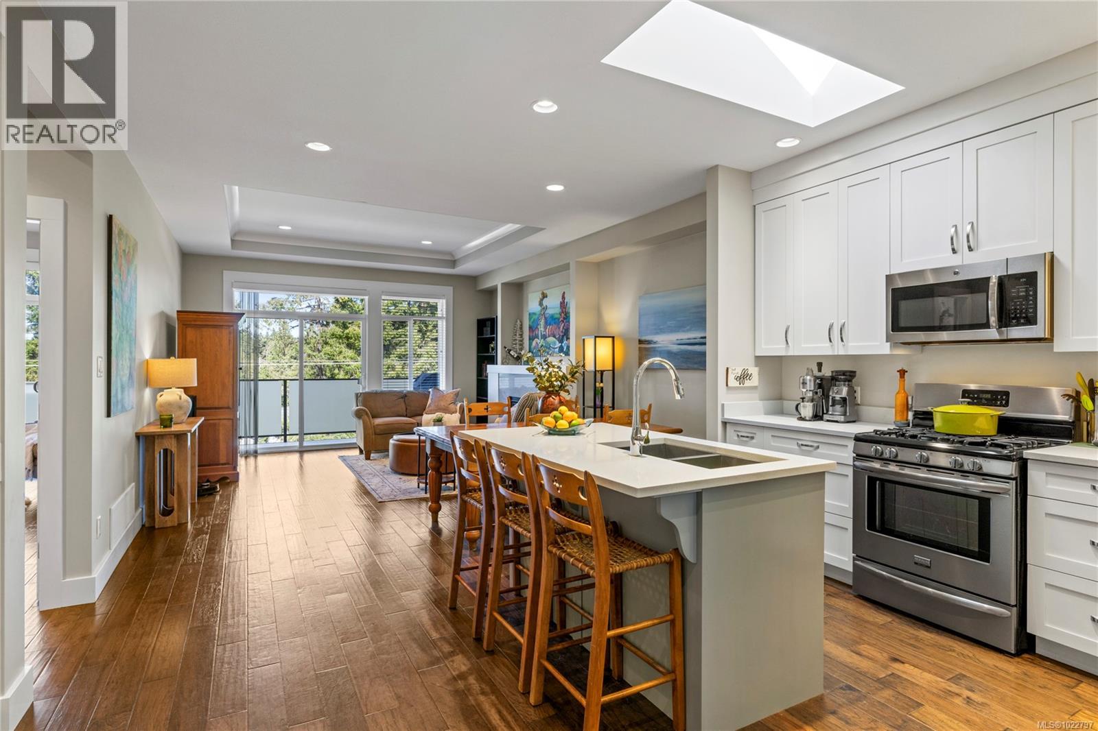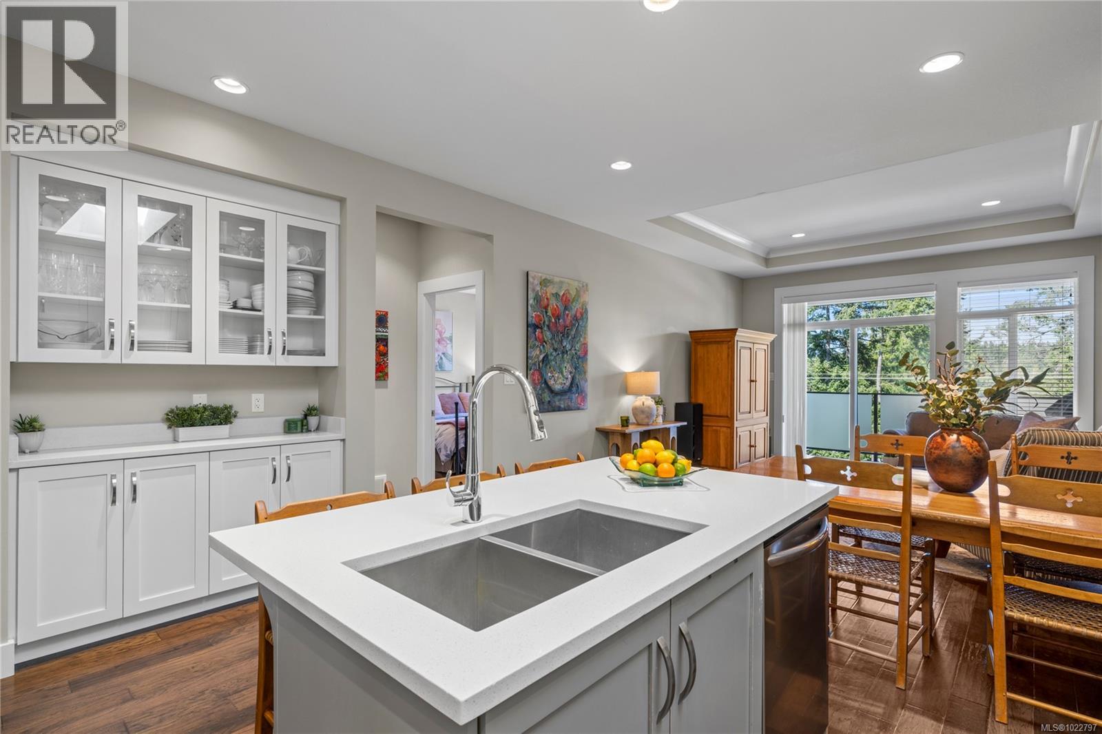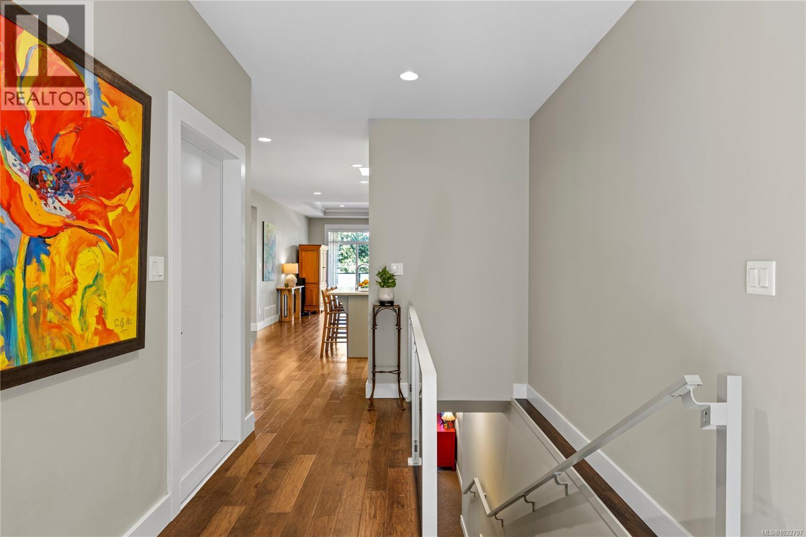 Situated in Hammond Bay, this 3 bedroom + den contemporary home has been filled with love, laughter and a decade of memories. On the main level you will find an open, light-filled kitchen & dinning area which flow seamlessly into the living room equipped with a stylish tray ceiling and a cozy gas fireplace. This area opens to an airy deck perfect for family gatherings or peaceful mornings. The primary bedroom is conveniently located on this level complete with a 5 pc ensuite & walk-in closet, making level-entry living effortless. A den or office rounds out the main floor. Downstairs offers two more bedrooms, a full bathroom, laundry rm and a large rec room—ideal for movie nights, playtime or hobbies. Outside, the grassy rear yard and covered patio are great for pets, gardening or relaxing. Out front a quaint seating area has been created to kick back with a glass of wine or a good book in the evening. With a natural gas furnace and easy potential to add A/C or a heat pump, plus ample parking in the garage and driveway, comfort & convenience are covered. Just minutes from Neck Point Park, Piper’s Lagoon, excellent schools and all North Nanaimo amenities, this home truly blends lifestyle, location, and charm. (30253138)