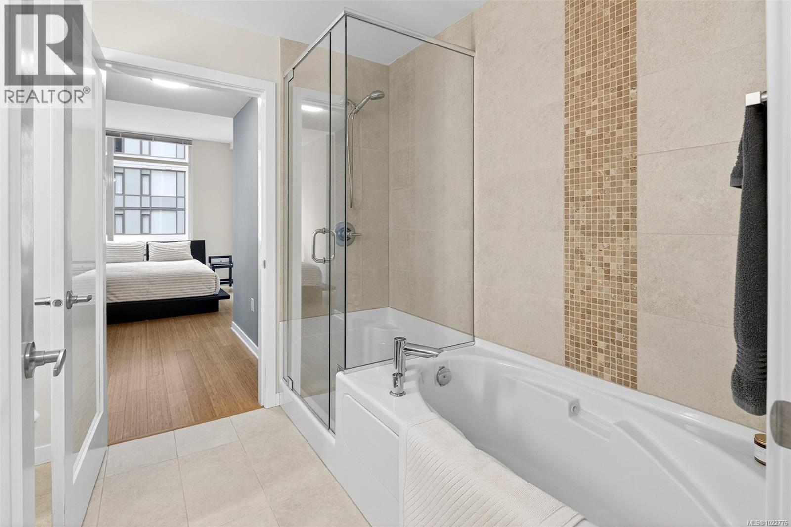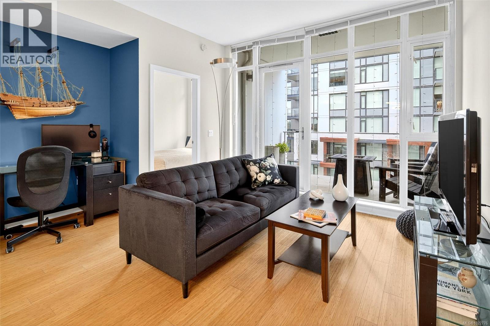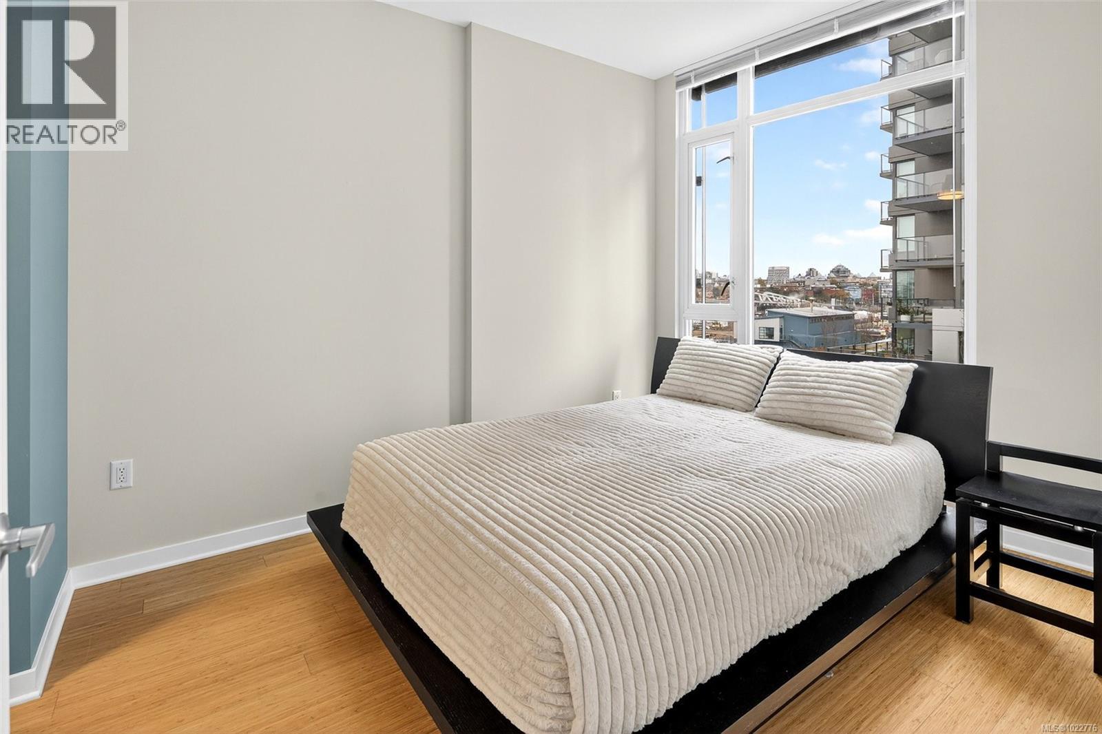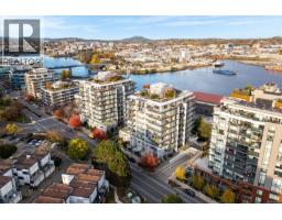 NEW LISTING! Discover this bright and modern 1-bedroom, 1-bathroom suite located in the sought-after Balance at Dockside Green — one of Vic West’s most desirable communities. Enjoy upper harbour views and an exceptional lifestyle in this eco-conscious, well-managed building known for its sustainability and design quality. Inside, you’ll find a spacious and thoughtfully designed floor plan that combines contemporary style with everyday comfort. The home welcomes you with a private entry hallway that opens to a sunny living space featuring floor-to-ceiling Low-E windows and an oversized balcony, perfect for relaxing or entertaining with friends while taking in the harbour backdrop. The open-concept kitchen is equipped with bamboo flooring throughout (no carpet!), rich wood cabinetry, granite counters and backsplash, stainless steel appliances, and a Whirlpool self-clean gas range. A convenient island breakfast bar, dining area, and built-in office nook add versatility and function to the layout. The luxurious ensuite bathroom offers a soaker tub, separate glass shower, stone countertop, and charming French doors, creating a spa-like experience. Recent upgrades include a new screen door and a 2024 smart LG washer/dryer. A heat and water consumption interface provides efficiency and transparency for your utilities. This home includes secure parking for one car and one motorcycle, plus a storage locker, bike mount, kayak storage and wash station, and EV charging approval. The building is pet-friendly and rental-friendly, with a proactive strata and a reputation for being exceptionally well cared for — truly move-in ready. Enjoy an unbeatable location just steps to the Galloping Goose waterfront trail, dock access, local shops, transit, and downtown Victoria. Experience modern urban living with nature and the ocean at your doorstep in one of Victoria’s most forward-thinking neighbourhoods. (30253138)
