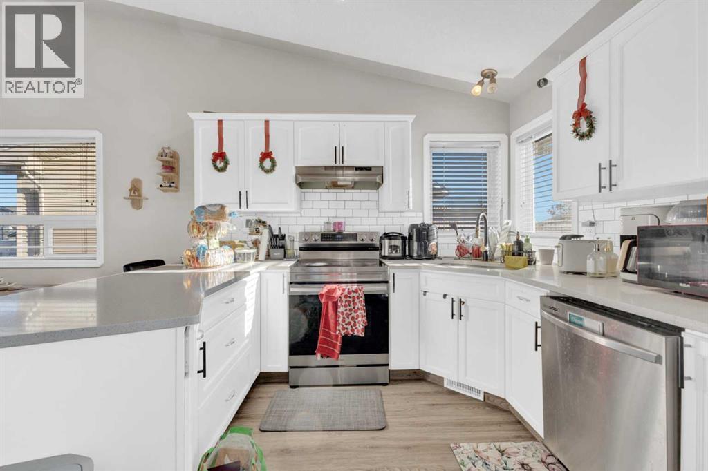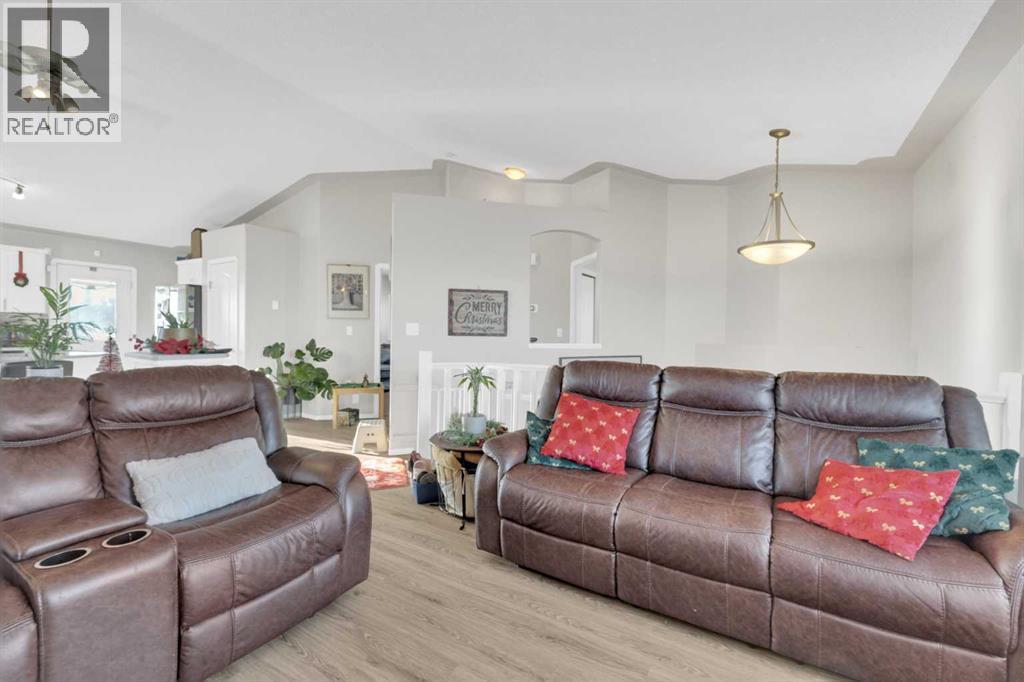 Discover the potential in this 5-bedroom home set on a large pie-shaped lot in a convenient, family-friendly neighbourhood. The basement includes a full kitchen and a private separation from the upper level. The lower level also features a spacious family room, two bedrooms, a 3-piece bathroom, and roughed-in infloor heat. The main level offers a bright, open floor plan with vaulted ceilings and three bedrooms. Recent updates within the past year include a new furnace, hot water tank, air conditioning, upstairs fridge, washer, and refreshed landscaping. Outside, the fully fenced yard offers a detached double garage, RV parking, a two-tier deck, and a hot tub with gazebo. A versatile property in a desirable location with plenty of space and functional layout options. (31508362)