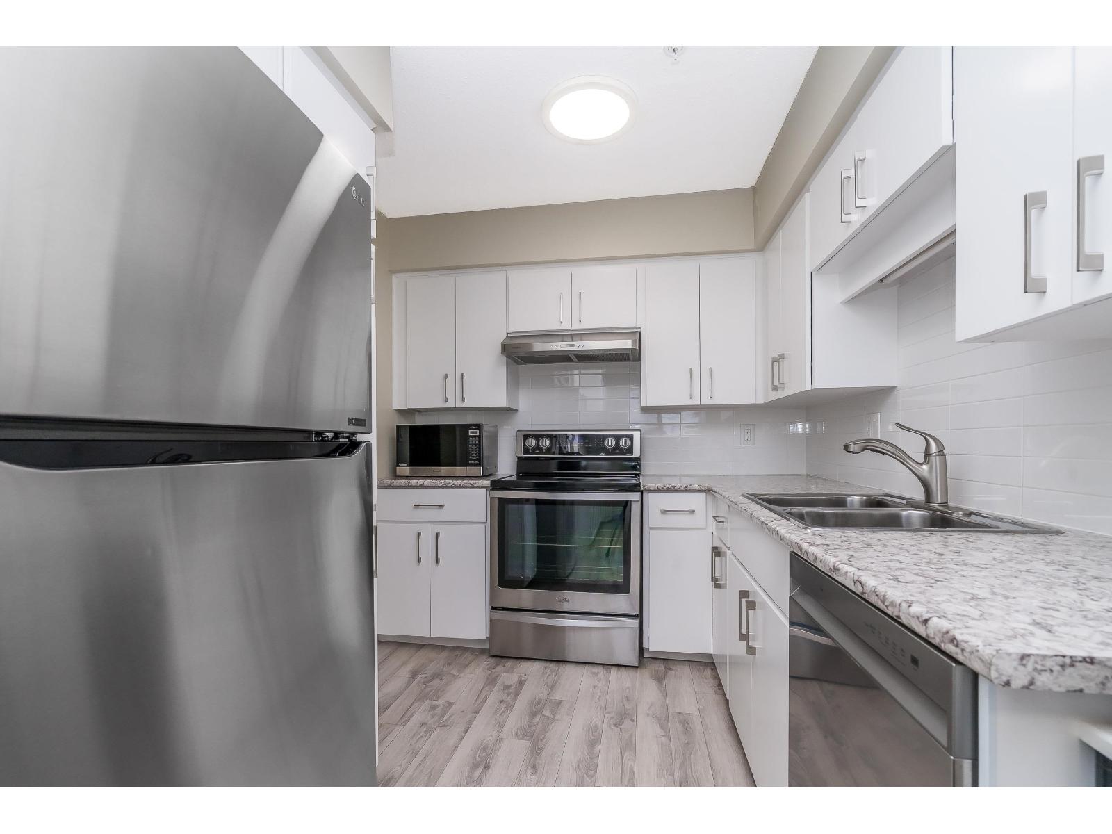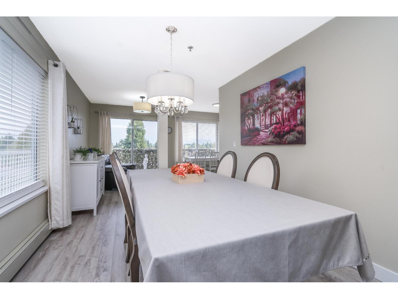 Wow! Top floor corner unit with fabulous view of North Shore Mountains. Absolutely spotless & bright beauty & wraparound balcony facing northwest. Newer floors & paint. Tons of kitchen cupboards. Secure underground parking plus lots of visitor parking. Just steps from Central Heights Mall and UFV, and only 5 minutes to Costco and the U.S. border. (32308006)