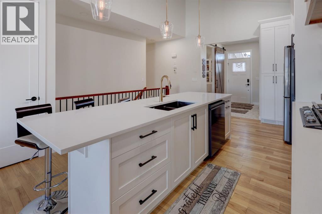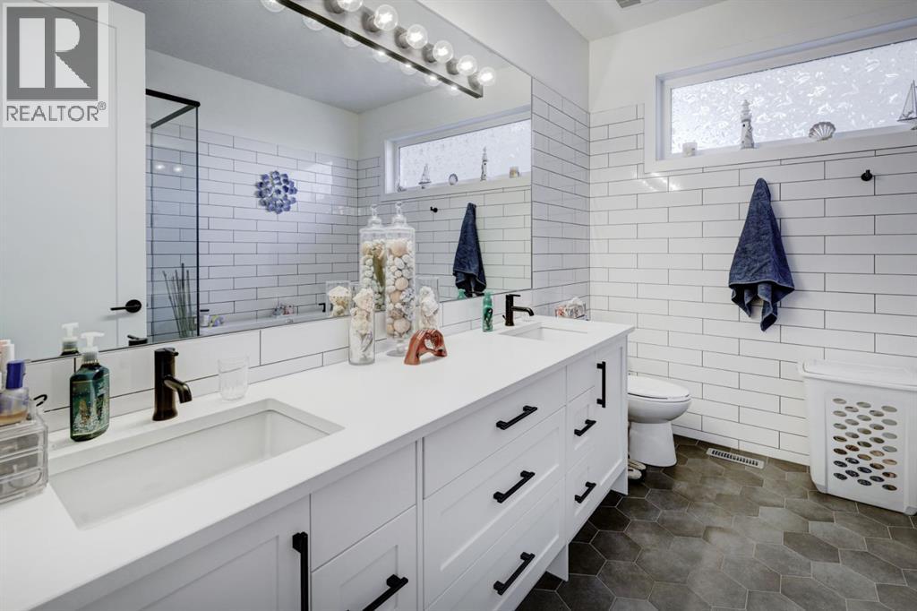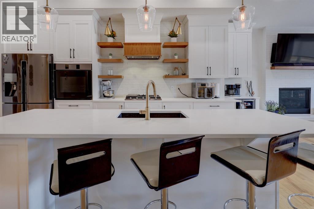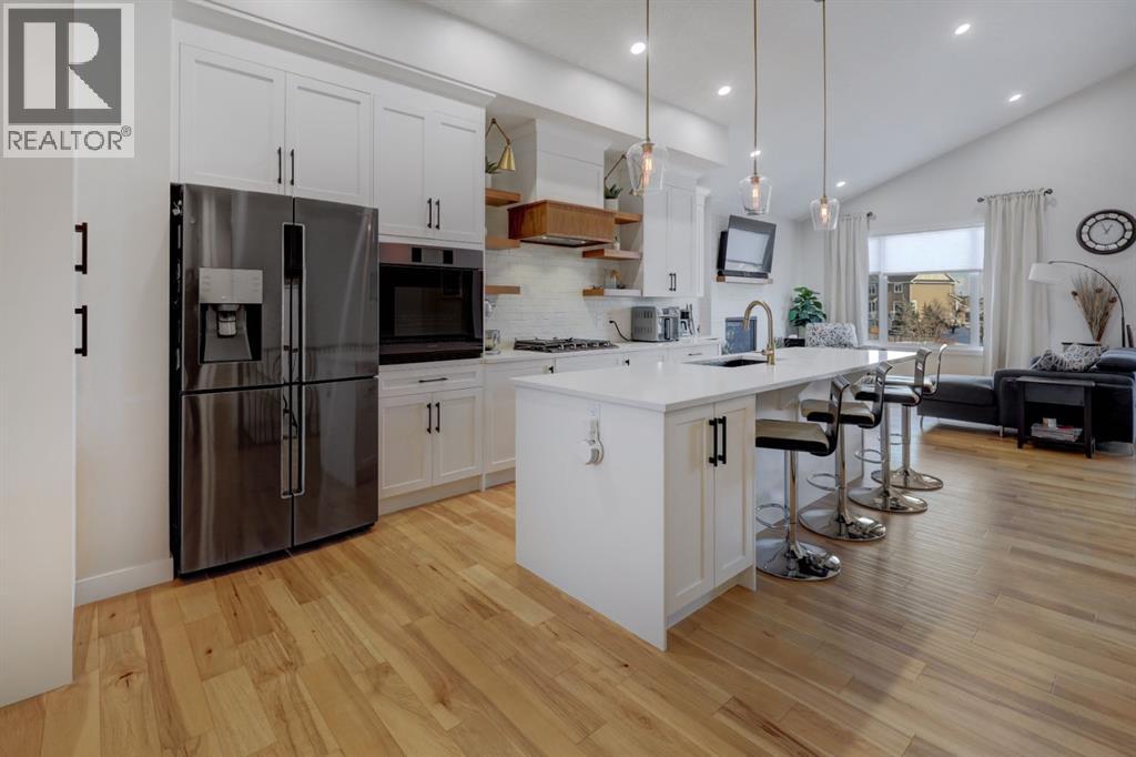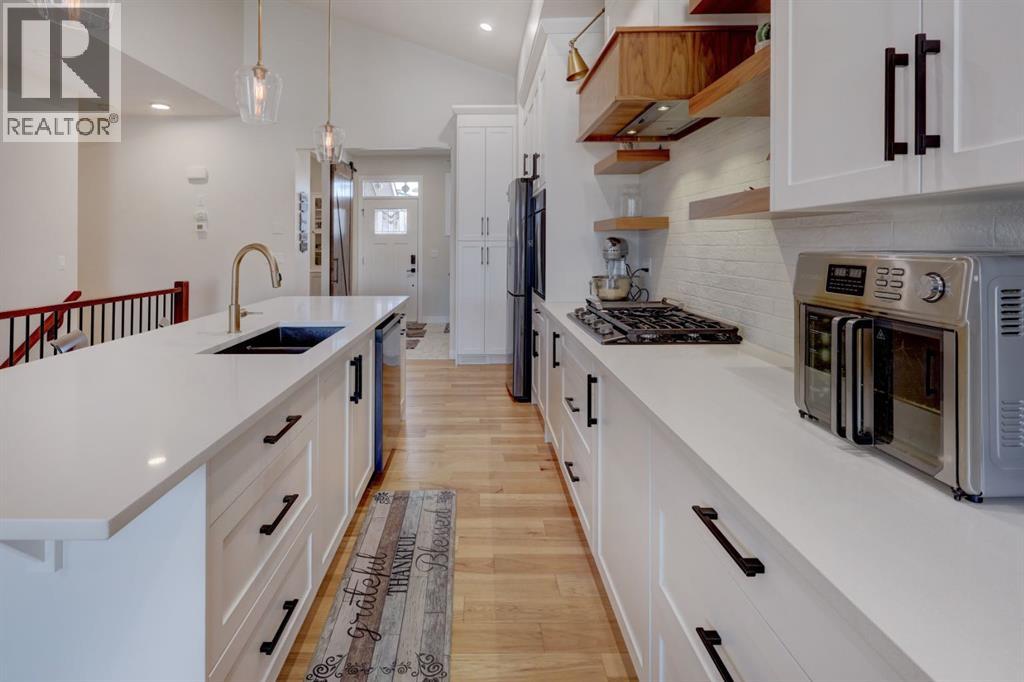 Beautifully Upgraded Bungalow on the Canals! This rare 4 bedroom, 4 bathroom home with a main floor office offers over 3000sqft of thoughtfully designed living space and a desirable west facing backyard overlooking the water. Step inside to find soaring vaulted ceilings, expansive windows that capture the canal views, warm hardwood floors, custom lighting and an abundance of built-in’s throughout. the freshly painted main floor showcases a dream kitchen with quartz countertops, SS appliance package, a statement hood fan, large Island, walk in pantry plus an additional wall pantry. The open concept design flows seamlessly into the dinning and living areas, while patio doors lead to the spacious upper deck complete with gas and water lines. The primary retreat enjoys peaceful canal views, double door entry, walk in closet and a luxurious 5pc ensuite. Another bedroom, a full bathroom, custom mud room and an upgraded laundry room with new cabinetry, pull out racks and countertop compete the main level. The fully finished lower level is perfect for entertaining or relaxing, featuring a large Rec room with wet bar, west facing windows and walkout access to the covered patio and fire pit area. Two additional bedrooms are located downstairs including one with a private ensuite, plus a versatile flex room with barn doors, ideal for a gym, office or hobby space. Upgrades includes new appliances, some new cabinetry throughout, main floor lighting and LED pot lights, new A/C, new water softener and more! This Canal front property combines modern updates with exceptional functionality and is an absolute must see! Book a showing today (31507720)