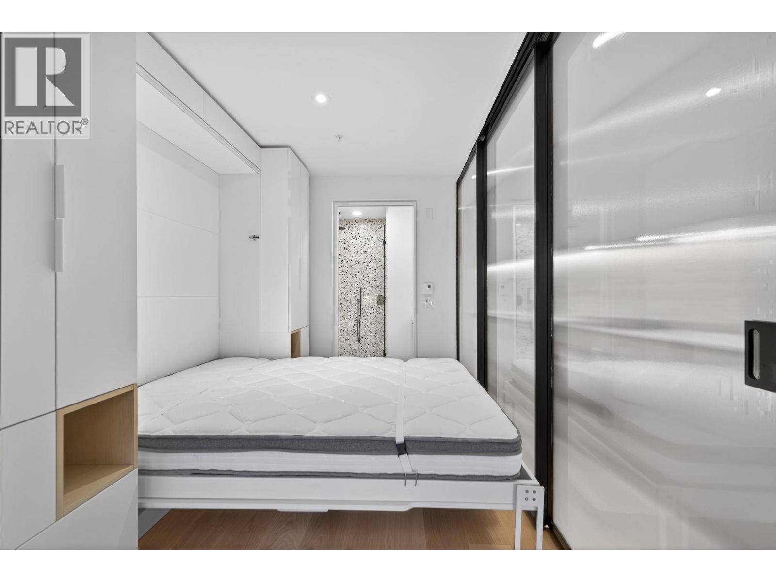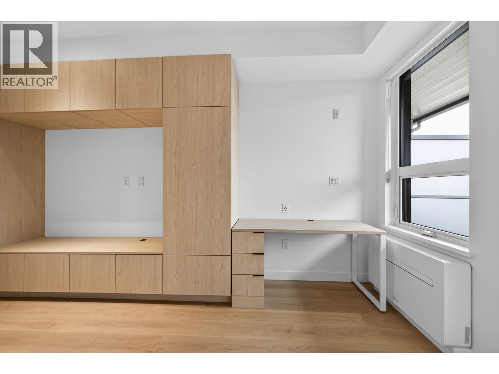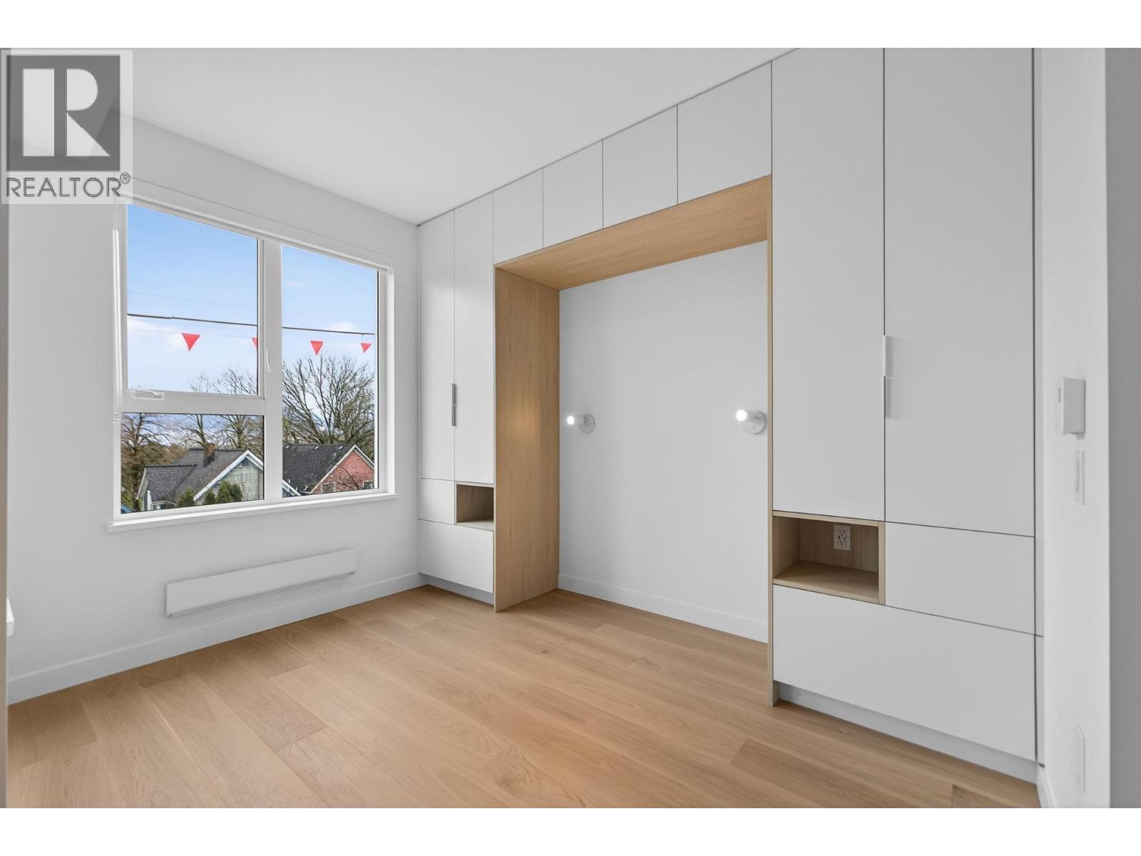 Brand new, air-conditioned junior 2-bedroom, 2-bath condo designed for smart, flexible living in the heart of Mount Pleasant. Custom built-ins throughout mean less furniture is needed and every inch is thoughtfully used. A clever wall-bed setup doubles as a dining area during the day and a comfortable bedroom at night, complete with built-in lighting and storage. There´s also a built-in desk-ideal for working from home. Sliding glass walls provide privacy when needed and tuck away neatly when not in use. The building features a rooftop terrace with city and North Shore mountain views, plus an indoor shared workspace with a full kitchen. This unit includes EV-ready parking, a storage locker, and bike room access. 1-year unfurnished rental. (32308122)