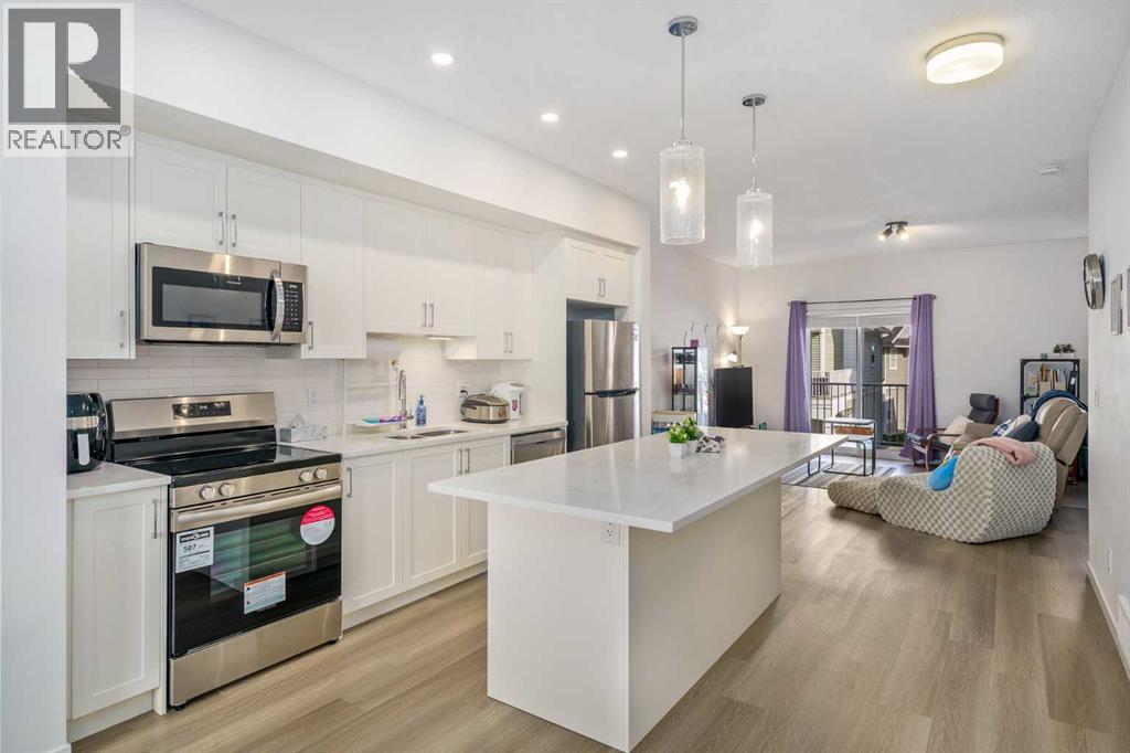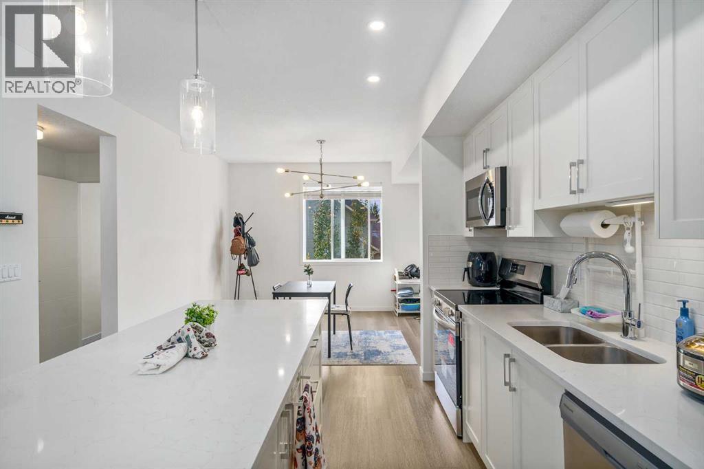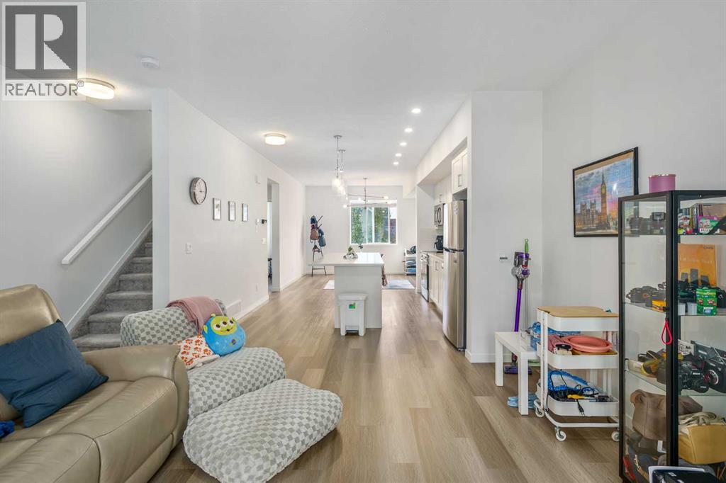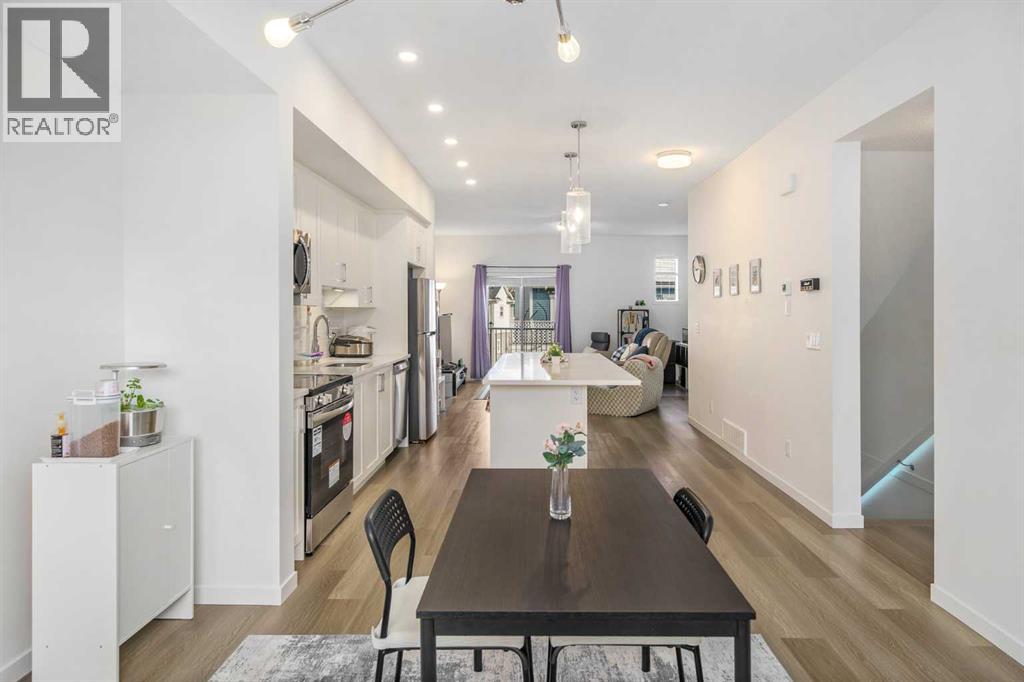 Step into modern comfort with this beautifully designed 2-bedroom, 2.5-bath townhome in the heart of Copperfield. Built in 2024, this bright and contemporary home offers over 1,400 sq. ft. of living space with clean lines, smart design, and quality finishes throughout. The open-concept main living area on the second floor is filled with natural light and features engineered laminate flooring, a stylish kitchen with quartz countertops, upgraded cabinetry, and stainless steel appliances. The spacious living and dining areas flow seamlessly to the balcony with a BBQ gas line—perfect for morning coffee or summer grilling. Upstairs, you’ll find two comfortable bedrooms, each with its own full bathroom, plus convenient upper-floor laundry. The ground level offers a tandem double garage (16’ x 40’) and access to a private rear patio space—great for relaxing or adding some greenery. Additional highlights include low condo fees ($259/month), new home warranty coverage, and a quiet location close to parks, playgrounds, schools, and shopping. Whether you’re a first-time buyer, young professional, or looking for a low-maintenance lifestyle in a growing community, this townhome checks all the boxes. (31508822)