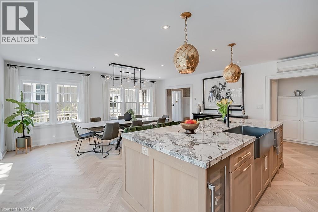 Welcome to this beautifully renovated 4 bedroom, 2.5 bath home offering over 3400 sq ft of living space, set amongst majestic trees and nestled within the historic gates of Indian Point. The main level showcases heated floors and exquisite herringbone hardwood, flowing into a custom designer kitchen featuring a large island, wall ovens, paneled fridge and dishwasher, and striking light fixtures. Oversized sliding patio doors open wide to create seamless indoor outdoor living. The cozy living room features a gas fireplace with a floor to ceiling surround and inset for your TV. The second floor includes three generous bedrooms with walk in closets, hardwood throughout and a stunning updated main bath with heated floors. The third level offers a private bedroom retreat with a den area and walk in closet ideal for guests or a home office. The finished lower level has a spacious recreation room, 3 piece bath, and ample storage. A double garage provides convenience, while the prime location offers quick access to Spencer Smith Park, major highways, downtown Burlington, and its vibrant shops and restaurants. This home combines luxury, location, and lifestyle! (70027901)