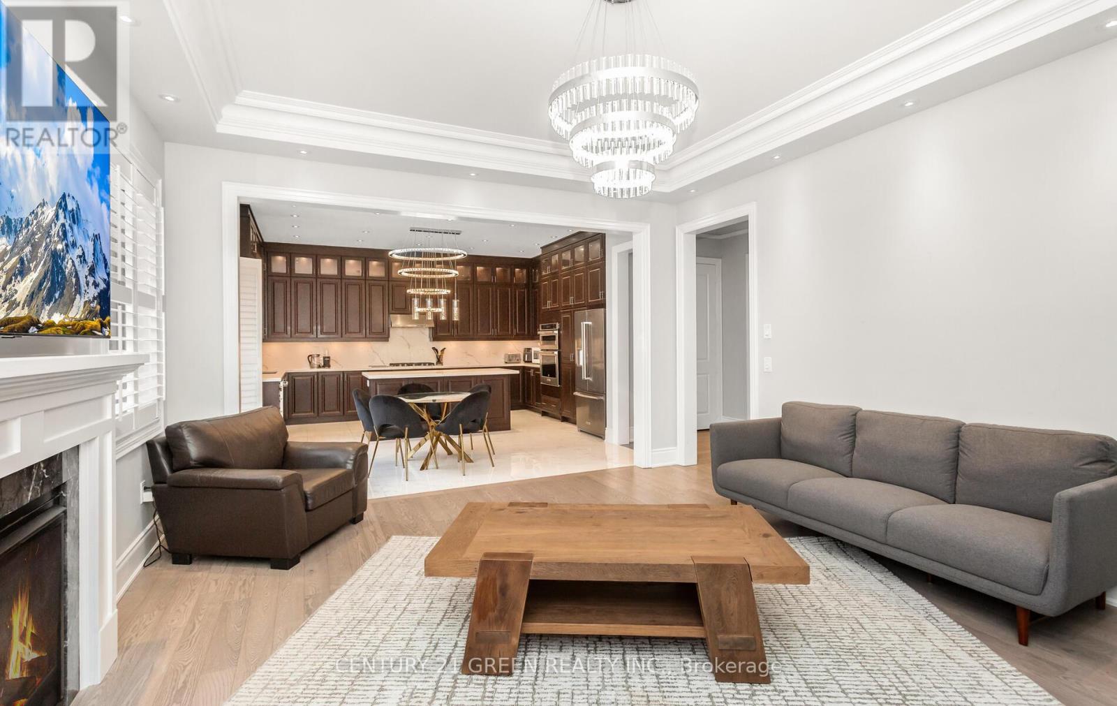 Exquisite gem in the highly sought-after Ford community. Offering approx. 5,000 sq. ft. of living space with 5+3 bedrooms and 5+1 baths. Elegant main level features wide-plank hardwood floors, wainscoting, 10' ceilings with crown Moulding and custom LED chandeliers with pot lights throughout. Eat-in gourmet kitchen with premium KitchenAid appliances, quartz countertops, oversized centre island, and extended cabinetry. Second level boasts five spacious ensuite bedrooms, including a primary retreat with spa-inspired 5-pc bath. Legal 2-bedroom + den basement apartment with separate entrance, full kitchen, quartz counters, and high-end stainless steel appliances-ideal for in-laws or rental income. Meticulously landscaped with full stone interlock and private cedar-lined backyard. A must-see family home (41908646)