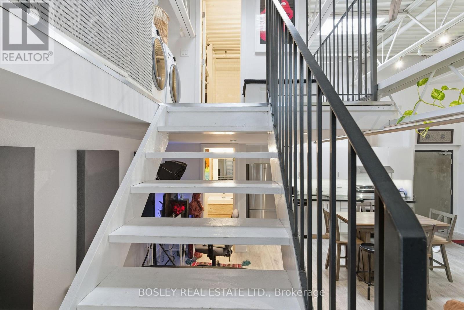 Welcome to the Sorauren Lofts a true LIVE/WORK community. This authentic brick and beam hard Loft highlights 15 foot ceilings, skylights, large windows, heavy pipes and ductwork, ductless A/C and exposed wood-slat ceilings and a steel framed mezzanine with a 4 piece bathroom and laundry (unfortunately not enough room for a bed). With recent renovations that include 2 updated bathrooms, a renovated kitchen and new flooring. Adjacent to Sorauren Park where you can find a off leash dog park, farmer's market, tennis courts, baseball diamond and so much more like the summer movie nights and the future home if the Wabash community Centre. There are many Transit options a short walk from the building including TTC Streetcar services, Dundas West Subway station, The Up Express and Go Train services. (41909500)
