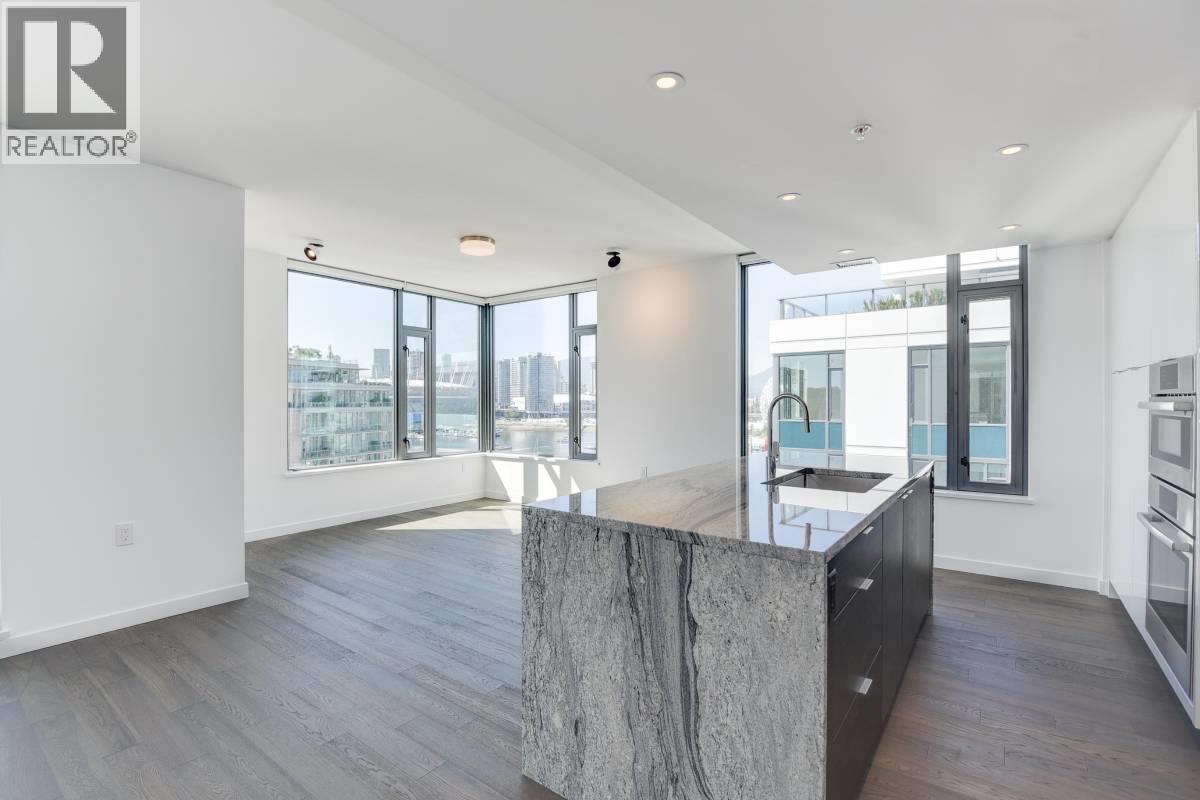 If viewing on Zillow please text/email agent directly. Luxurious air conditioned waterfront condo at The Navio- South Block available for rent. 10th floor corner unit with large balcony and beautiful water view overlooking Science World. This spacious unit features an open floor plan and a sophisticated level of finish. An elegant kitchen with contemporary high gloss white acrylic cabinetry with soft close doors, seamless quartz slab countertop, kitchen island with granite counter and wood veneer cabinetry, high-end German appliances, touch control electric cook top in black ceramic and glass. Beautiful wide plank engineered hardwood flooring throughout living spaces. (32308979)