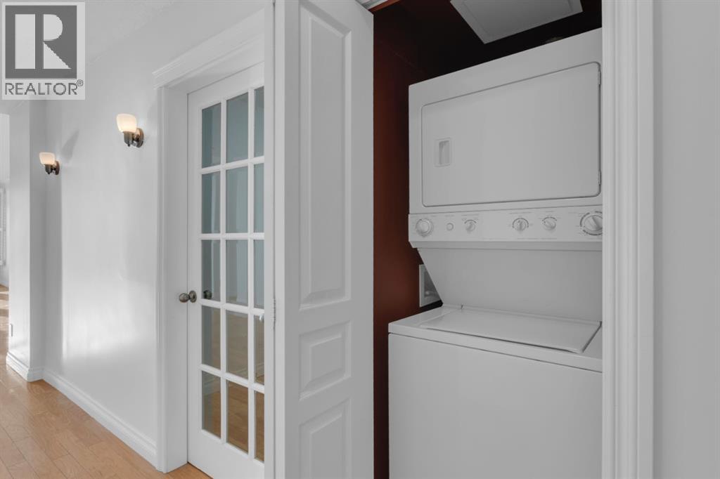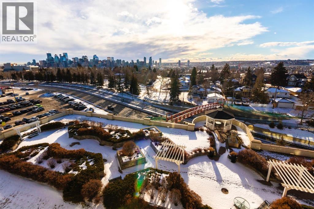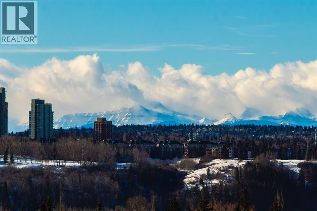 Open House Sunday March 1, 2-4 P.M. ...Spectacular panoramic mountain and downtown city views! Large bright southern windows fill this immaculate updated 1300 sq.ft. home with natural light all day. Impressive luxurious hardwood floors in large, open and very functional living and bedroom areas. Ample space for a full dining suite and a comfortable size living room for entertaining friends and family. Plus a discreetly located den for home office or extra in suite storage. Sunrise breakfast and bbq balcony, 2 spacious bedrooms, 2 full baths, in suite laundry. This freshly painted home has multiple significant updates including; hardwood, white kitchen with quartz, completely redone 5 piece en suite with glass shower, double vanity and soaker tub. New vinyl plank bathroom flooring, and brand new microwave hood fan. 2 titled underground parking stalls with nearby oversized private enclosed storage room. You will love your carefree lifestyle in The Renaissance, one of Calgary’s most desirable premier adult living condo buildings with an extensive list of amenities. Bright well equipped gym and exercise area, guest suites, movie theatre, party room, arts + crafts space, games room, library, car wash bay, heated visitors parking, an expansive common area green space terrace and walk to do grocery shopping though private, secure heated indoor access into North Hill Mall. You will feel at home with the quality of this complex from the moment you walk into the airy vaulted lobby and greeted by the friendly and helpful full time concierge. Truly unbeatable value…just move in, relax and enjoy…you’ve earned it! (31508723)