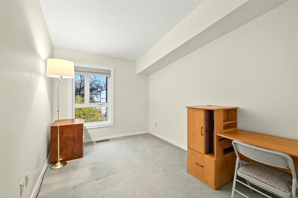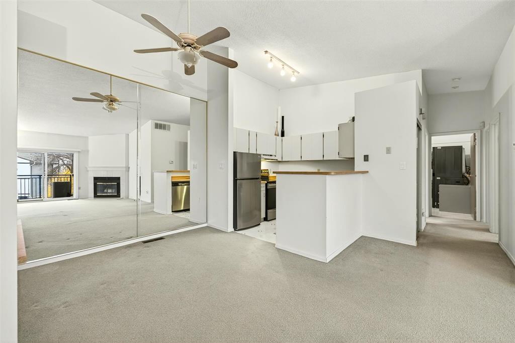 1E//Winnipeg/In 7 Day Cooling Period. Enjoy the ease and elegance of condo living in the heart of Tuxedo - a premier neighborhood where convenience and comfort meet. This bright and airy 2BR, 1Bth home is thoughtfully designed with open-concept living in mind. The kitchen seamlessly connects to the dining space and a welcoming living room featuring a cozy wood burning fireplace perfect for relaxing evenings. Step out onto your private balcony and take in the fresh air with your morning coffee or unwind after a long day. Located on the top floor, the high vaulted ceilings make the space seem even more spacious then it is. Huge Bonus - 2 Parking Spots; one covered corner spot and one outdoor spot make this truly special! Building amenities will elevate your lifestyle! Enjoy a refreshing swim in the private pool and spend a quiet afternoon in the picnic area. Steps away from Assiniboine Park, Tuxedo Golf Course, IKEA, and Outlet Collection Winnipeg, you ll find shopping, dining, recreation, and greenspace all within easy reach. Whether you re downsizing, investing, or simply looking for an effortless lifestyle in a prestigious neighborhood, this condo offers it all! (some photos virtually staged). (231831901)