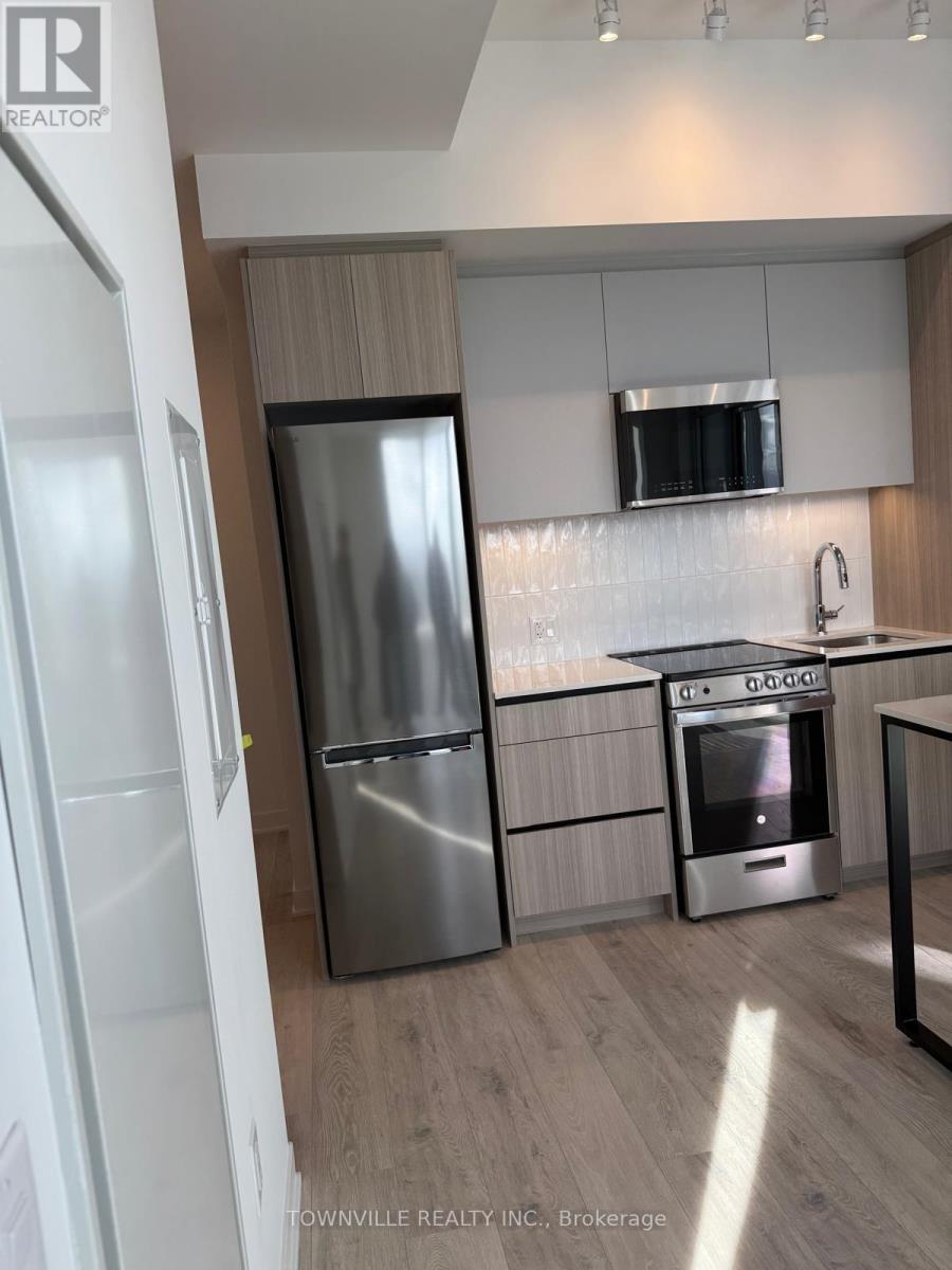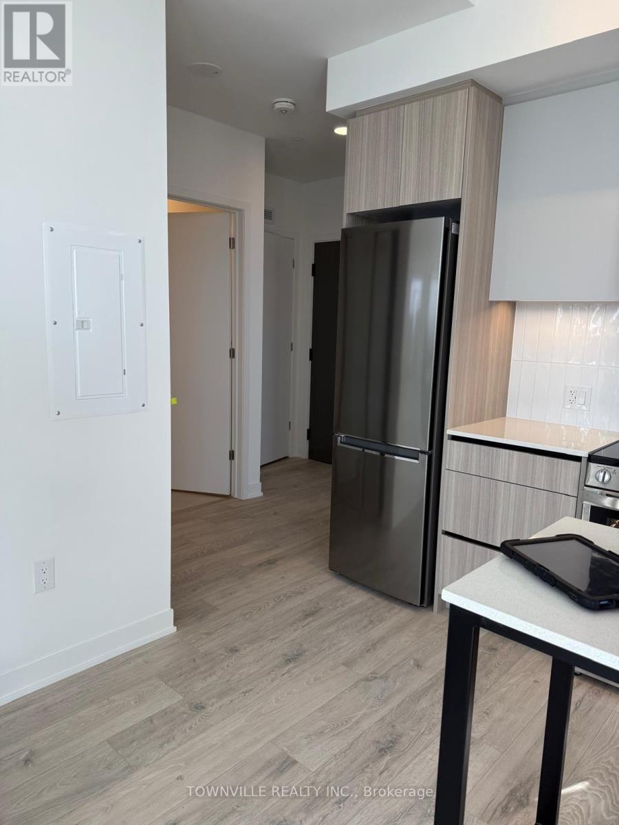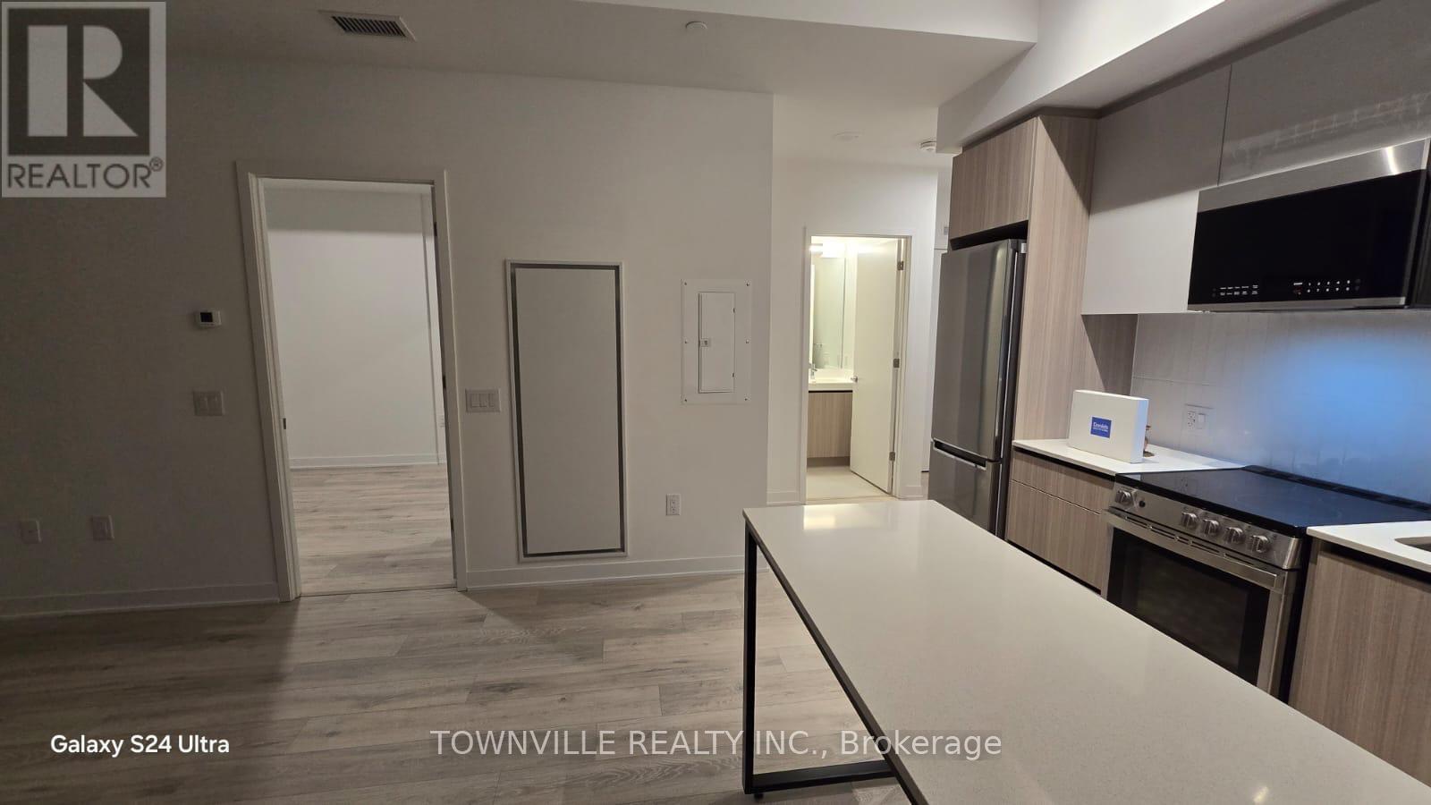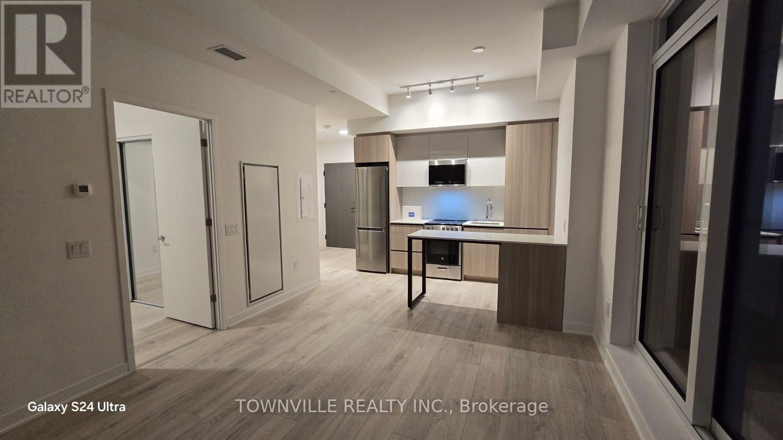 Welcome to Daniels Low Carbon Community MPV2. Offered is a brand-new two Bedrooms and one bathroom suite with 10 ft. ceiling heights in Living/Dining Room. Kitchen With Centre Island, Custom Cabinetry And Laminate Flooring throughout the apartment. It offers 663 Sq-Ft of interior living space and balcony and open Terrace of another 240 sq-ft of Exterior Terrace for a total of over 903 Sq-Ft. Includes 1 underground parking (EV rough-in). Short distance to the Mount Pleasant GO station, large retailers anchored throughout the neighborhood and local schools. Building Amenities include: gym, circular economy hub, kids' club, co-working space with WI-FI, indoor party room, outdoor eating area with BBQs, pet washing station and much more totaling over 15,000 Sq. Ft of indoor + outdoor amenities. No pets, no smoking. Tenant pays 100% of utilities. (41910104)