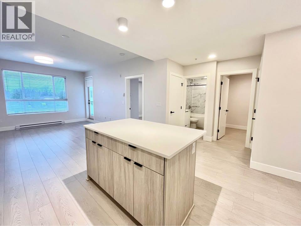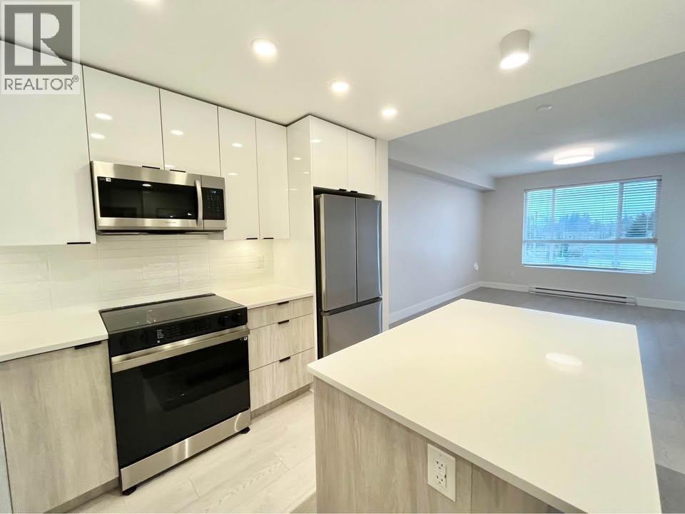 For Rent ! Available February 1st! This stunning TOP FLOOR 1 bedroom, 1 bathroom PLUS DEN condo in the 1 year old Podium building in Maple Ridge. This cozy suite features modern mix of ash/white tones with high gloss cabinetry within the beautiful kitchen. Plenty of storage and counter top space with large centre island, high end stainless steel appliances, stone countertops, and recessed lighting. Grande master bedroom with walk in closet and built in shelving, and a luxury main bathroom with mixed shower/soaker tub, tiled backsplash and large vanity. The den is a perfect size for office or space guest suite. Wrap around windows for plenty of natural light. Large private patio overlooking the quiet interior of the complex. One secured parking and storage locker included. (32309295)