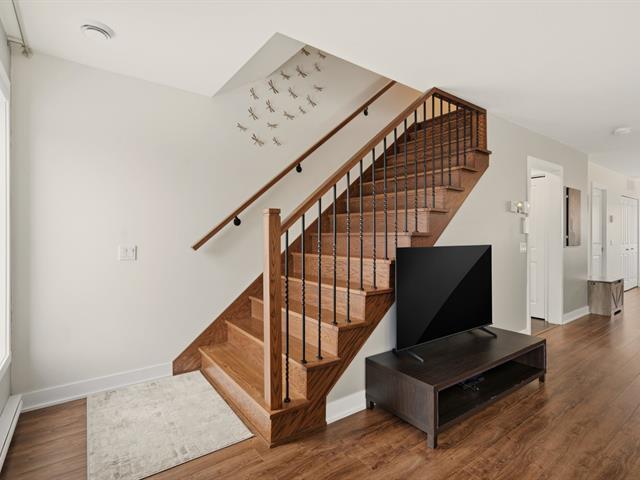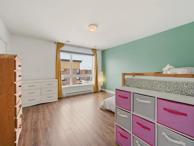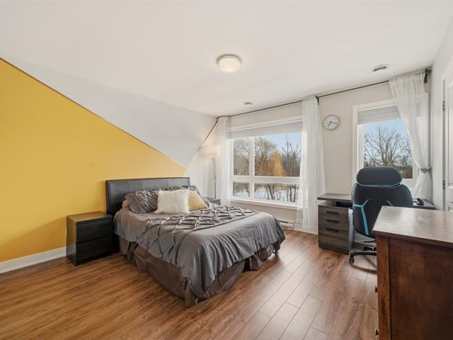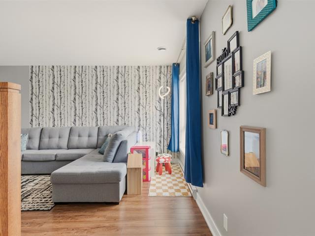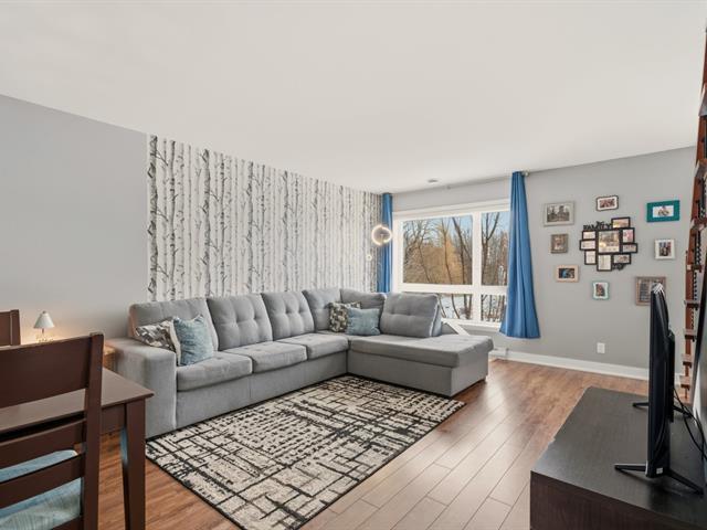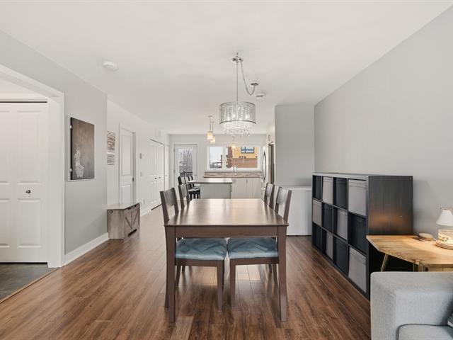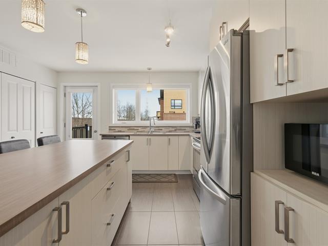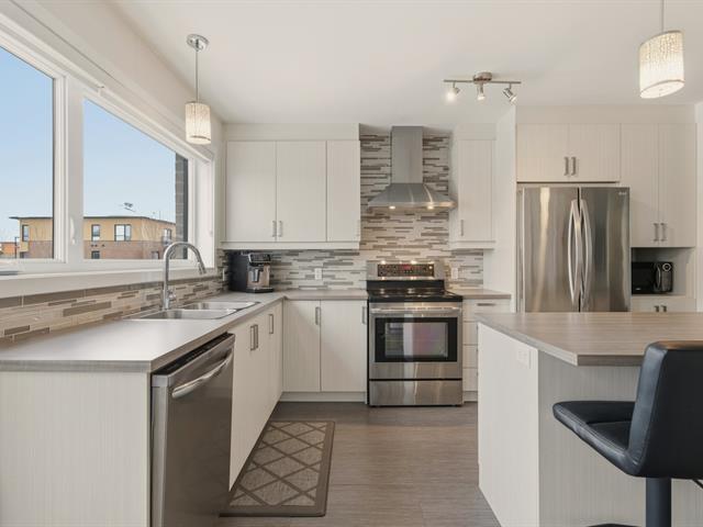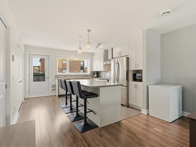 Magnifique condo sur deux niveaux, soigneusement entretenu au fil des ans. Dès l'entrée, le rez-de-chaussée propose un bel espace à concept ouvert, lumineux, réunissant le salon, la salle à manger et une cuisine contemporaine avec îlot central et coin repas. On y retrouve aussi une salle d'eau avec espace laveuse-sécheuse. À l'étage, deux chambres de belles dimensions, une salle de bain complète ainsi qu'un boudoir vous attendent. Emplacement stratégique près des écoles, du cégep, des parcs, restaurants, commerces et services. Transport en commun accessible à pied, REM à 15 minutes et accès rapide aux autoroutes. (41402499)