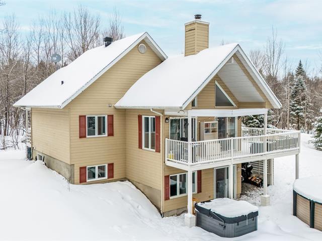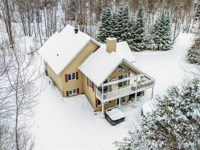 Charming property set on a spacious 1.07-acre wooded lot in Eastman, offering a peaceful environment in the heart of nature. It features 5 bedrooms and 2 bathrooms. On the main floor, the open-concept layout includes a generous living room with cathedral ceilings, a wood stove, and two patio doors. On the garden level, a large family room boasts a patio door leading to the spa and heated pool. Large deck and shed. Ideally located near the services in the village of Eastman, Highway 10 access, and Mont-Orford National Park. (57503470)