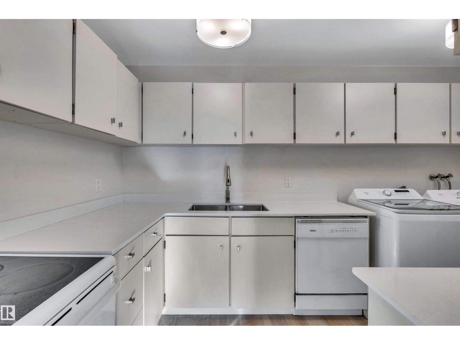Nicely renovated 808 sq. ft. 2 bedroom unit in Tudor Glen! 2nd floor location overlooking courtyard and parking lot. Modern vinyl plank flooring throughout. Quartz countertops in kitchen and bathroom. Large in-suite storage closet. 5 appliances included featuring newer washer and dryer. One energized parking stall is assigned to the unit. Great location that is walking distance to all amenities! Some photos have been virtually staged. (33701391)