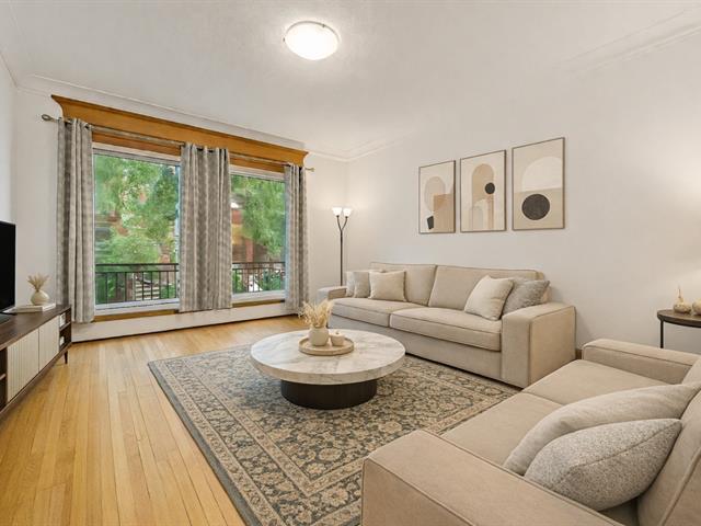 Beautiful renovated apartment located on the 3rd floor of a classic Outremont triplex, in one of the area's most sought-after locations. Bright and spacious, it features generous volumes, 8'10 ceilings, hardwood floors and original plaster mouldings. The living room opens onto a front balcony, and the renovated kitchen offers quartz countertops, ceramic backsplash and ample storage. Three bedrooms, one full bathroom, a powder room with laundry area, a garage parking space and a private storage unit complete the unit. Ideally located steps from Outremont metro, Collège Stanislas, Campus MIL and Van Horne Avenue shops. (41599222)