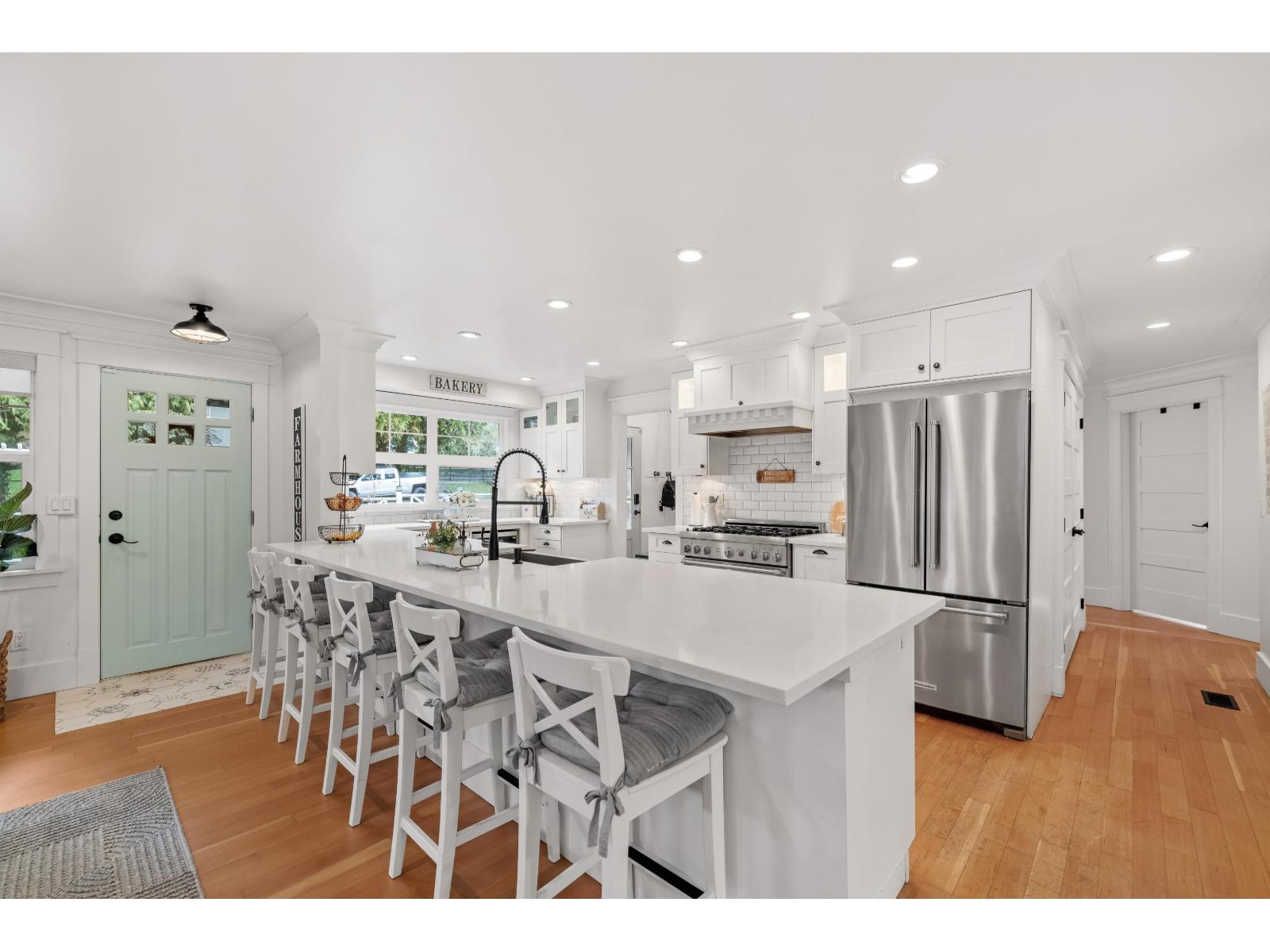 Stunning Renovated Rancher w/ Basement in Brookswood. 4 Bedrooms, 4 Bathrooms and over 2,800 sqft of modern living space. Renovations in the past 5 yrs include fully redone kitchen with high end S/S appliances, quartz counters, kitchen cabinets, blacksplash, full interior paint job, trim, new hot water tank and lighting throughout. The spacious main floor boast open concept living with ample natural light, Primary Bd w/ ensuite and 2 additional bedrooms. Downstairs is another bedroom, large family room, bathroom and additional storage. Roof, windows and furnace replaced (10-12 yrs) and Septic in 2007. Private, fully fenced South facing backyard w/ a Garden Suite! Ample parking, Convenient location in a quiet pocket of Brookswood. This one has it all, Come see it for yourself. Open Sat 12-2 (32309834)