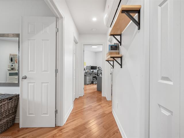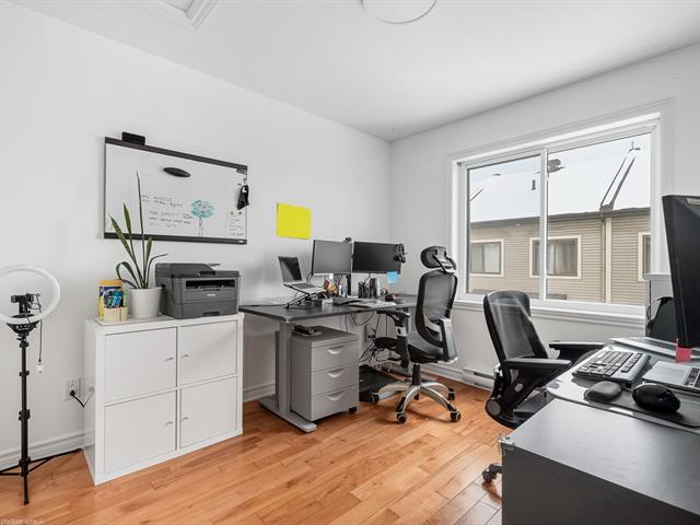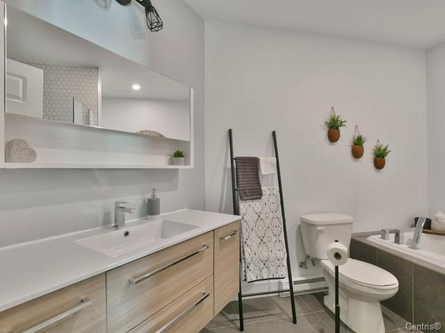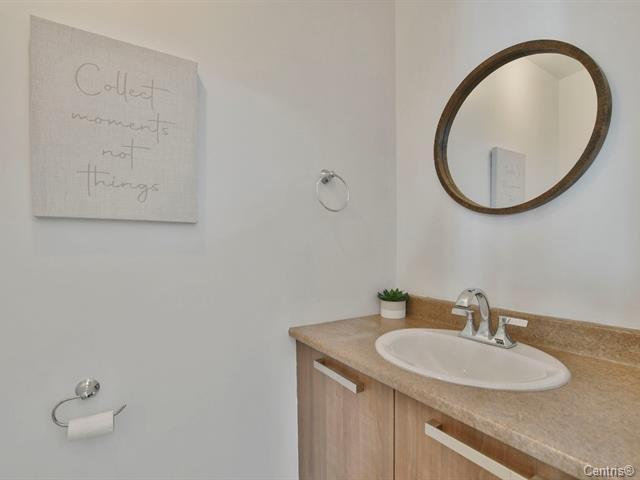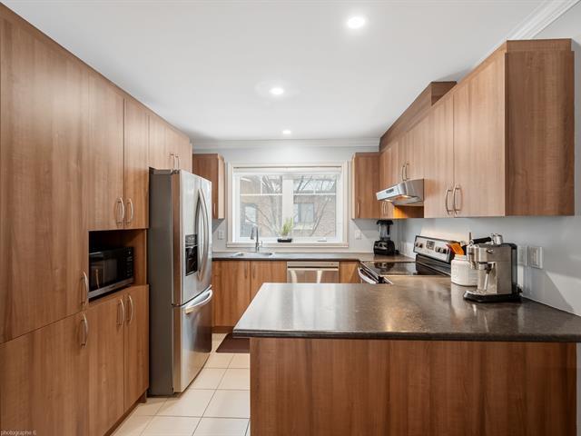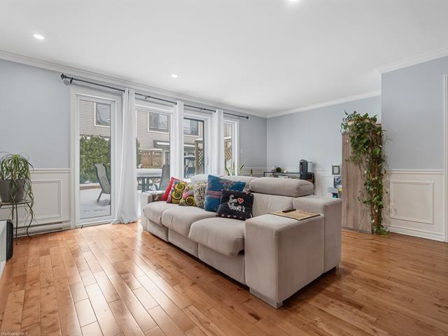 Hameau des Pins Phase 3 - Townhouse with 2 garages, 1 outdoor parking space, plus parking for visitors. Turnkey property with 3 bedrooms upstairs, full bathroom plus powder room, also features a wall-mounted A/C. The basement is fully finished and provides extra space for your needs, whether for a home office, a gym, a playroom, or simply additional relaxation space, and it also gives direct access to the garages. The landscaped backyard offers a peaceful, no maintenance outdoor area, ideal for enjoying beautiful summer days and Barbecues. Flexible occupancy. (42627613)