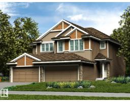 Welcome to the Retreat Duplex, a thoughtfully designed home blending style, comfort, and functionality. The main floor features 9’ ceilings, luxury vinyl plank flooring, and a double attached garage with floor drain. A welcoming foyer leads past a convenient half bath into the open-concept kitchen, great room, and dining area. The kitchen showcases quartz countertops, a central island with flush eating ledge and Silgranit undermount sink, pendant lighting, full-height tiled backsplash, chimney-style hood fan, built-in microwave, and upgraded soft-close cabinetry, plus a pantry tucked by the staircase. Large rear windows and a sliding patio door brighten the great room and nook, highlighted by an electric fireplace. Upstairs, the primary suite offers a walk-in closet and spa-like 4-piece ensuite with tub/shower and double sinks, while two additional bedrooms share a 3-piece bath. A laundry closet accommodates a stackable washer/dryer. Black fixtures and basement rough-in are included. (33702113)