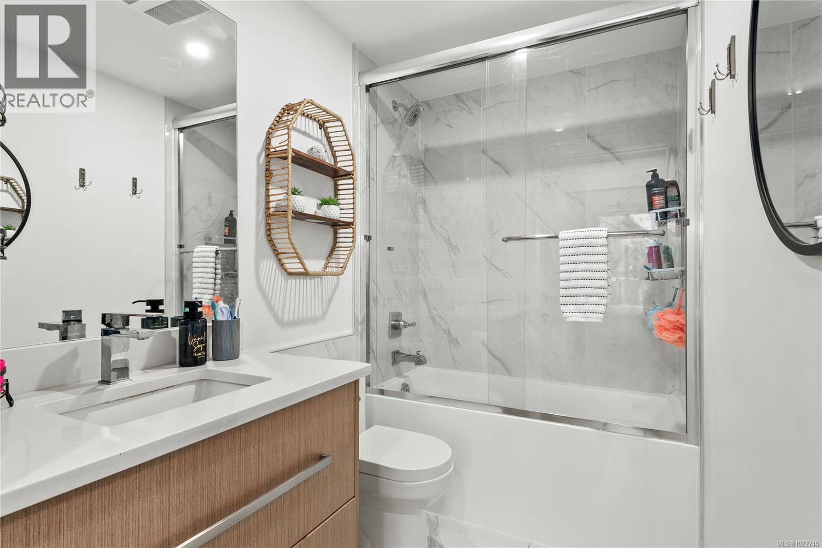 Welcome to Newport Village. This bright ground-floor corner home is filled with natural light, with large windows throughout. The open-concept kitchen features quartz countertops and overlooks the dining and living areas, creating a functional and inviting layout. Heated floors extend through both bathrooms and the laundry room, while the bathrooms are finished with quartz counters, undermount sinks, and glass shower doors. The primary bedroom offers a walk-through closet leading to a four-piece ensuite. Enjoy the convenience of entering and exiting the home through your private patio with its own gate, providing easy access to nearby walking trails—ideal for pet owners and outdoor enthusiasts. Conveniently located close to Walmart, Driftwood Mall, and the Courtenay Airpark and Millard Creek trail systems. (30255362)