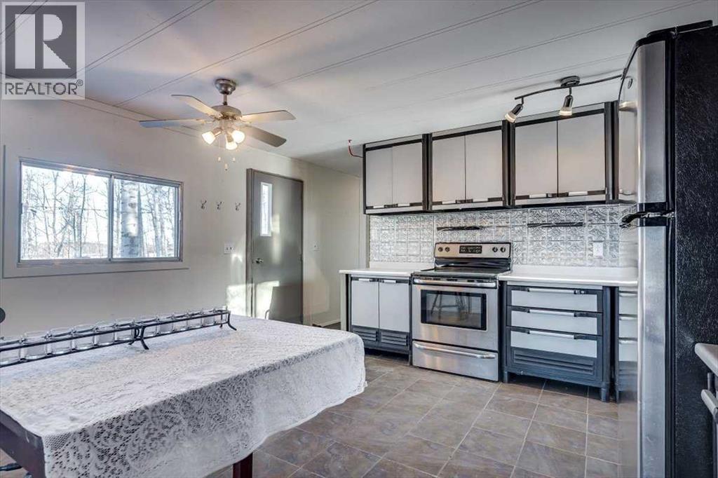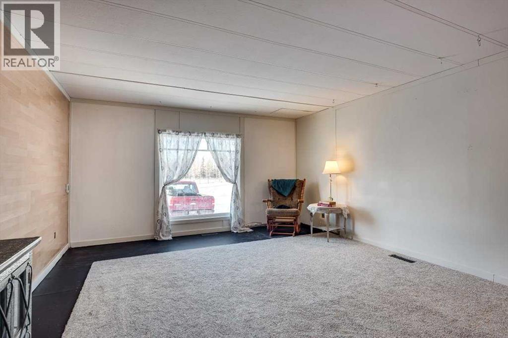 Affordable acreage living with stunning mountain views in James River, Alberta! Set on 7.66 fully fenced acres, this treed property with open pasture offers privacy, functionality, and endless opportunity while remaining conveniently located north of Sundre - just 45 minutes to Red Deer and 75 minutes to Calgary, with easy highway access.The 1974 mobile home features 2 bedrooms and a 3-piece bathroom, an open-concept kitchen and dining area, and a large living room with a west-facing window that captures beautiful mountain views and natural light. Mature trees surrounding the home provide excellent privacy, while the open pasture offers potential for livestock, extra yard space, or a home based business. Serviced by a drilled well and propane tank. New furnace installed in 2025. The detached 24x22 garage with metal roof includes an additional 20x12 workshop/storage addition at the rear—ideal for projects, tools, or equipment.Zoning allows for minor agricultural pursuits making this an excellent option for those seeking a hobby acreage. An affordable way to get onto an acreage - this property offers space, views, and opportunity in a desirable rural setting. The land is predominantly flat with multiple potential building sites and flexibility for future development. The existing mobile offers immediate use and/or the option to live in the mobile while you build your dream home or replace it with a new mobile in the future! Subject to final title registration (submitted) (31510444)