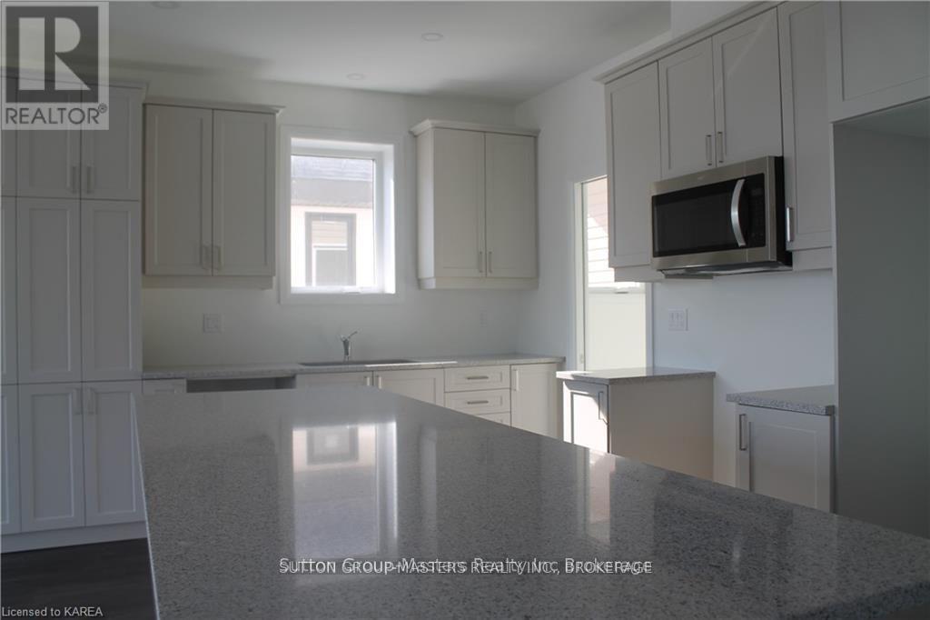Welcome to this gorgeous new listing located in Amherstview, Ontario on Pratt Drive. This soon-to-be finished, brand new single-family detached home is perfect for those looking for a modernized yet comfortable home. With a total square footage of 2,115, 4 bedrooms and 2.5 bathrooms on a 40 foot lot this home is sure to please! Upon entering the main level you will find 9'flat ceilings complimented by delicate white coloured walls, quartz kitchen countertops with soft close kitchen drawers, a main floor powder room, and a mudroom just off the kitchen with garage access. The open concept kitchen creates the perfect space for entertaining or relaxing while watching a flick with the family! On the second level is where you will find 4 generous sized bedrooms including the primary bedroom with a 4pc. ensuite bathroom, walk-in closet, and double doors leading to a covered balcony above the garage. The home features tiled flooring in all wet rooms and hardwood flooring on the main floor, hallways, living room, dining room, and kitchen, with carpet on the stairs and the second floor. Better yet, personalize your home by selecting quality kitchen and bathroom cabinets and counter tops from Vendors Interior Packages. Do not miss out on your opportunity to own this stunning home! (41912361)