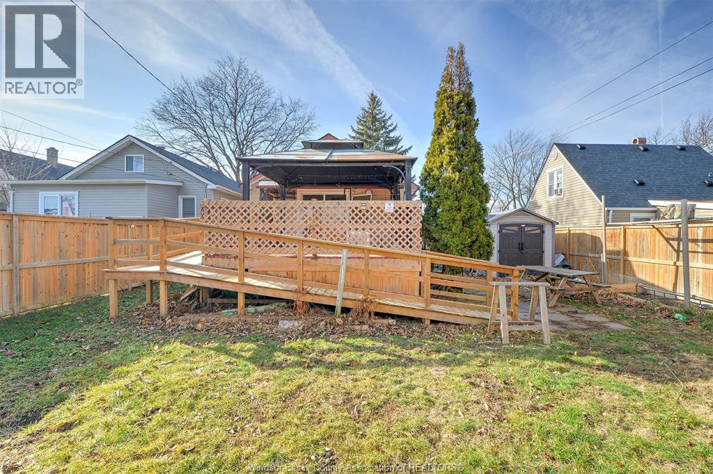 SOLID DETACHED HOME IN GREAT LOCATION FIRST BLOCK OFF TECUMSEH RD EAST. FULL BASEMENT, FINISHED SIDE DRIVEWAY, PRIVACY FENCED YARD, VINYL SHED, LARGE COVERED PORCH FRONT AND COVERED DECK IN BACK, SEPARATE SIDE ENTRANCE TO LOWER LEVEL, STAIRS TO ATTIC FOR FUTURE DEVELOPMENT POTENTIAL, LARGE MUD ROOM OFF KITCHEN WITH PATIO DOOR TO REAR COVERED PORCH, ACCESSABLE WHEELCHAIR RAMP TO REAR DECK. HOME NEEDS COSMETIC UPDATING. 6 APPLIANCES INCLUDED IN AS IS CONDITION. (55233596)