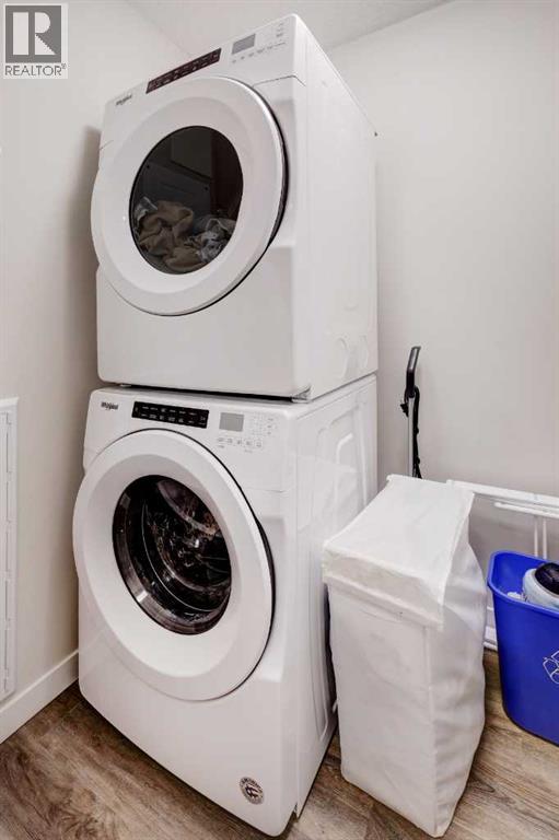 Fantastic 2 bedrooms, 2 bathrooms corner top floor unit ideally located just one block from the Fish Creek LRT station. This bright and spacious 785 sqft home is steps from neighbourhood parks and local amenities, with quick access to dining, shopping, and everyday conveniences—perfect for professionals or empty-nesters.The thoughtfully designed open-concept layout features quartz countertops and tile backsplashes in both the kitchen and bathrooms, stainless steel appliances, and a separate laundry room with stacked washer and dryer. Large rooms, LVP flooring throughout, and abundant storage enhance everyday comfort.Enjoy the private balcony complete with a BBQ gas line and expansive north and west views, including glimpses of downtown and beautiful sunset skies. With no units above, this top-floor residence provides exceptional quiet without the penthouse price. The unit also includes a titled underground parking stall and a separate titled storage locker for added value and convenience. (31510532)