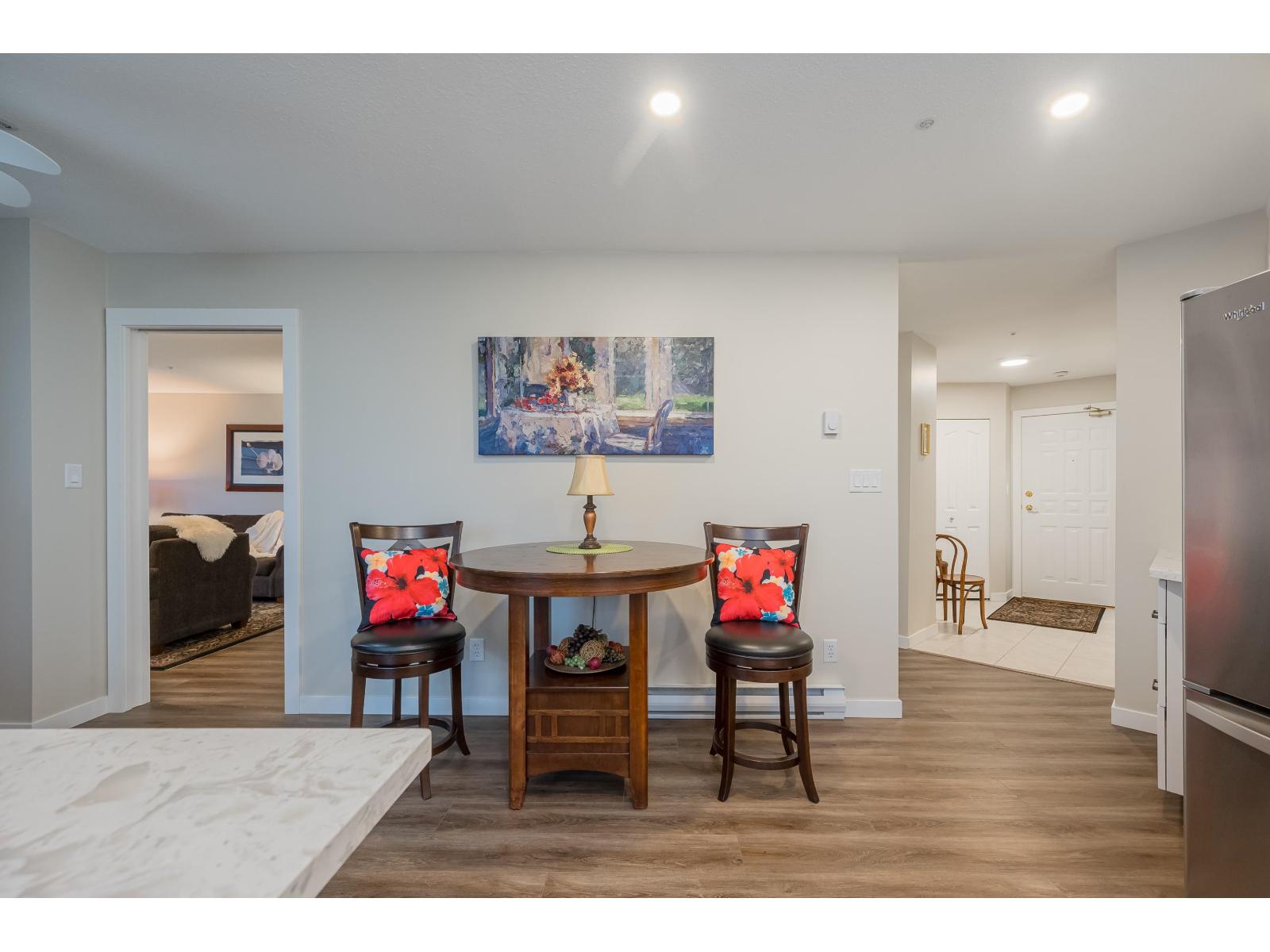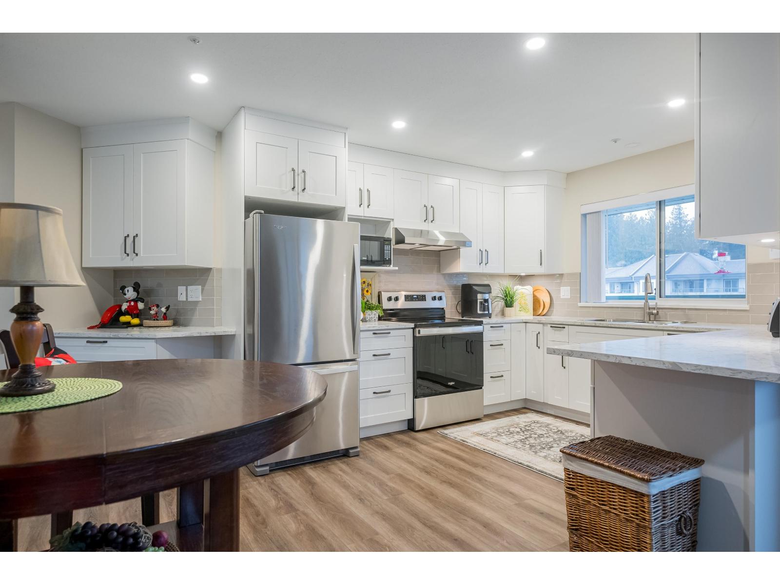 Move in Ready. Bright & Quiet. Top Floor, Corner Unit. 1449 sq ft surrounded by SE facing windows. Renovations include 2 new AC/Heat Pump Units ($15,000). Totally new kitchen with lots of cupboards and drawers. New counter tops, sink, taps, lights, appliances, paint, baseboards, window blinds, flooring, plug and light covers. Laundry room with storage space. Ample closets. Large balcony off kitchen. Storage locker in parkade. 1 Parking spot (possible to rent another). Amenities include Indoor Pool, Hot tub, Sauna, Exercise Room, Guest Suites, Libraries and Community Room. Walking distance to Mill Lake, Shopping and Transit. Age 55+. No Pets (32310082)