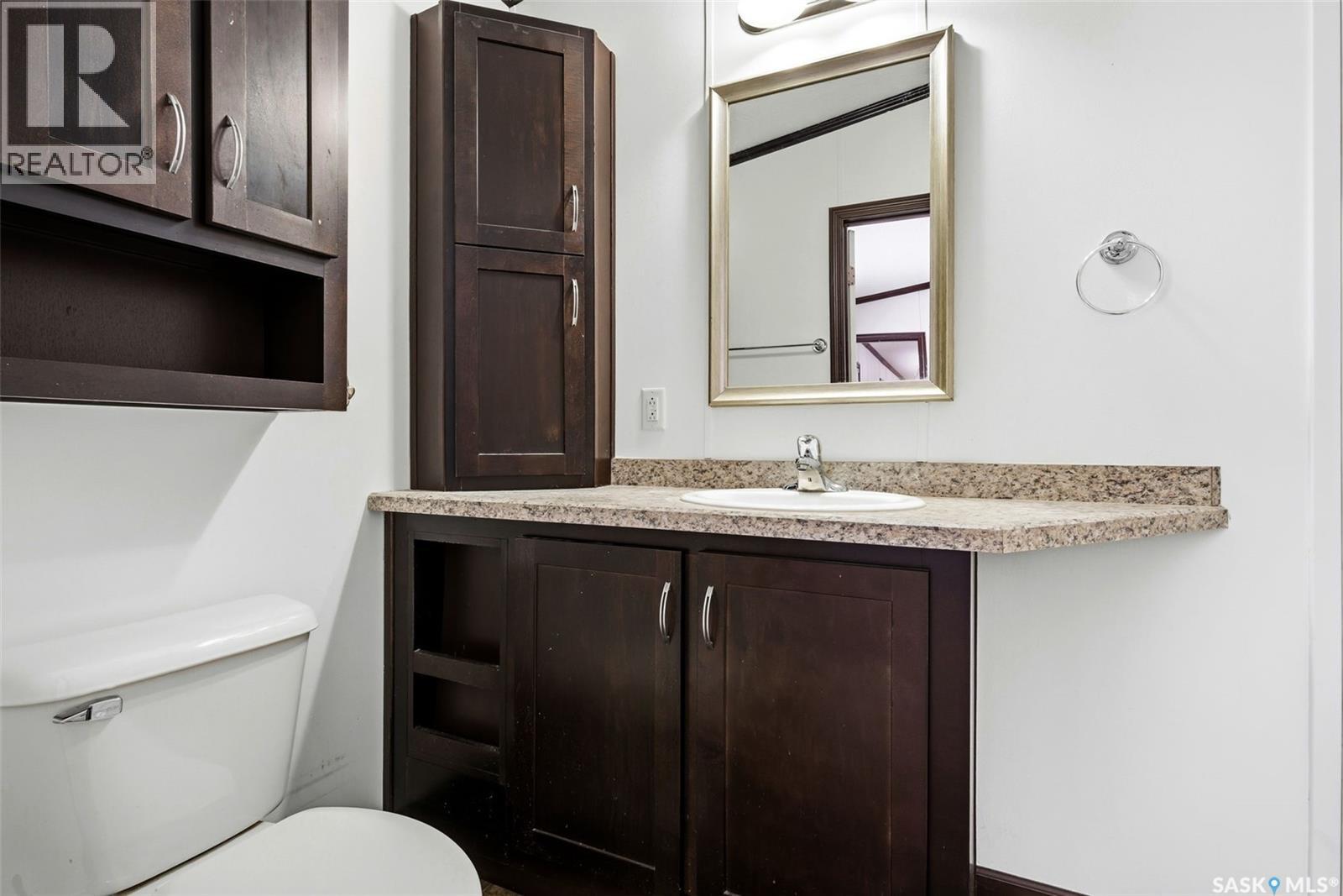 Welcome to Walters Court Mobile Home Park in Pilot Butte! Enjoy the convenience of quick access to Regina while living in a friendly community. This well-maintained 1,190 sq ft home offers excellent value with a functional 3-bedroom, 2-bathroom floor plan and vaulted ceilings that enhance the sense of space. The kitchen is thoughtfully designed with granite countertops, upgraded cabinetry, a corner pantry, and a full appliance package. The electrical panel was updated in 2023, providing added peace of mind. Outside, the fully fenced yard is perfect for relaxing or entertaining, featuring a large deck, two storage sheds, raised garden beds, and parking for up to three vehicles. Inclusions: central air conditioning, alarm system, fridge, stove, built-in oven, dishwasher, washer, and dryer. The current lot pad fee is $675/month and includes taxes, water, sewer, recycling, garbage pickup, and snow removal. (29259773)