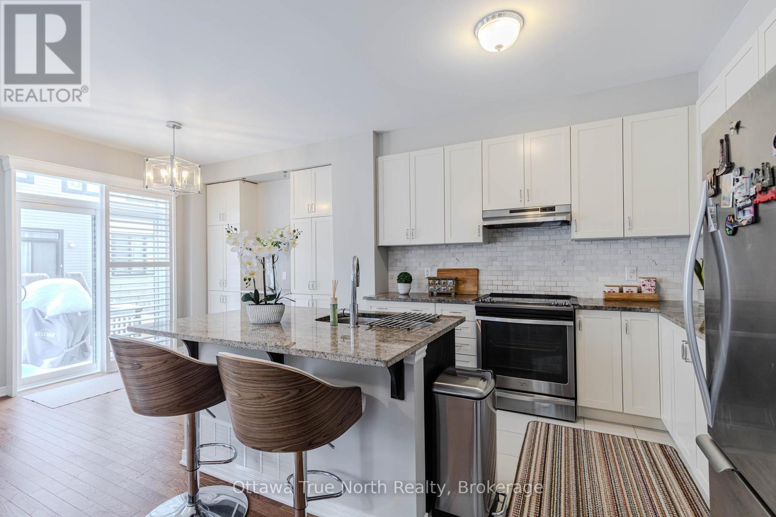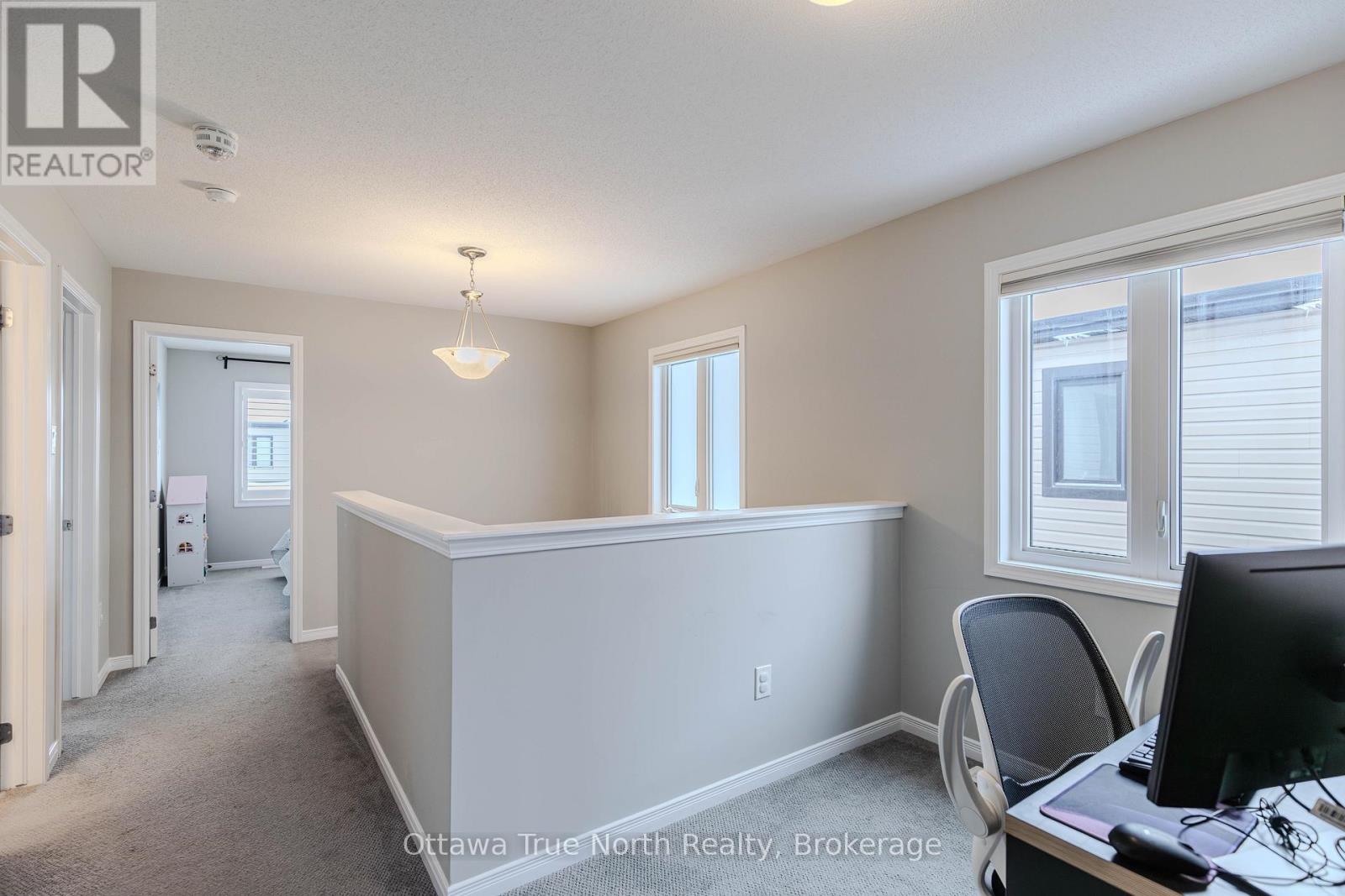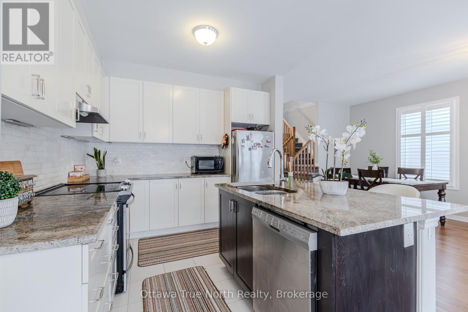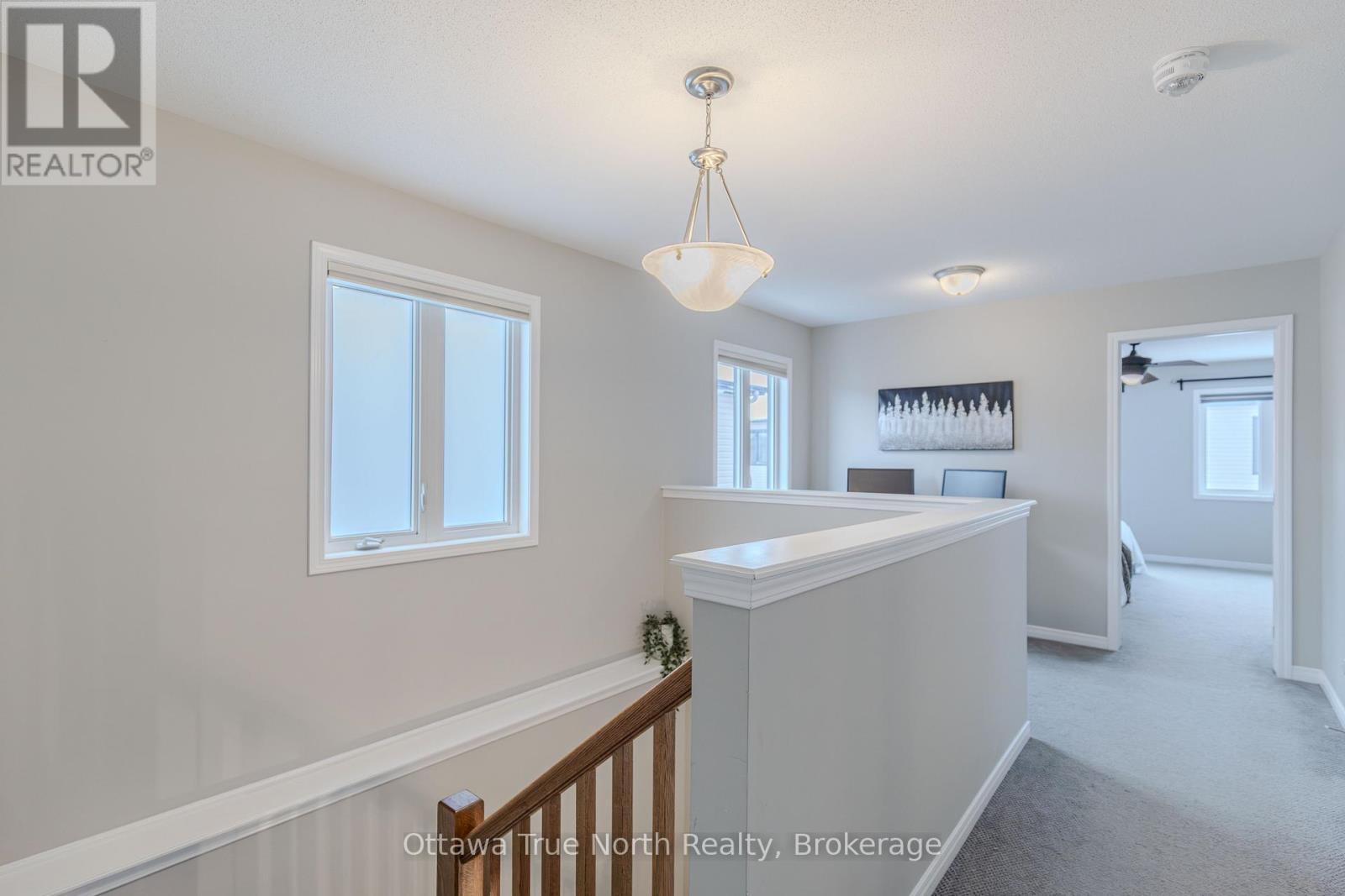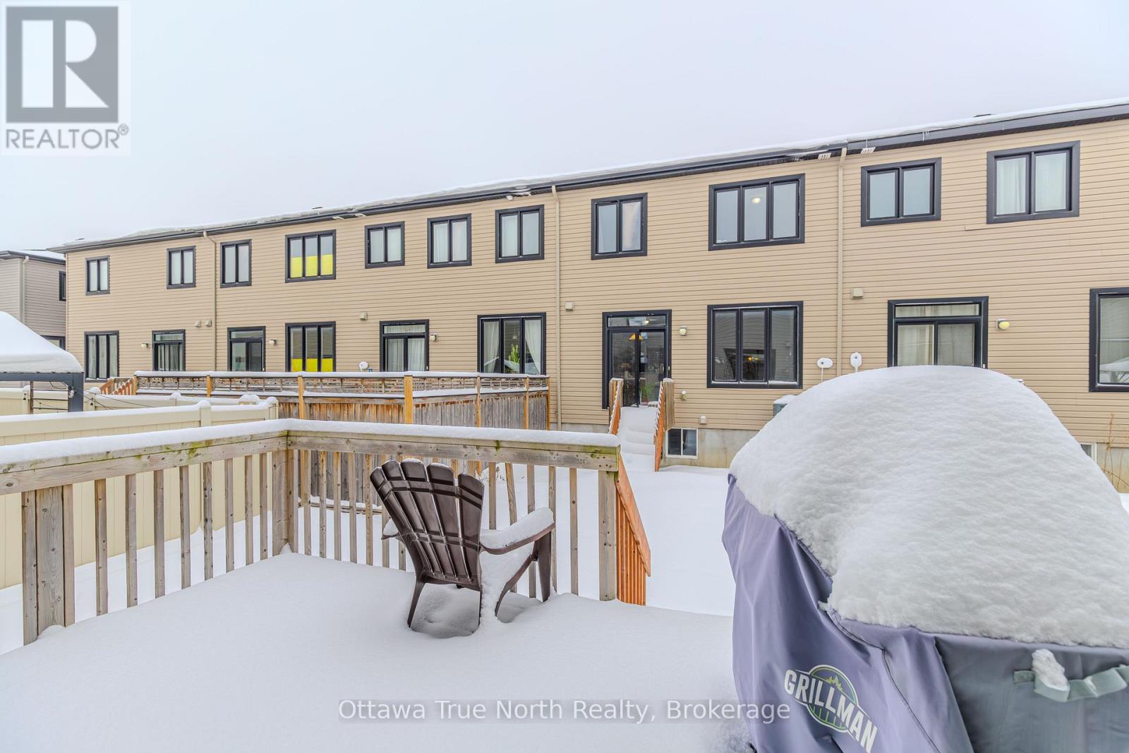 Spacious freehold END-unit townhouse offering approx. 1,900 sq ft plus a fully finished basement, ideally situated on a quiet street just steps from Monahan Park, shopping, trails, schools, and more.The main floor features 9-foot ceilings, elegant hardwood flooring, and a fully upgraded builder kitchen. Abundant natural light fills the home through stylish California shutters. Step outside to the back deck, perfect for summer BBQs and outdoor enjoyment.Upstairs offers three generously sized bedrooms plus a versatile loft, along with a full 5-piece ensuite and walk-in closet.The fully finished lower level includes a cozy gas fireplace, a dedicated TV/entertainment area, ample storage, and a full 4-piece bathroom, providing exceptional additional living space. (41913398)