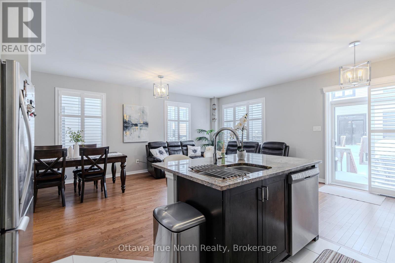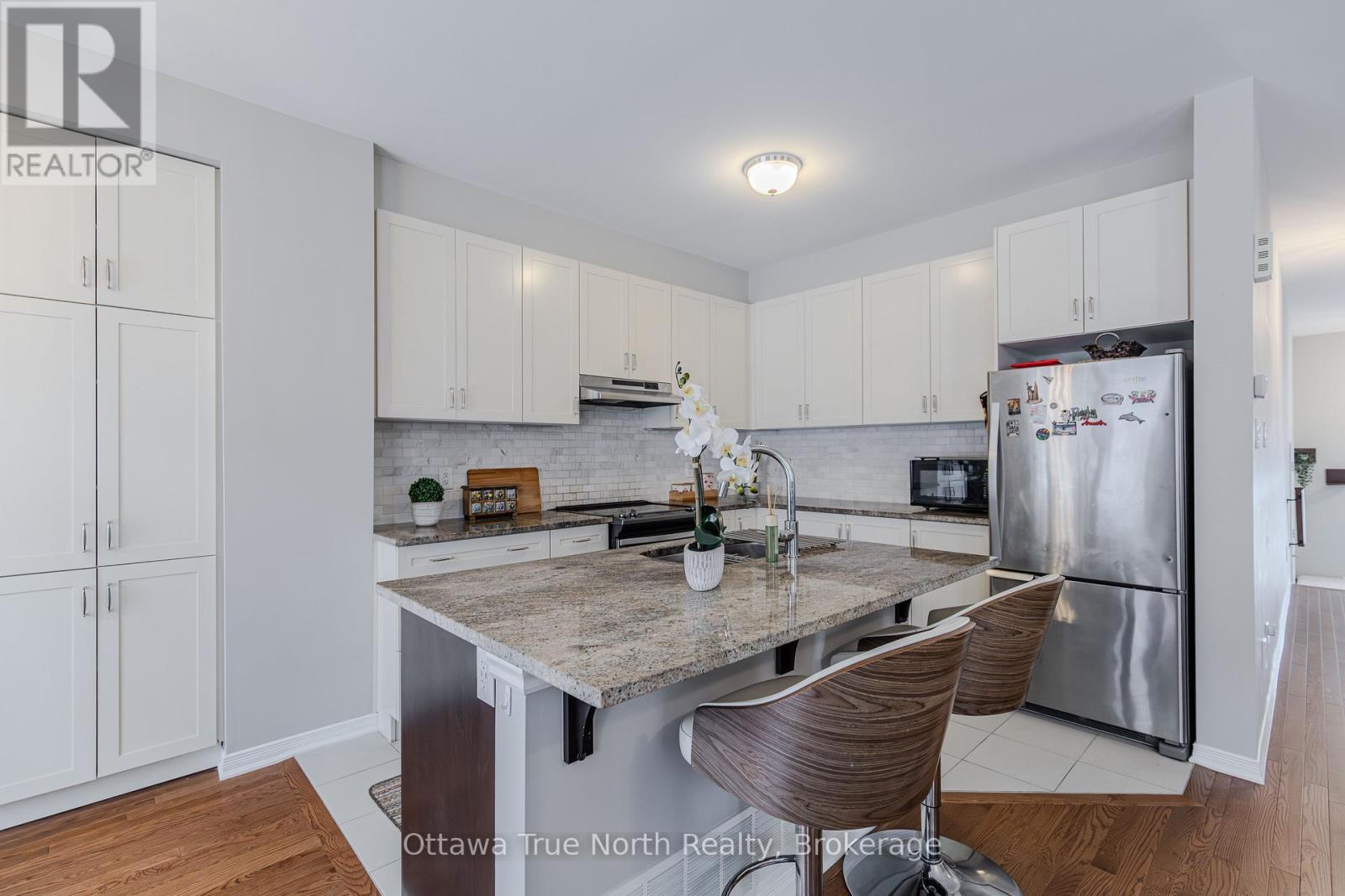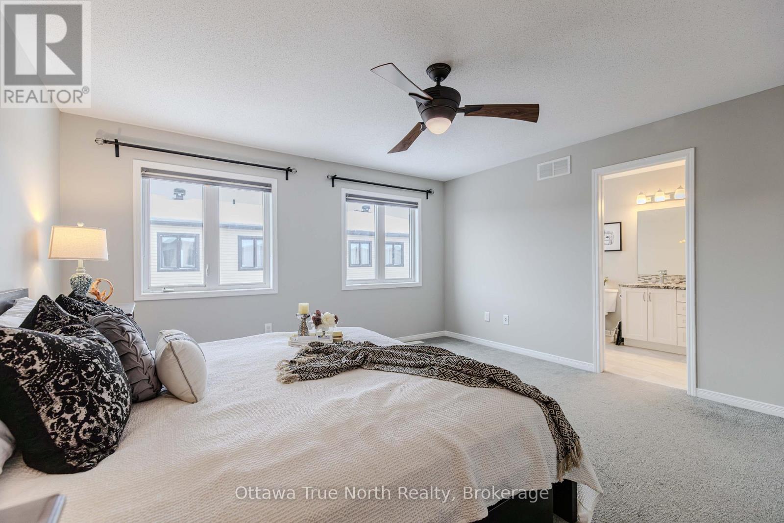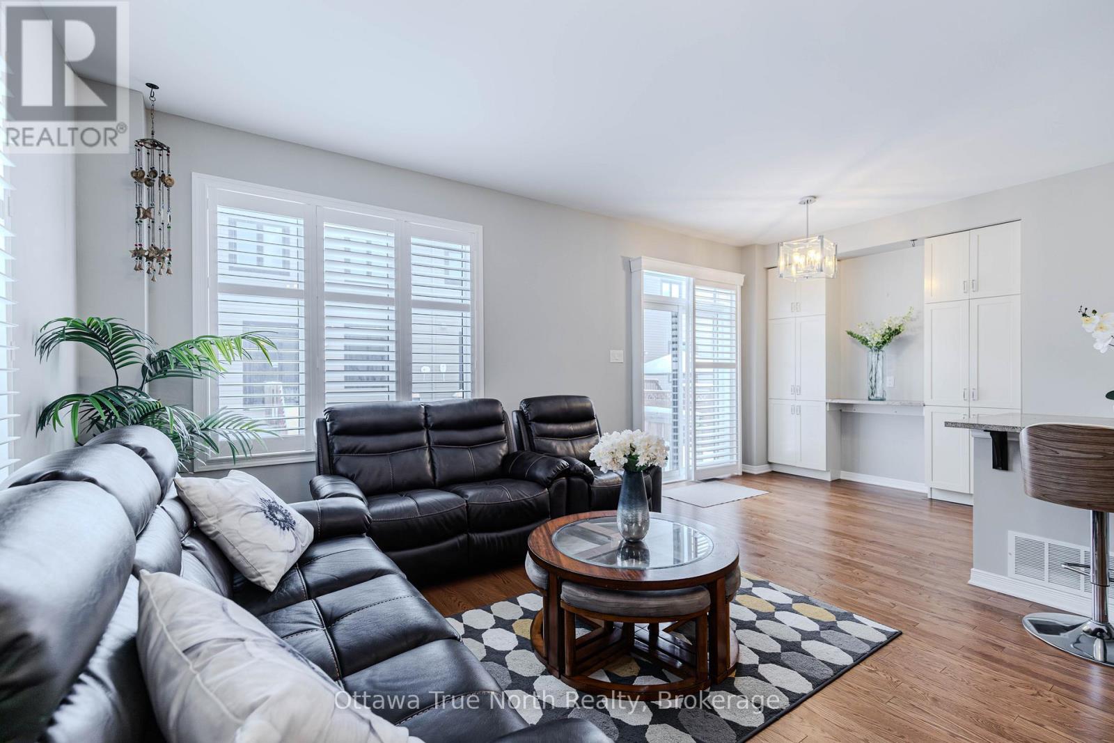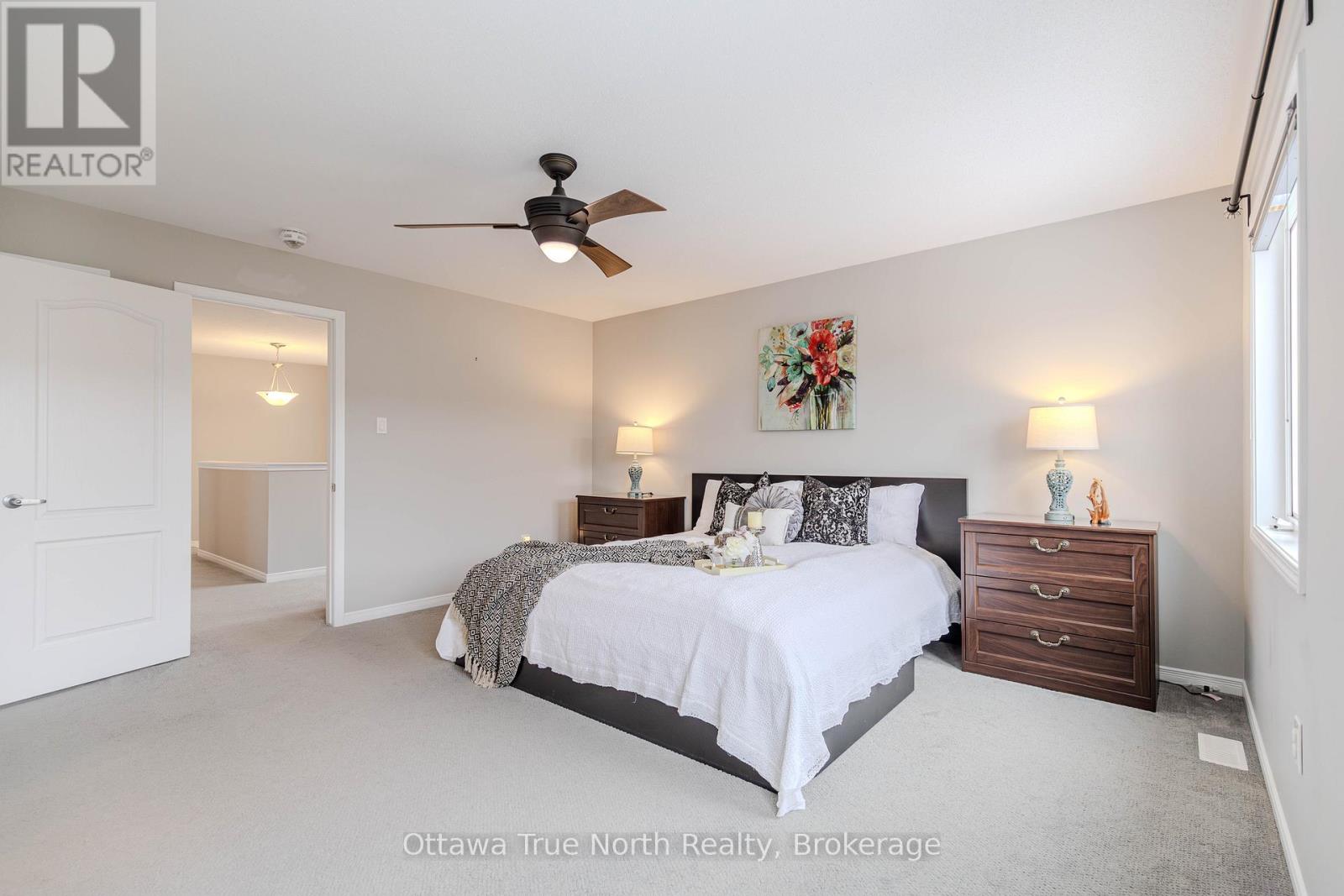 Spacious freehold END-unit townhouse offering approx. 1,900 sq ft plus a fully finished basement, ideally situated on a quiet street just steps from Monahan Park, shopping, trails, schools, and more.The main floor features 9-foot ceilings, elegant hardwood flooring, and a fully upgraded builder kitchen. Abundant natural light fills the home through stylish California shutters. Step outside to the back deck, perfect for summer BBQs and outdoor enjoyment.Upstairs offers three generously sized bedrooms plus a versatile loft, along with a full 5-piece ensuite and walk-in closet.The fully finished lower level includes a cozy gas fireplace, a dedicated TV/entertainment area, ample storage, and a full 4-piece bathroom, providing exceptional additional living space. (41913398)