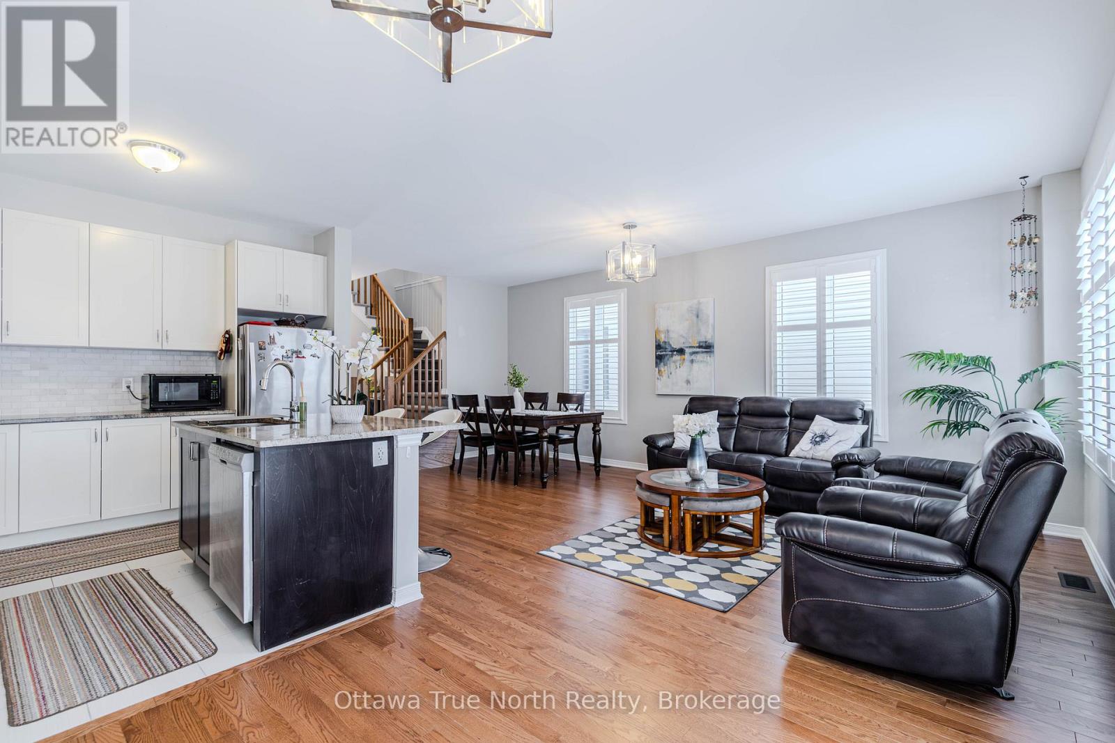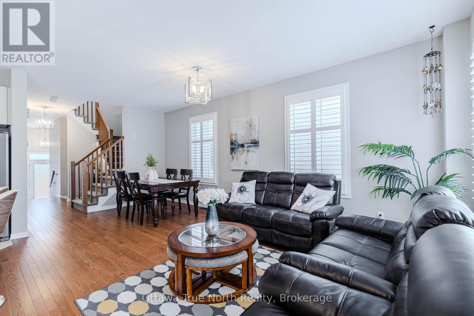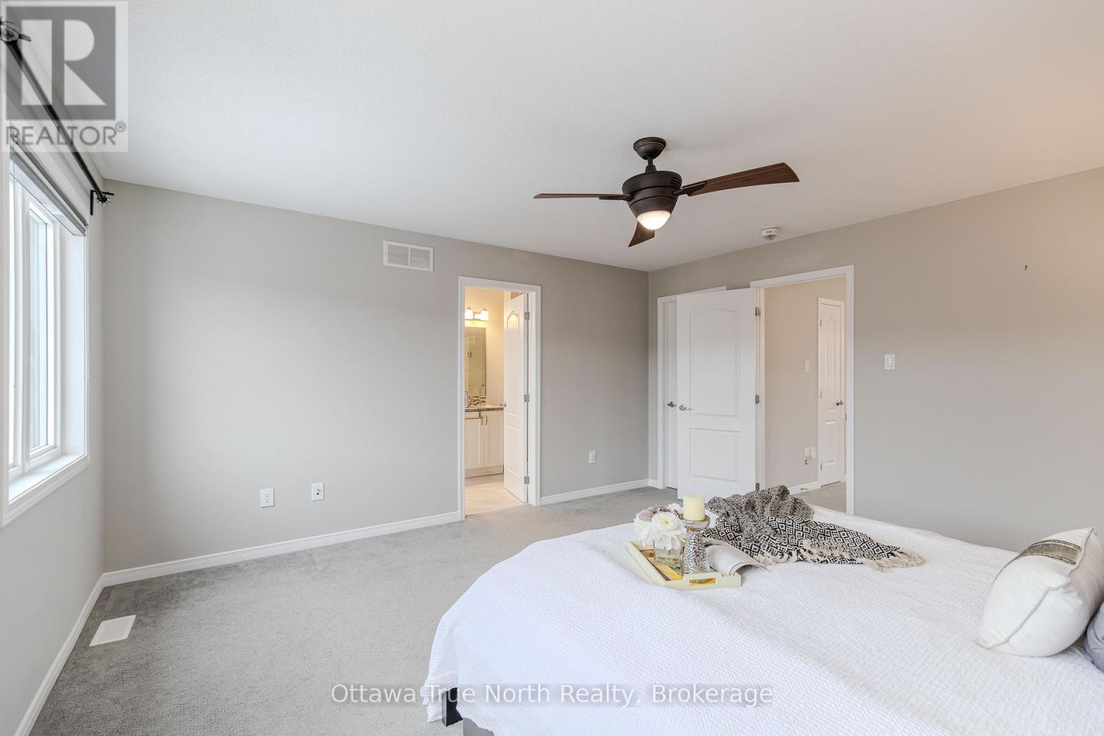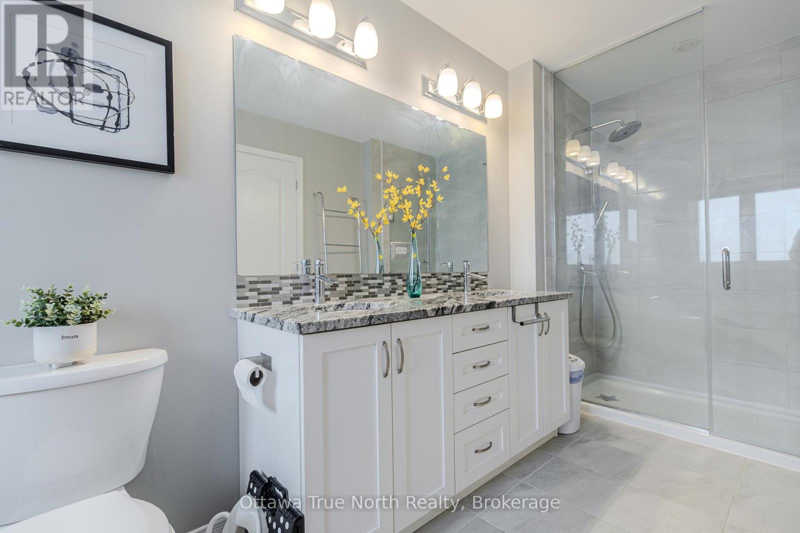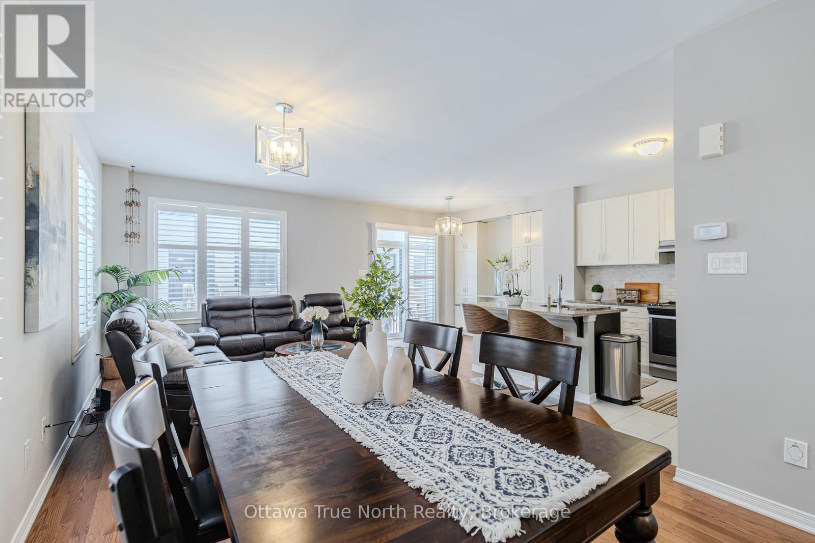 Spacious freehold END-unit townhouse offering approx. 1,900 sq ft plus a fully finished basement, ideally situated on a quiet street just steps from Monahan Park, shopping, trails, schools, and more.The main floor features 9-foot ceilings, elegant hardwood flooring, and a fully upgraded builder kitchen. Abundant natural light fills the home through stylish California shutters. Step outside to the back deck, perfect for summer BBQs and outdoor enjoyment.Upstairs offers three generously sized bedrooms plus a versatile loft, along with a full 5-piece ensuite and walk-in closet.The fully finished lower level includes a cozy gas fireplace, a dedicated TV/entertainment area, ample storage, and a full 4-piece bathroom, providing exceptional additional living space. (41913398)