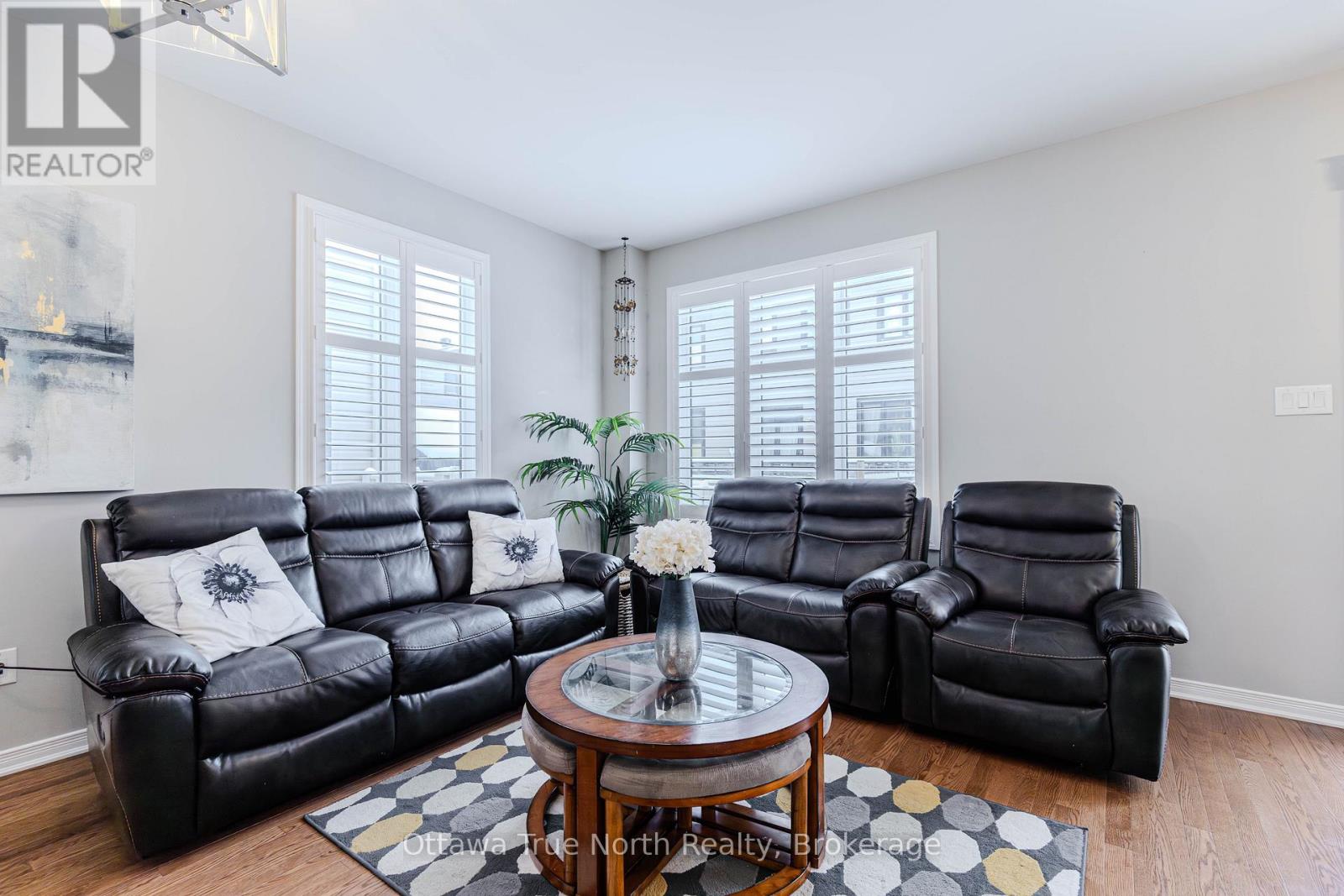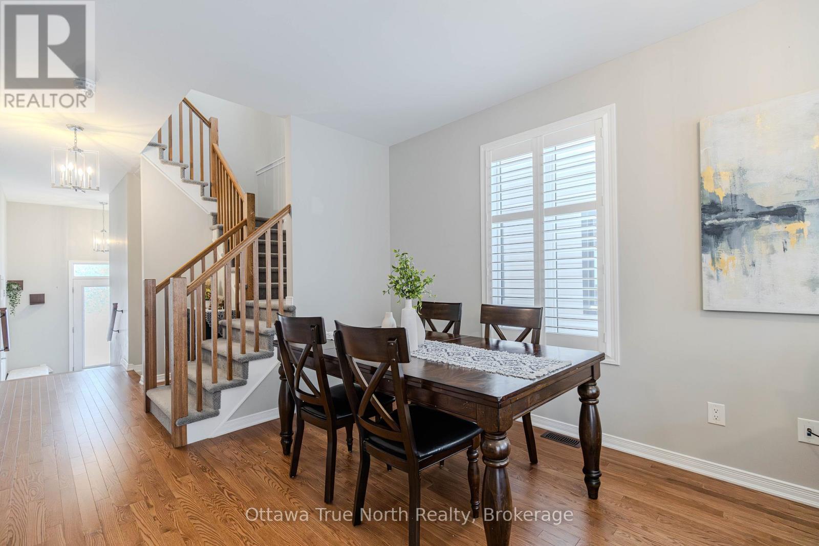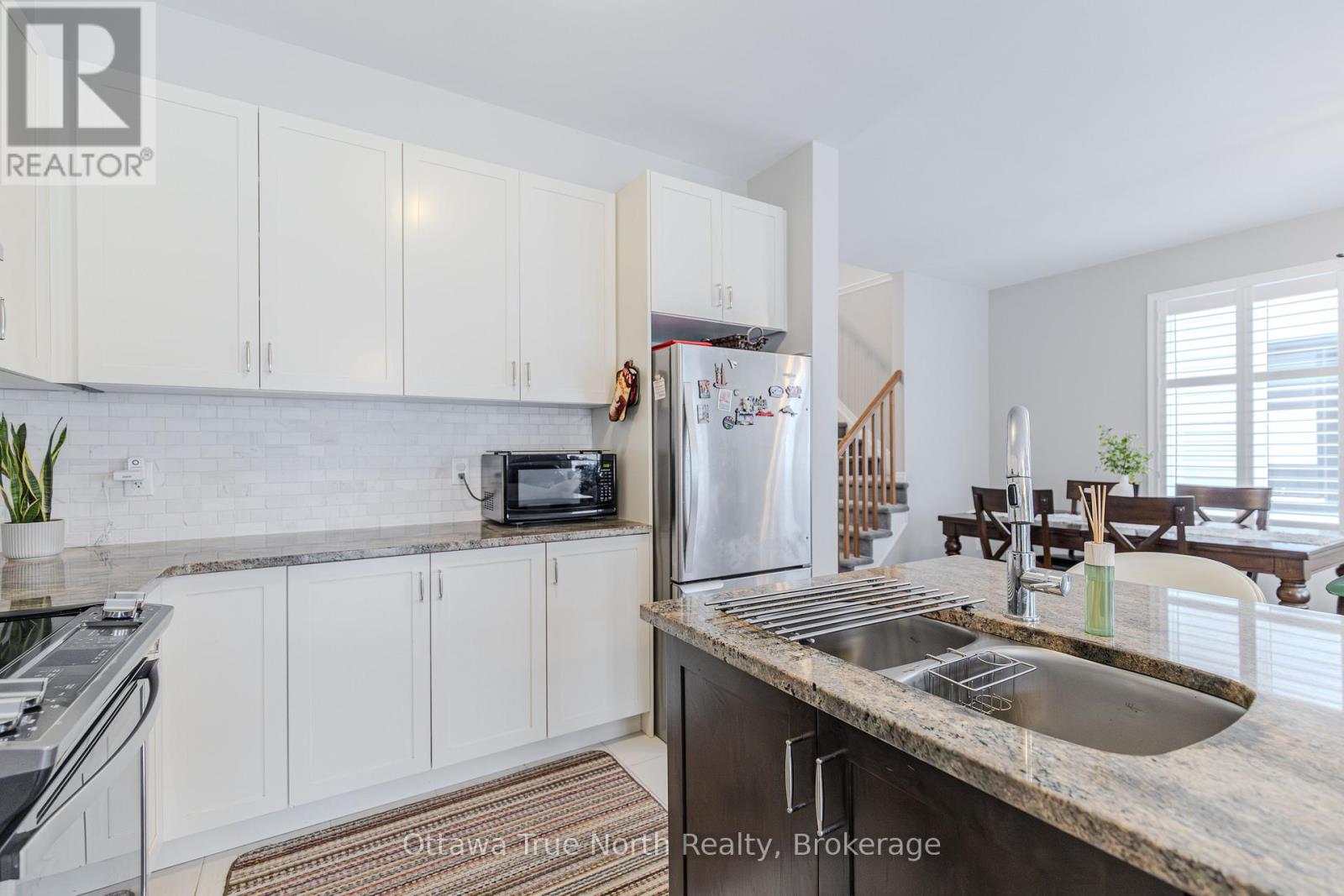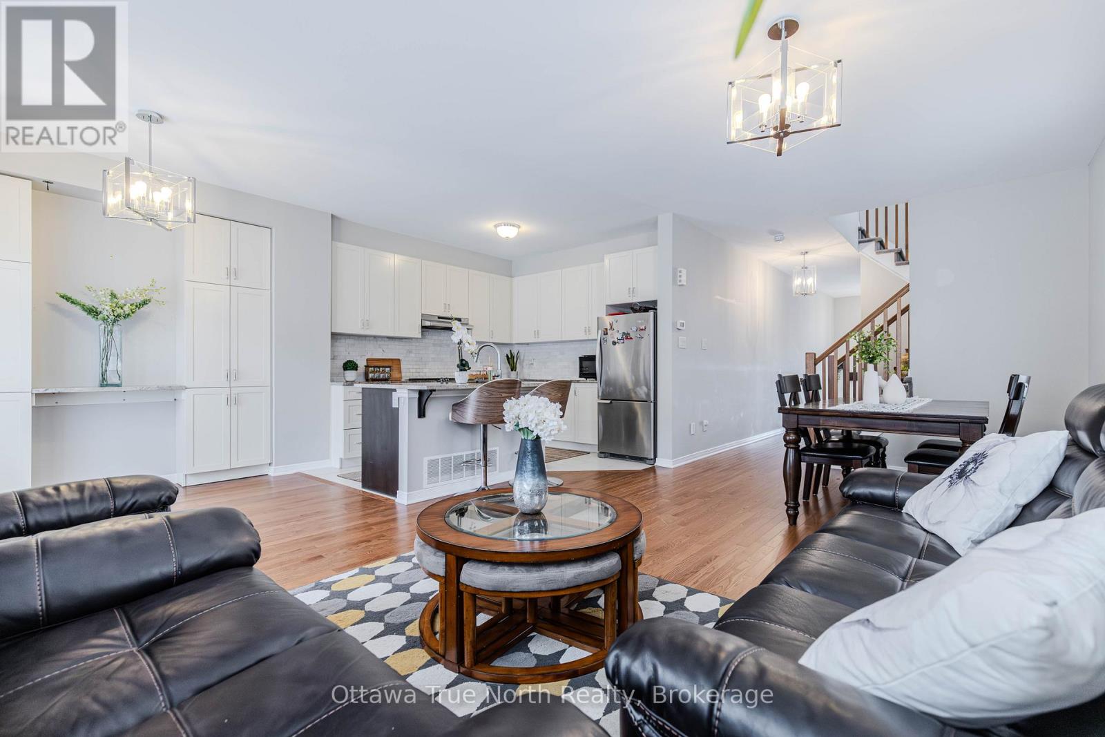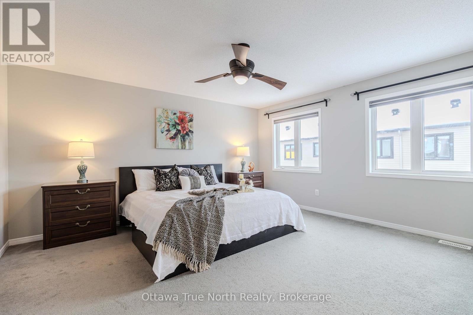 Spacious freehold END-unit townhouse offering approx. 1,900 sq ft plus a fully finished basement, ideally situated on a quiet street just steps from Monahan Park, shopping, trails, schools, and more.The main floor features 9-foot ceilings, elegant hardwood flooring, and a fully upgraded builder kitchen. Abundant natural light fills the home through stylish California shutters. Step outside to the back deck, perfect for summer BBQs and outdoor enjoyment.Upstairs offers three generously sized bedrooms plus a versatile loft, along with a full 5-piece ensuite and walk-in closet.The fully finished lower level includes a cozy gas fireplace, a dedicated TV/entertainment area, ample storage, and a full 4-piece bathroom, providing exceptional additional living space. (41913398)