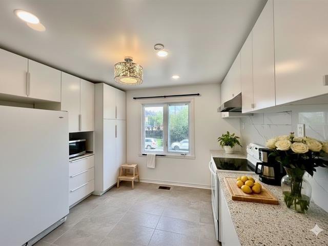 Beautiful home in the highly sought-after area of Pointe-Claire. This property features three generously sized bedrooms, plus a fourth bedroom in the finished basement. Both the kitchen and bathroom were renovated in 2023. The main floor is bright and spacious, with newly installed hardwood floors throughout, and offers an open-concept living and dining area along with a convenient powder room near the entrance. Its prime location provides easy walking access to Fairview Mall and the Fairview REM train station. (38697741)