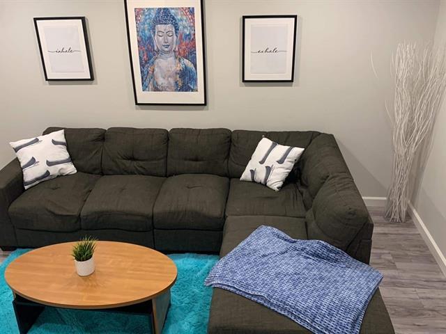 Jolie maison à étages en rangée de 3 chambres à coucher. Sous-sol a été fini en 2021 avec une chambre à coucher et salle familiale. Rez-de-chaussée à aire ouverte. Armoires de cuisine en mélamine. Petite cour arrière privée avec patio de bois qui a été fait en 2021. Thermopompe murale 15,000BTU 2021. Revêtement de la toiture a été refait en 2025. Stationnement pour 2 voitures. Une visite est fortement recommandée. (45563850)