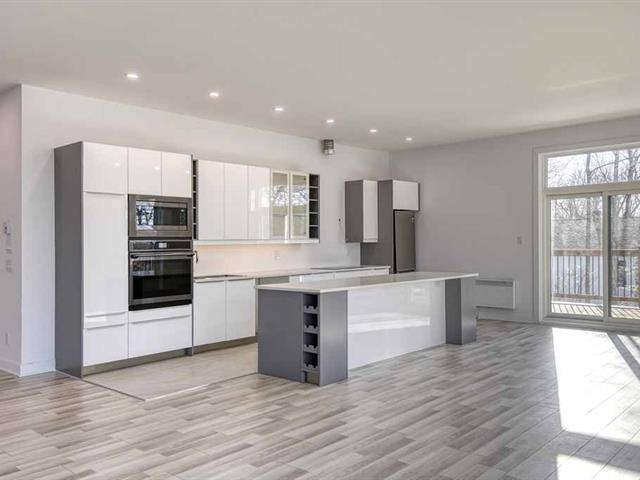 Elegance and exclusivity define this magnificent property nestled in a preserved natural setting. It offers bright living spaces with flawless finishes, a high-end kitchen, and premium materials. The spacious four bedrooms and two refined bathrooms provide absolute comfort. Just steps from the lake, this home offers total privacy and a serene environment, perfect for relaxation. Its double garage and expansive wooded lot add to its prestige. A rare opportunity for an unparalleled lifestyle, close to services and amenities. GST/QST must be added to the asking price (53997571)