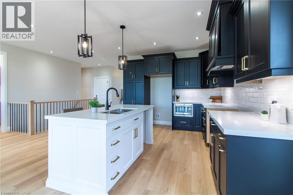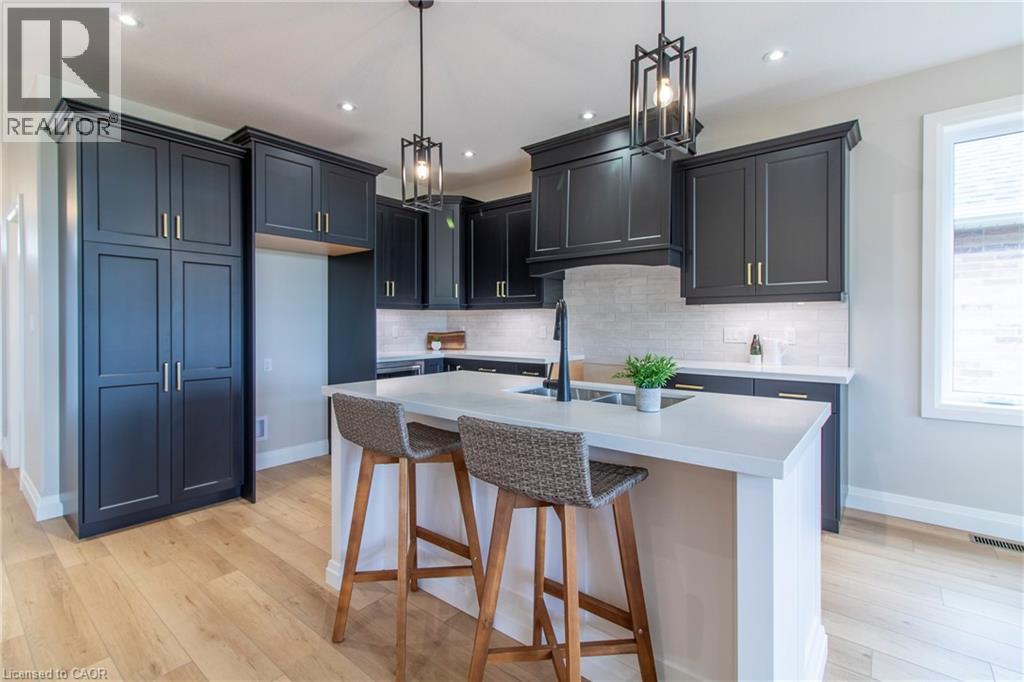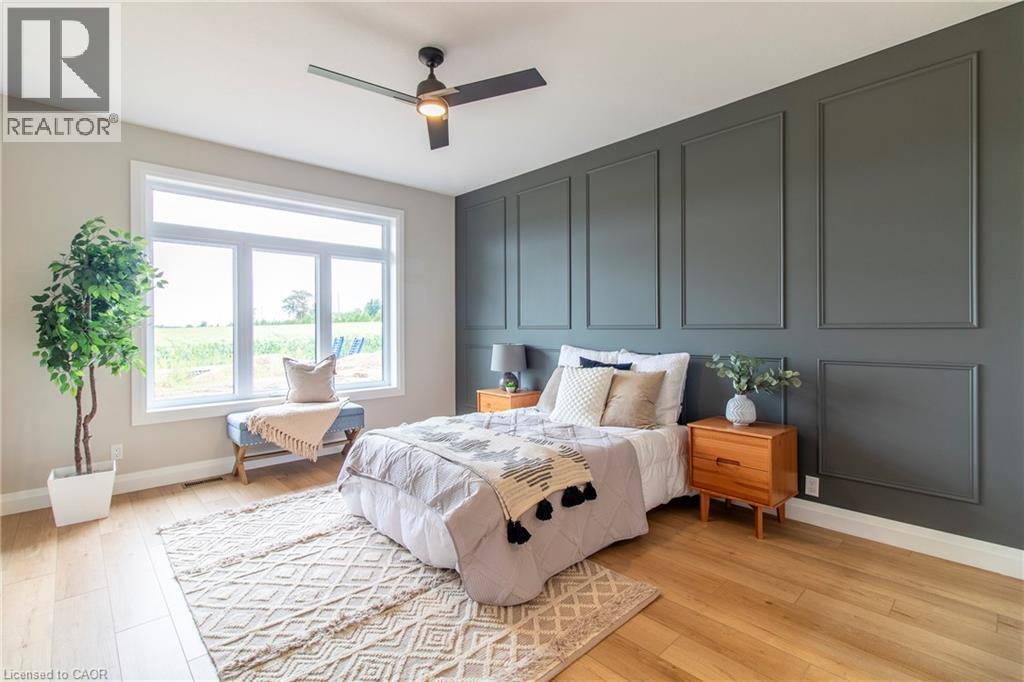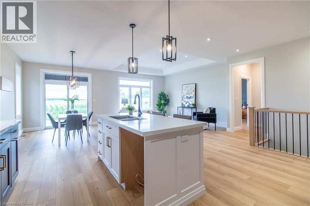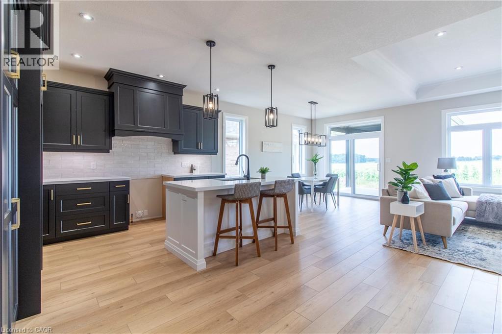 To Be Built — This 1,495 sq. ft. home offers 2 bedrooms and 2 bathrooms with a bright, open-concept kitchen, dining, and living area enhanced by 9-foot ceilings and high-end standard finishes. The layout is ideal for everyday living and entertaining, with the opportunity to customize select finishes to suit your style. The primary bedroom features a walk-in closet and a private ensuite with a tiled shower. Patio doors from the dining area lead to a covered composite deck, perfect for outdoor enjoyment. Additional highlights include main-floor laundry, a 2-car garage with automatic door openers and hot/cold water taps, and a fully sodded lawn. Photos are of a similar model; fireplace not included. Home to be constructed. Appliance packages available. An excellent opportunity to build in the growing Town of Delhi. (70030385)