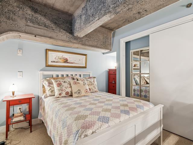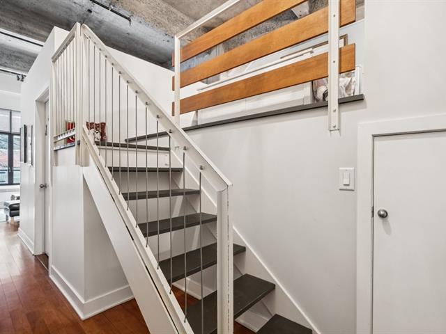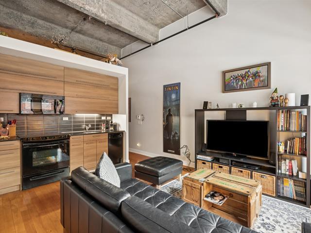 Loft à aire ouverte, plafonds de béton de 13pi, chambre à coucher surélever avec rangement sous la chambre. Électroménagers inclus. Finition haut de gamme, plancher de bois franc, comptoir de quartz, climatisation mural. Profitez d'une terrasse commune sur le toit avec piscine et chalet urbain. Salles de sports, gymnase avec terrain de basketball et pickleball. Situé à deux pas de stations de métro, du Canal Lachine et du marché Atwater. GARAGE et espace de rangement au sous-sol inclus. (57506518)