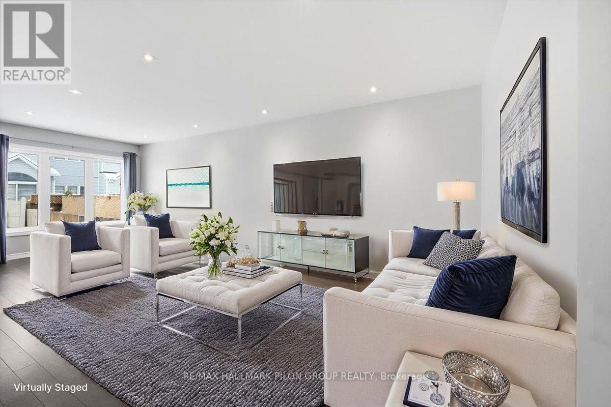 Welcome to 748 Morningstar Way, an elegant & impeccably maintained 3-bedroom townhome set on one of Trailsedge's most desirable & quiet streets. From the moment you arrive, the home impresses with a wide driveway accommodating 2 vehicles & a welcoming entry that sets the tone for the refined finishes found throughout. Step inside to a striking front foyer featuring designer chevron tile, access to the attached garage, & stylish powder room. Rich, dark hardwood flooring flows seamlessly across the entire main level, creating a sense of warmth & sophistication while anchoring the open concept living & dining spaces perfect for upscale entertaining & everyday comfort. The heart of the home is the bright, timeless white kitchen, offering generous cabinetry & counter space, an elegant backsplash, & a charming eating nook bathed in natural light. Patio doors lead to the fully fenced backyard, effortlessly blending indoor & outdoor living. A true showpiece of the home, the sweeping curved hardwood staircase makes a bold architectural statement as it leads to the second level. The primary bedroom is a serene retreat, featuring a spacious walk-in closet & a spa-inspired ensuite with a soaker tub, separate glass shower, & expansive vanity. Two additional well-appointed bedrooms & a beautifully finished family bathroom complete the upper level. The fully finished lower level extends the living space with a refined family room with cozy corner gas fireplace, along with a dedicated laundry area and an oversized storage room ideal for organized, clutter-free living. Situated in the heart of Trailsedge, this exceptional home offers a rare blend of tranquility and convenience. Known for its tree-lined streets, pride of ownership, & proximity to nature trails, parks, & top-rated schools, the neighbourhood also provides easy access to Orleans' shopping, dining, recreation facilities, and downtown commuting routes. Some photos virtually staged. (41913886)