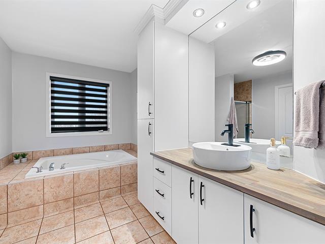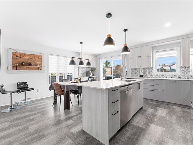 Superb 1,400 sq. ft. turnkey bungalow with 2+2 bedrooms and 2 full bathrooms! Tastefully decorated and freshly painted. Several very recent renovations, including the kitchen with a 7-foot island and quartz countertops! Very bright property with spacious rooms. Large master bedroom adjoining the bathroom. Smooth ceiling. Central air conditioning. Plenty of storage. Dream backyard with lots of stone (interlock), fenced, very private, and spa! Absolute relaxation! Located in a very new area and close to all services. It is sure to charm you! See addendum for all details. Be quick! (49341675)