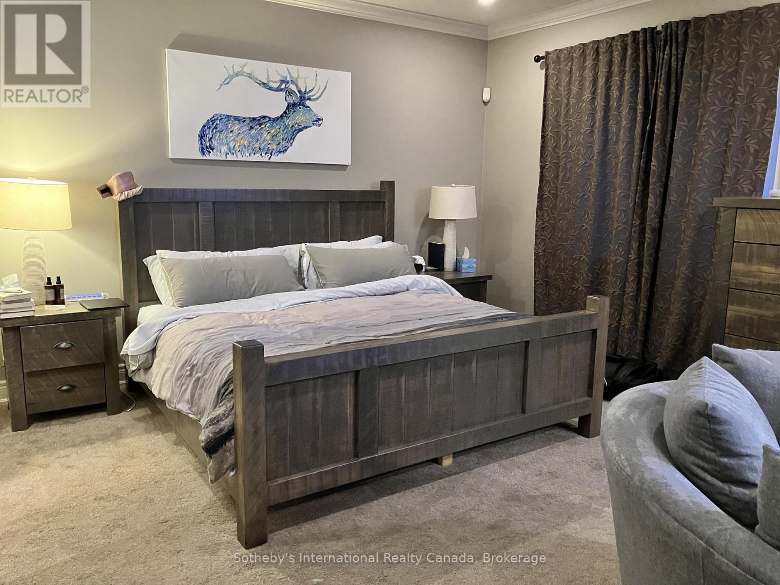 Relax in this spacious, executive chalet, with stunning Escarpment views and short drive to area ski hills. Chalet boasts soaring cathederal ceilings and warm wood finishes in the Great room, with large stone, gas fireplace to cosy up to after a day on the slopes. Breakfast area with views, and kitchen with stone counters, gas stove and spacious island make this a comfortable and convenient space for entertaining. Formal dining room also on this level, along with powder room and large mud/laundry room with access to garage. Grande Primary bedroom suite on main level with large walk-in closet, King size bed; seating area with large screen TV and 4 pc. ensuite. Office also on this level. Upstairs you will find 3 generous bedrooms; queen bed and ensuite; twin bedroom; queen bedroom and additional family bathroom. The basement is finished with TV and relaxing area, with large sectional. And, additional 3 pc. shower room and double Murphy bed for those additional guests!! 50% deposit on full rental amount upon signing Lease Agreement, balance plus utility/damage deposit of 4000 (depending upon length of rental) paid 3 weeks prior to occupancy along with proof of liability insurance. If occupancy is less than 3 weeks from signing, full payment of rent, plus utility/damage deposit are due upon a fully signed lease agreement. Well behaved dog is acceptable. (41914734)